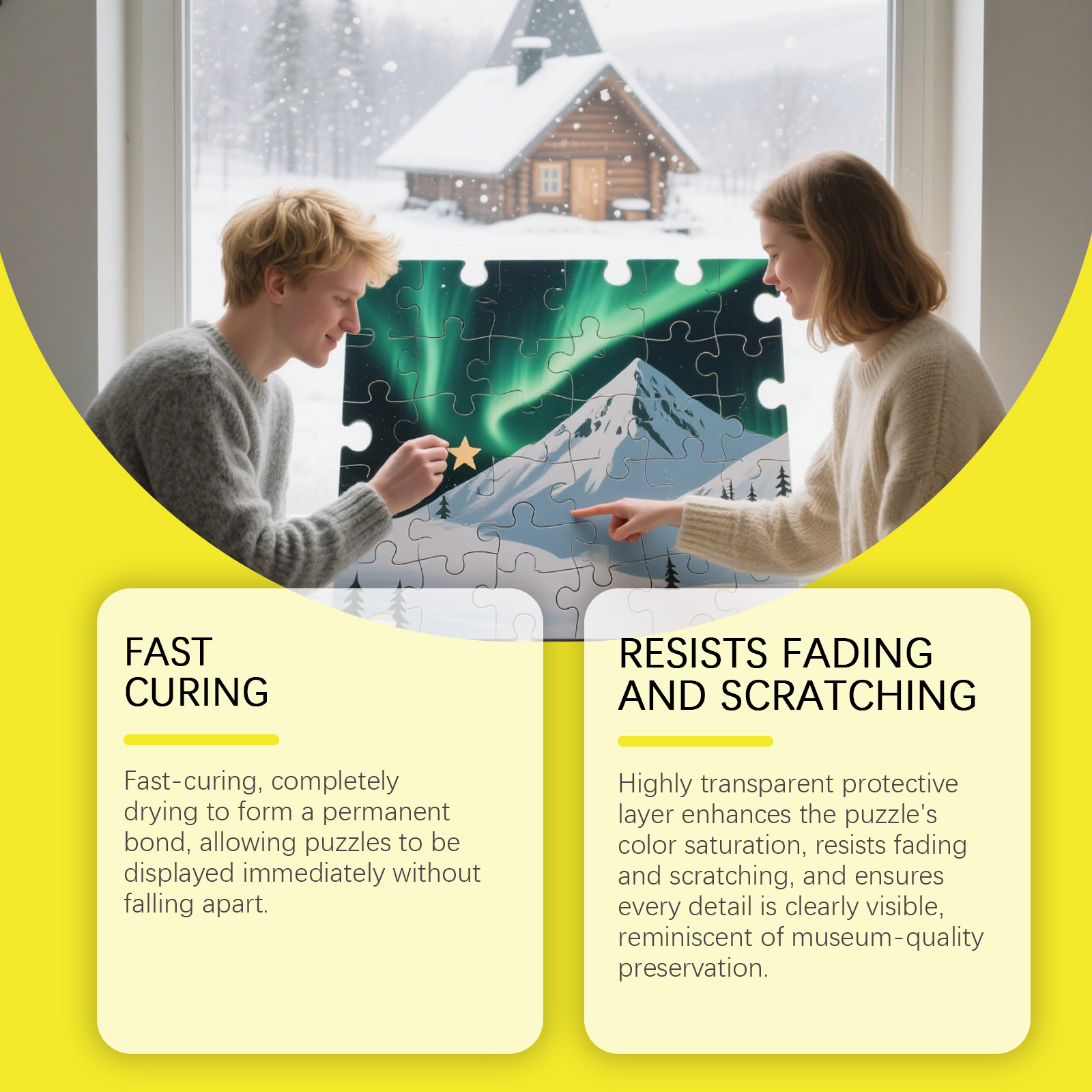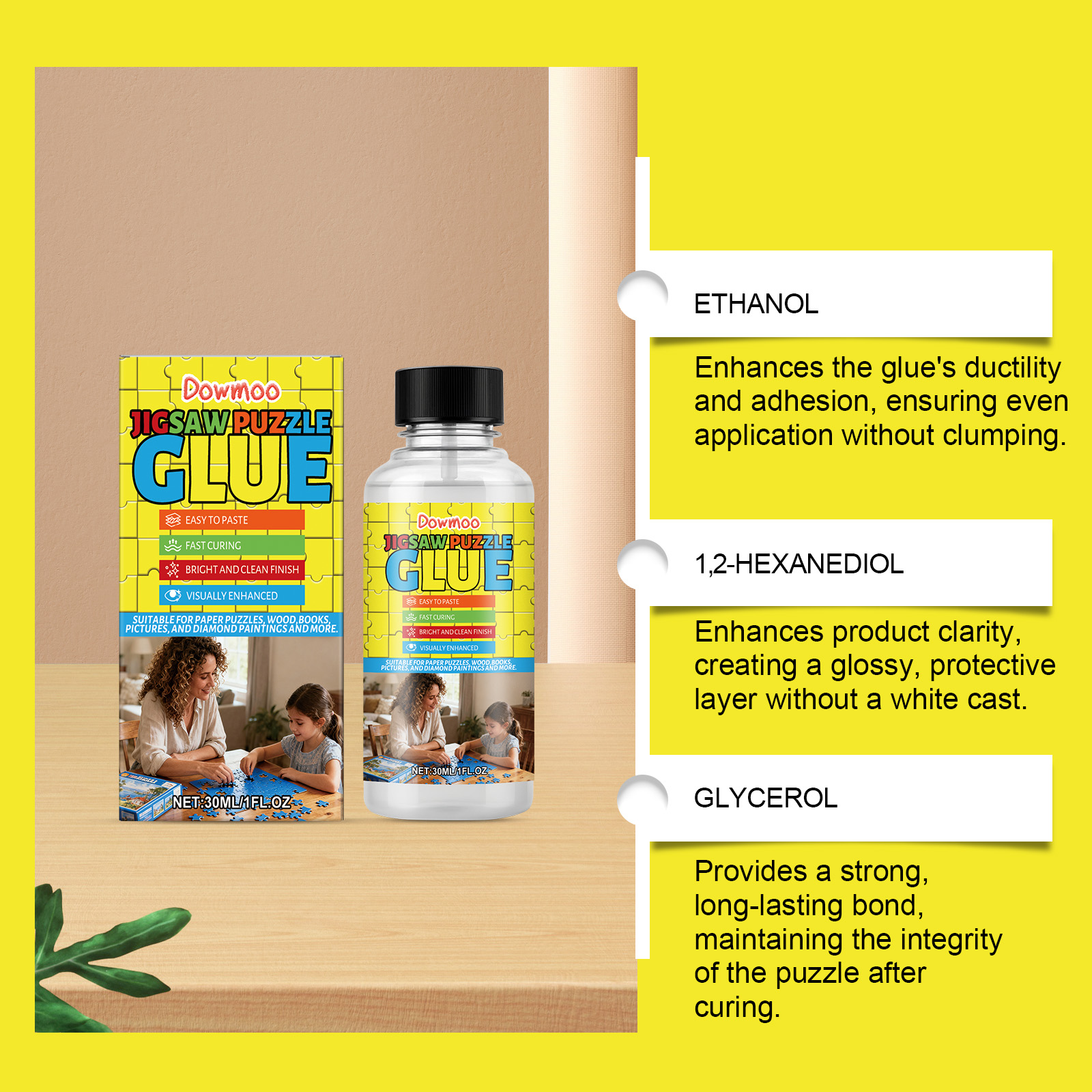 我们的拼图胶水套装,由氢化蓖麻油、水溶性聚乙烯乙二醇蜡精心调配而成。专为增强胶水的延展性和粘附力,确保均匀涂抹而不结块设计。使用方法极为便捷:将拼图正面朝上放置下方垫纸,以防止胶水从缝隙渗入桌面。戴上手套,用刷子将适量本产品均匀涂抹在拼图上。均匀涂抹胶水,避免任何堆积。确保胶水均匀填入缝隙中。让胶水固化成片状,薄涂约15-20分钟,较厚的涂抹时间会更长。你的拼图即完成。并且它抗褪色且防刮擦,确保清晰锐利的细节。