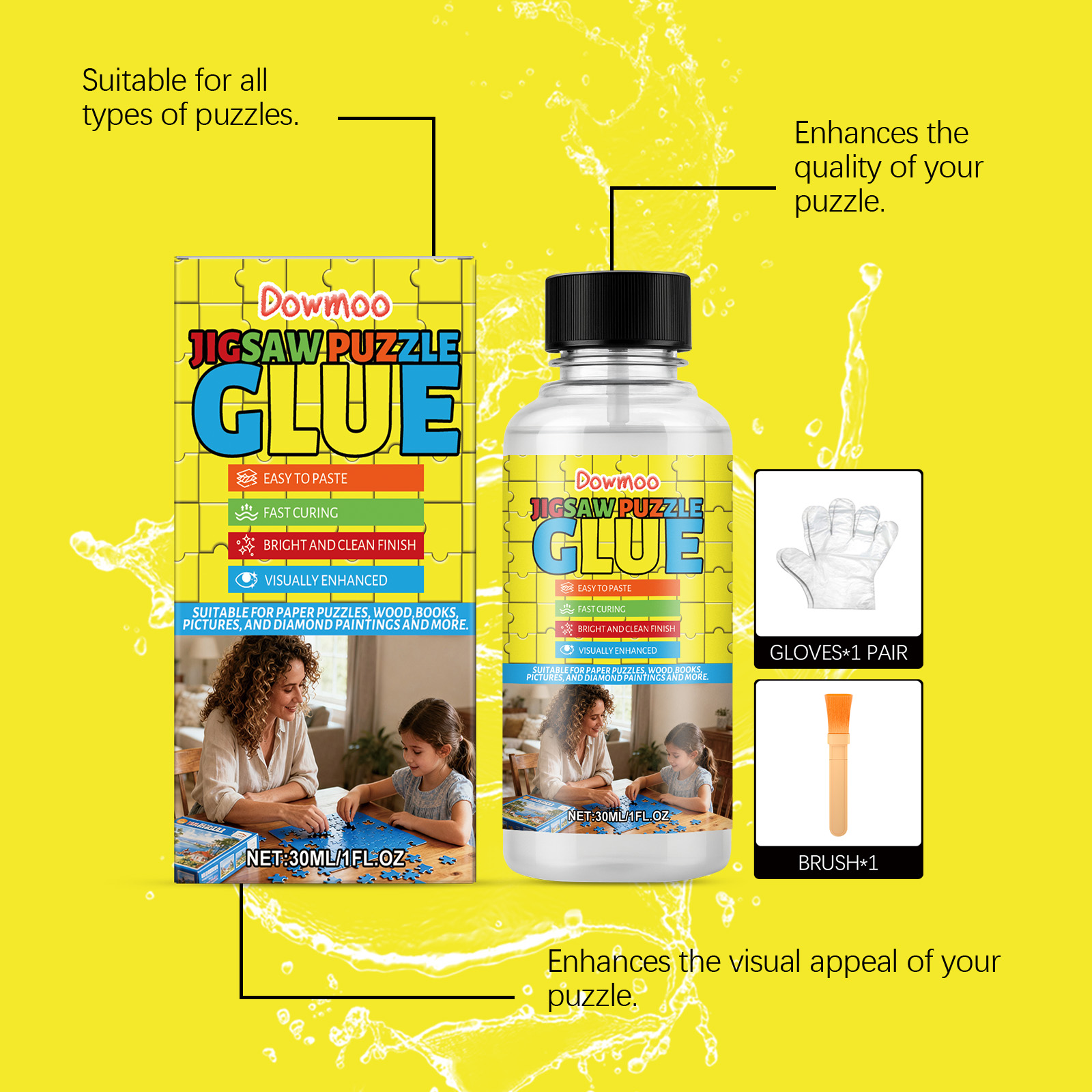 Dowmoo Jigsaw Puzzle Glue Set, Diy Jigsaw Puzzle Transparent Bonding, Convenient Glue For Office And Home Daily Use