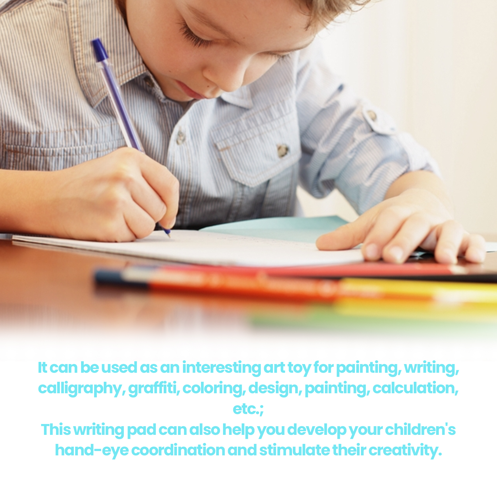 我们的创意绘图液晶魔法手写板含有液晶,ABS,按钮电池。它可以作为一个有趣的艺术玩具,用于绘画、书写书法、涂鸦、着色设计、绘画、计算、还可以帮助您培养孩子的手眼协调能力,激发他们的创造力。它的使用方法很简单:只需要使用附带的钢笔在黑板上直接画就可以了。可以激发孩子的创造力,培养孩子的手眼协调能力。