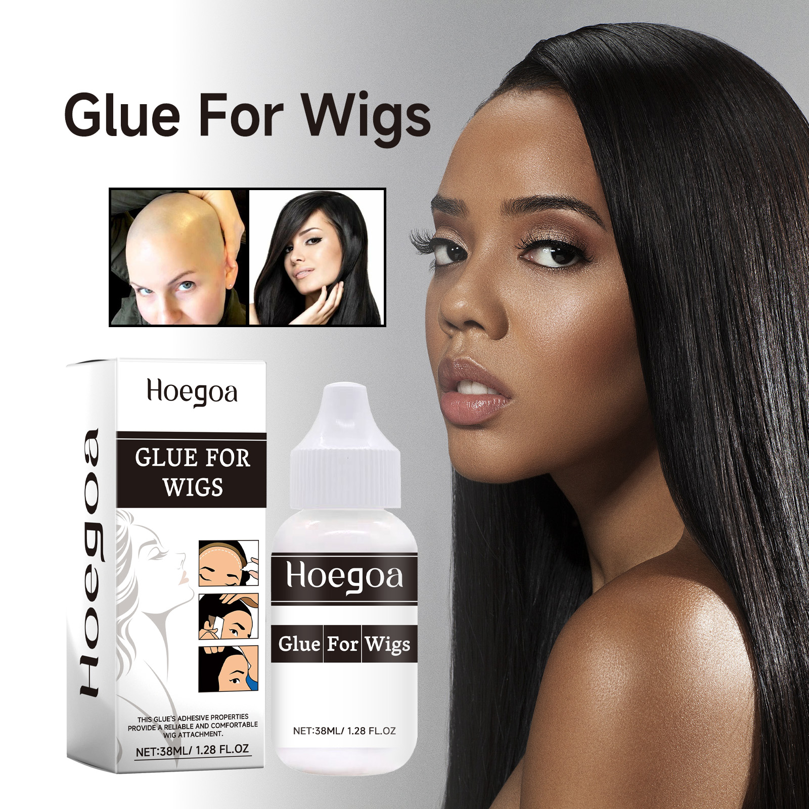 Hoegoa Glue For Wigs, Scalp Hairline Lace Headpiece Gentle Invisible Easy To Dry Wig Adhesive Glue
