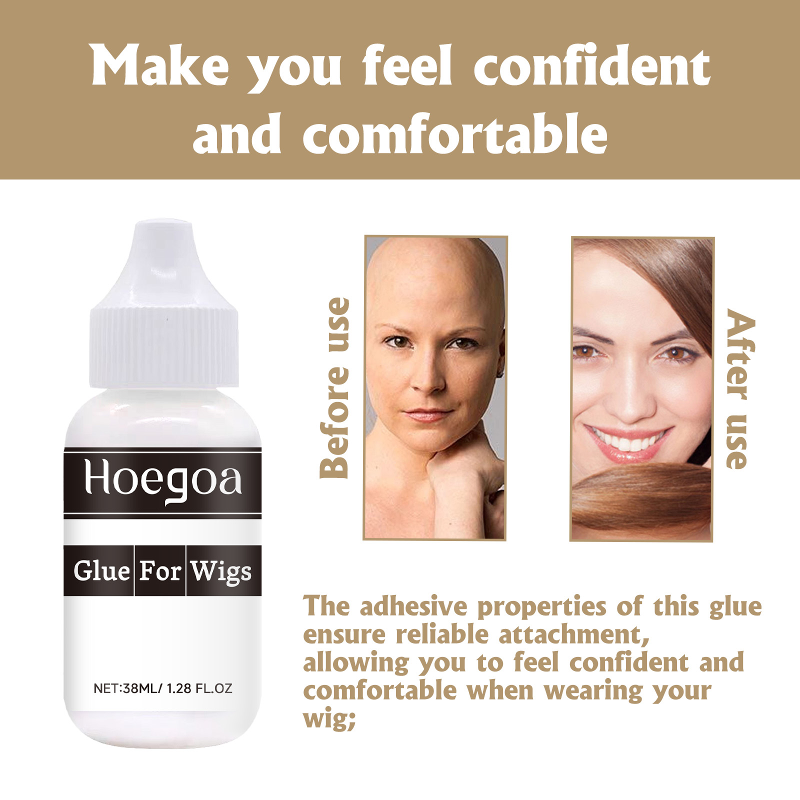 我们的假发环保胶含有溶剂,聚乙烯醇,增稠剂。它可以牢固、自然的戴紧假发,让您长时间保持完美发型。它的使用方法很简单:使用前将头发洗净晾干,在假发上涂上胶水,然后把假发贴在头皮上,调整位置,然后稳定地按压10秒钟即可。可以保可靠的附着,让您在佩戴假发时感到自信和舒适。