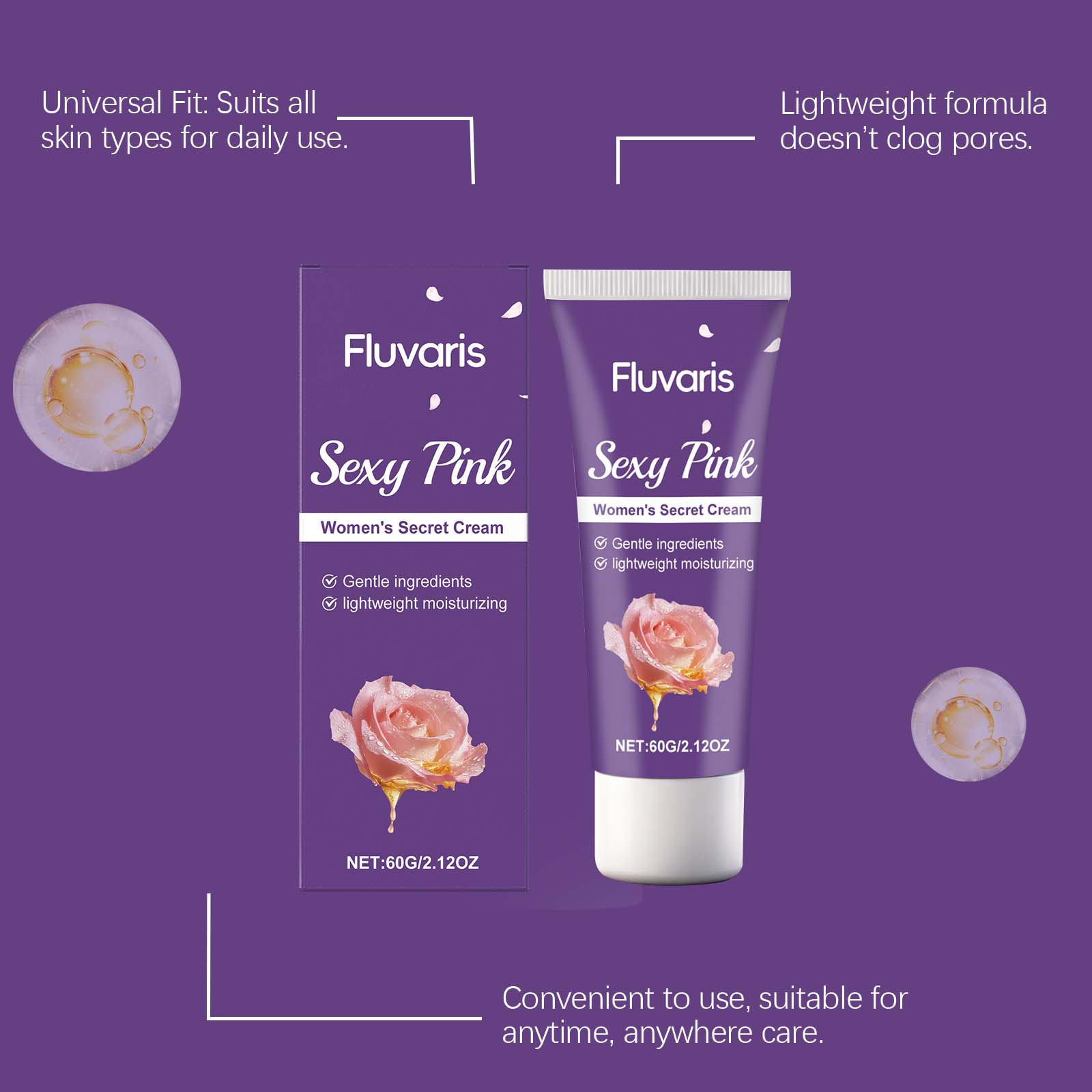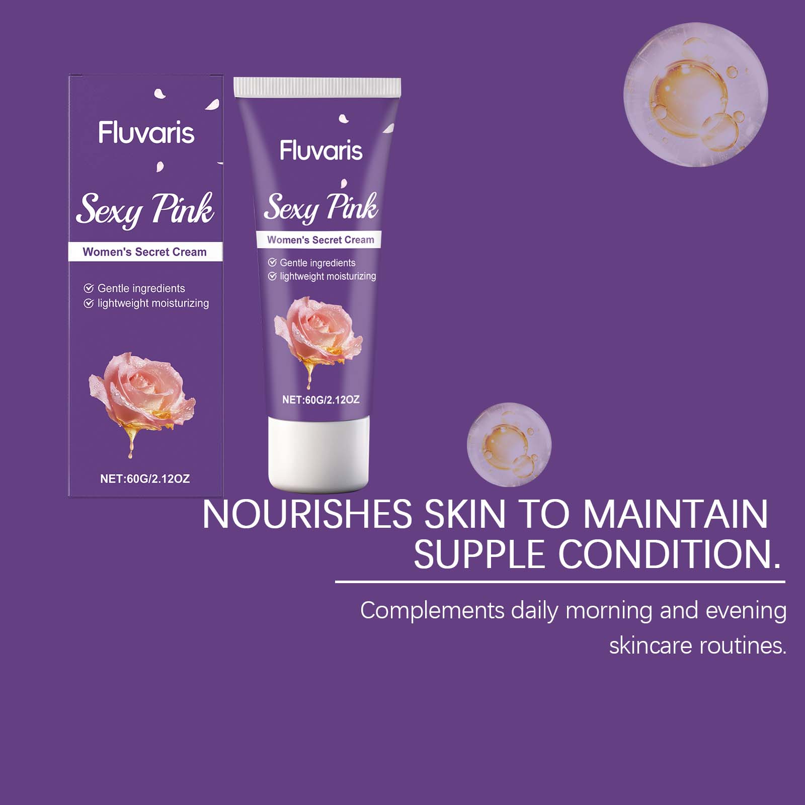 我们的女士保湿护理霜,由抗坏血酸(维生素C)、玫瑰花提取物精心调配而成。专为温和持久地滋润肌肤设计。使用方法极为便捷:1.清洁并擦干您的私密部位。2.将适量本产品均匀涂抹于私密部位,并使其吸收。并且使用时感觉细腻且亲肤。