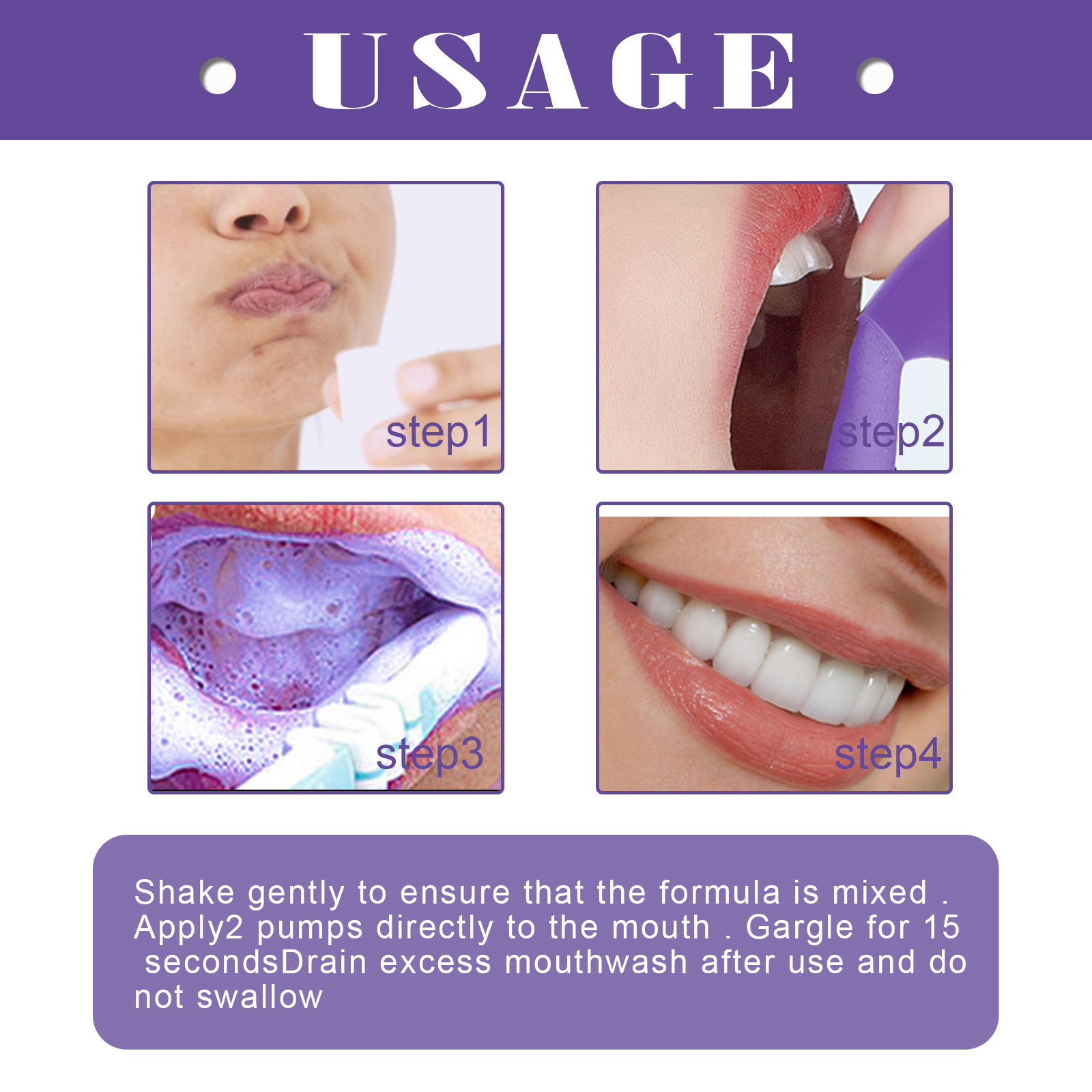 我们的慕斯牙膏含有木糖醇、甘油。它可以保护牙龈,防止蛀牙,抑制有害细菌。它的使用方法很简单:轻轻摇一摇,确保配方完全混合。将2泵直接应用于口腔。漱口15秒,用完后将多余的漱口水倒掉,不要吞咽。去除斑块、污渍,更好地保护、美白牙齿。