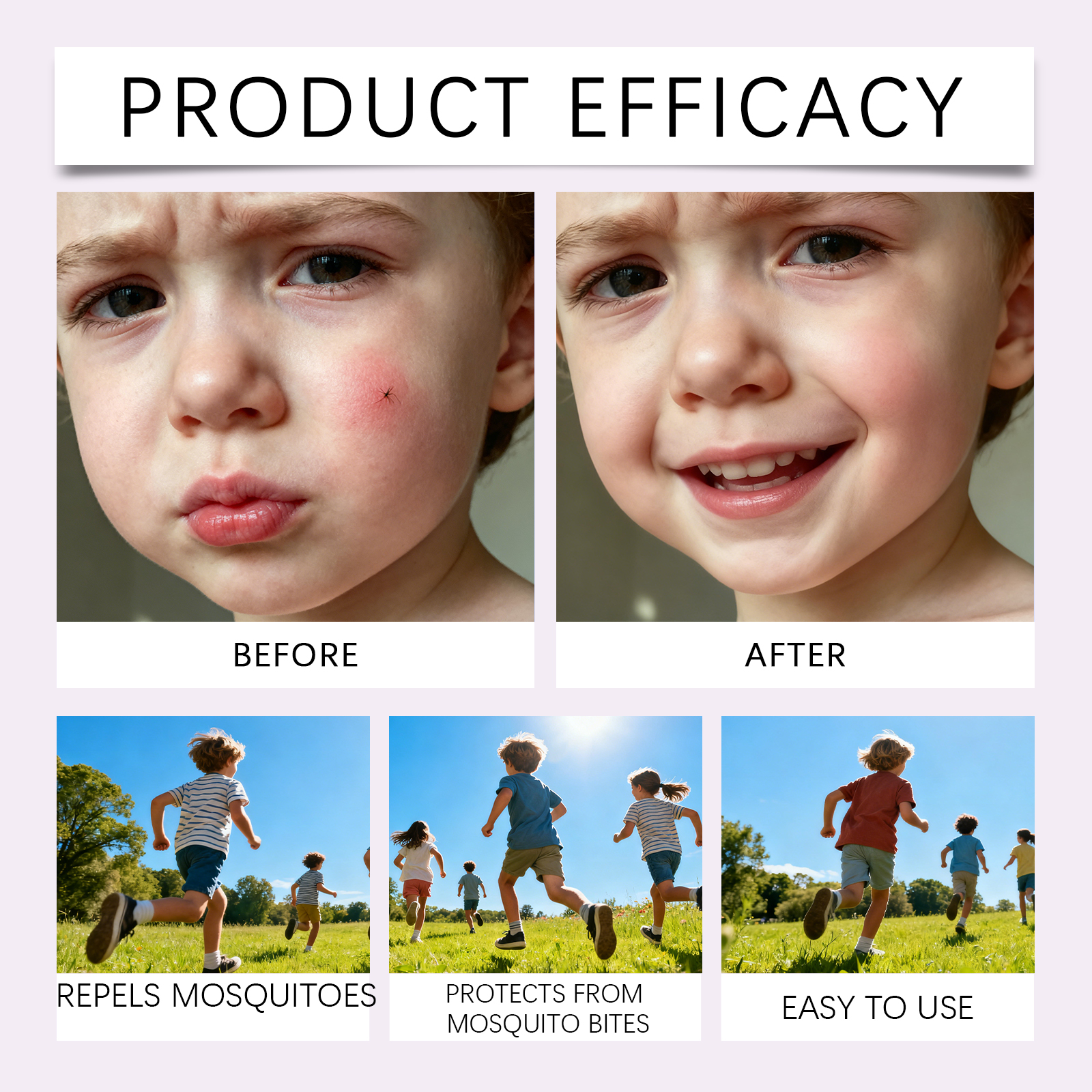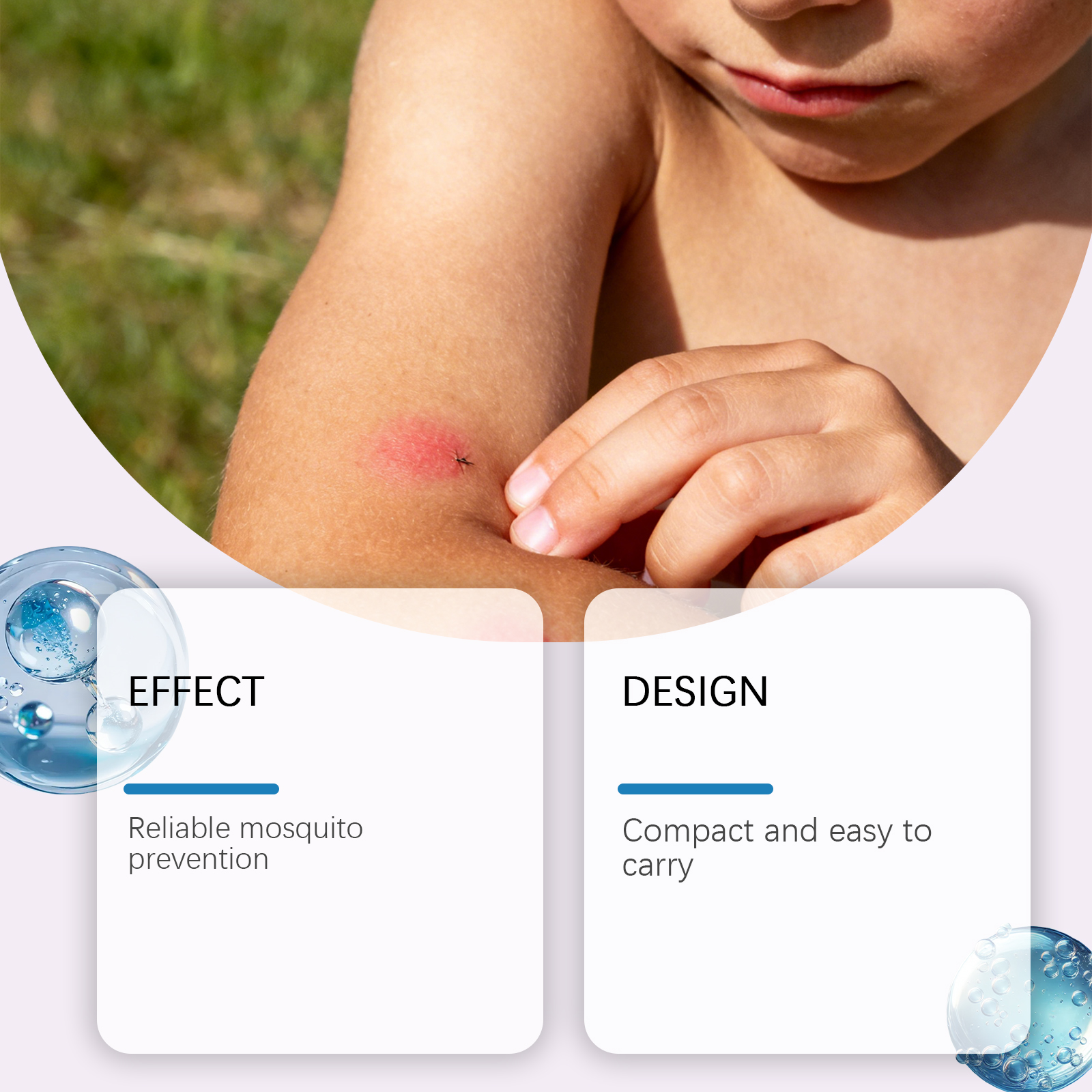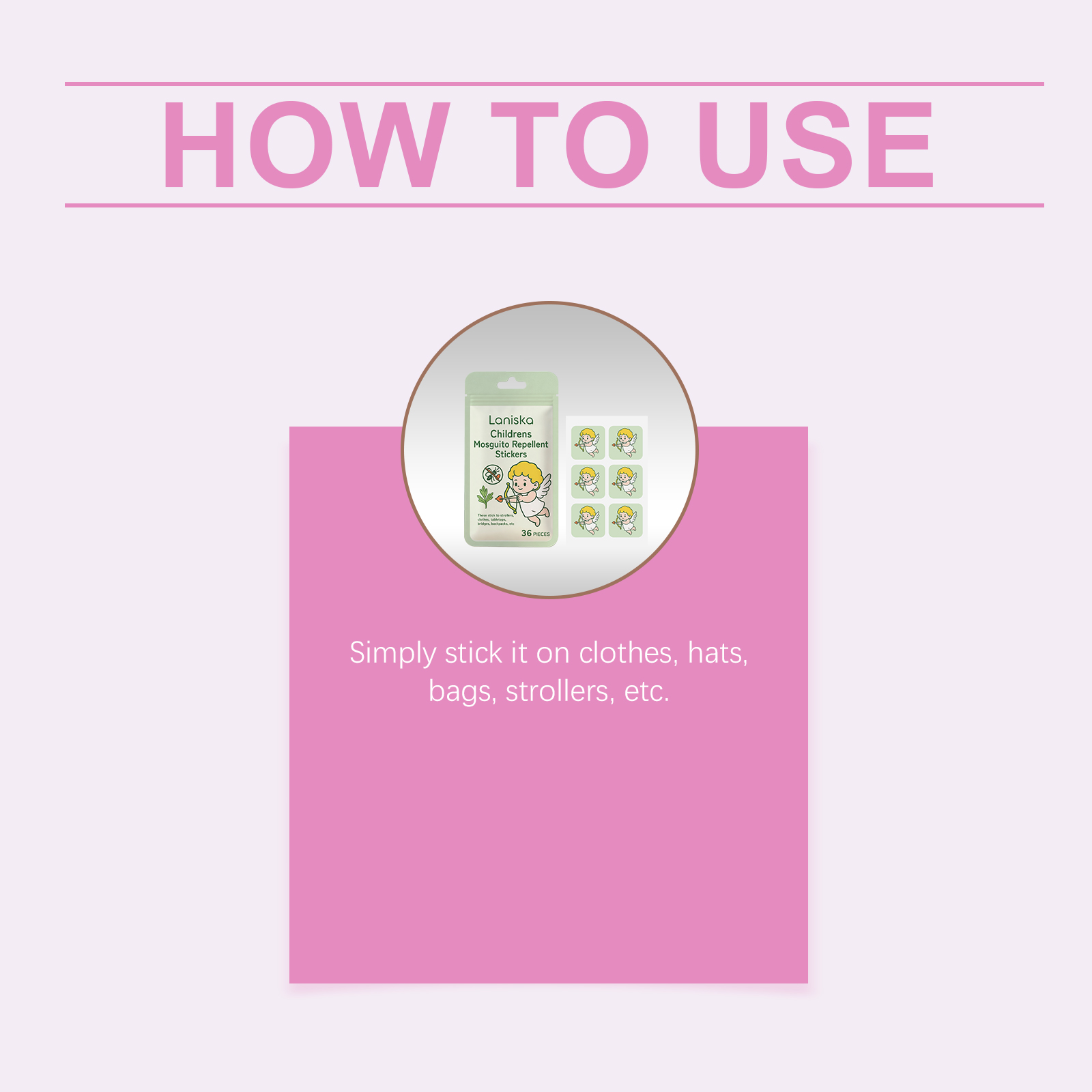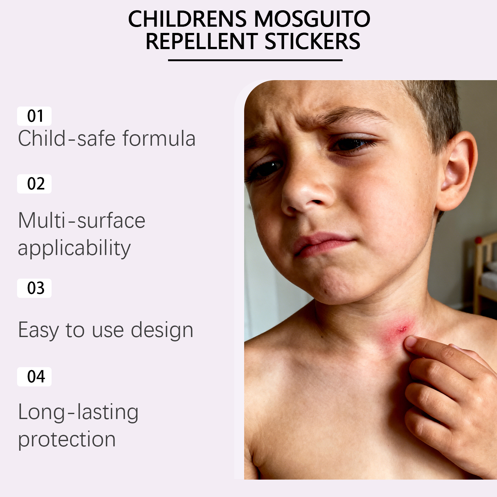 我们的儿童防蚊贴,由生育酚(维生素E)、薄荷醇精心调配而成。专为保湿并滋养皮肤,产生清新的驱蚊效果设计。使用方法极为便捷:只需粘贴在衣服、帽子、包、婴儿车等即可。并且它可以粘贴在婴儿车和书桌上,温和成分,对儿童皮肤无害。