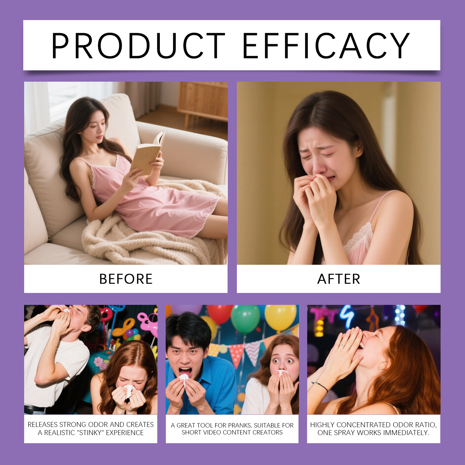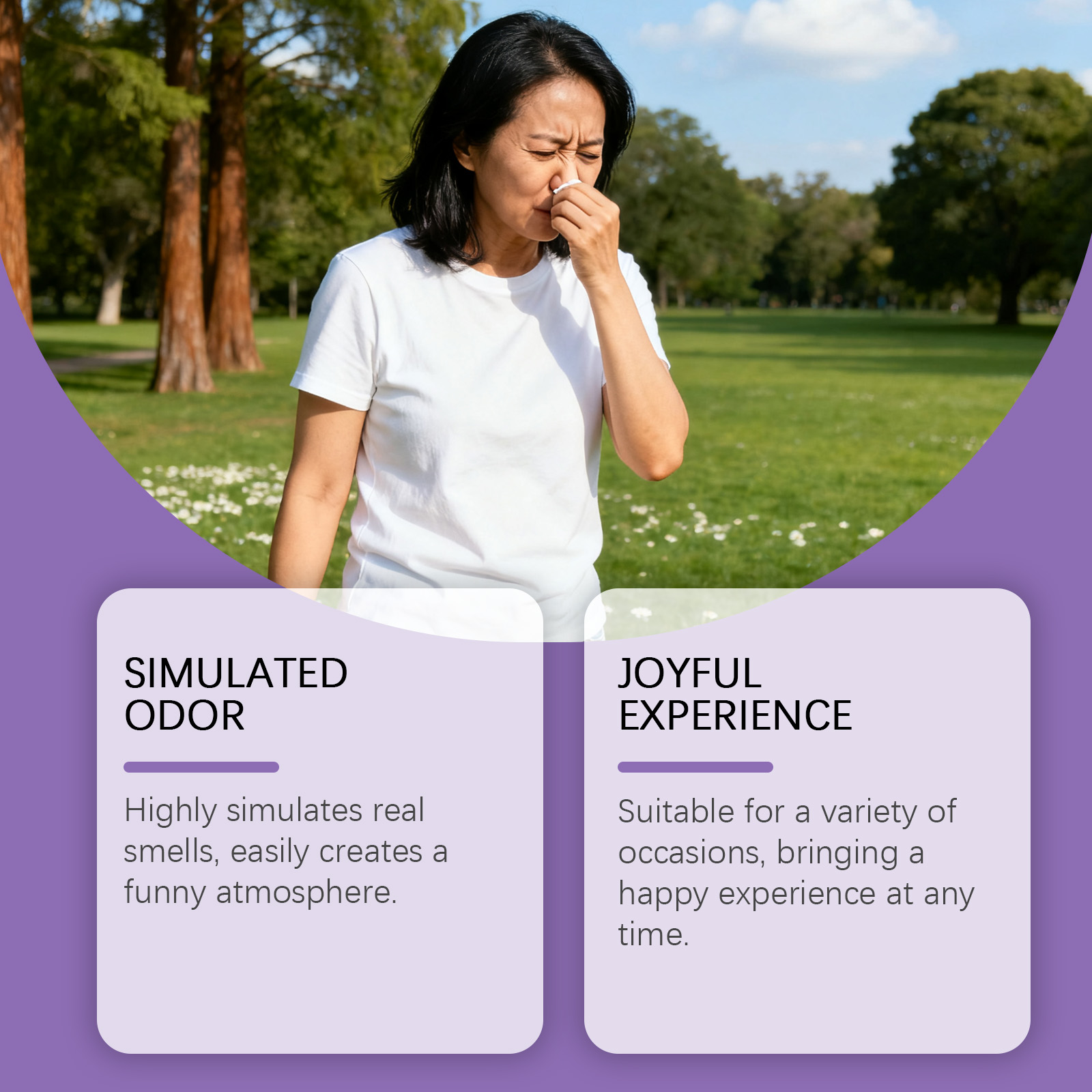 我们的臭屁喷雾,由 1,2-己二醇、甲硫醇精心调配而成。专为高度模拟真实气味,轻松营造有趣氛围设计。使用方法极为便捷:使用前,请充分摇匀喷雾,以确保香味均匀释放。打开盖子轻轻按压泵头2-3次。在你想恶作剧的地方喷洒,以制造喜剧效果。使用后,建议打开窗以保持空气流通并尽快消除异味。并且适用于多种场合,随时随地带来愉快体验。