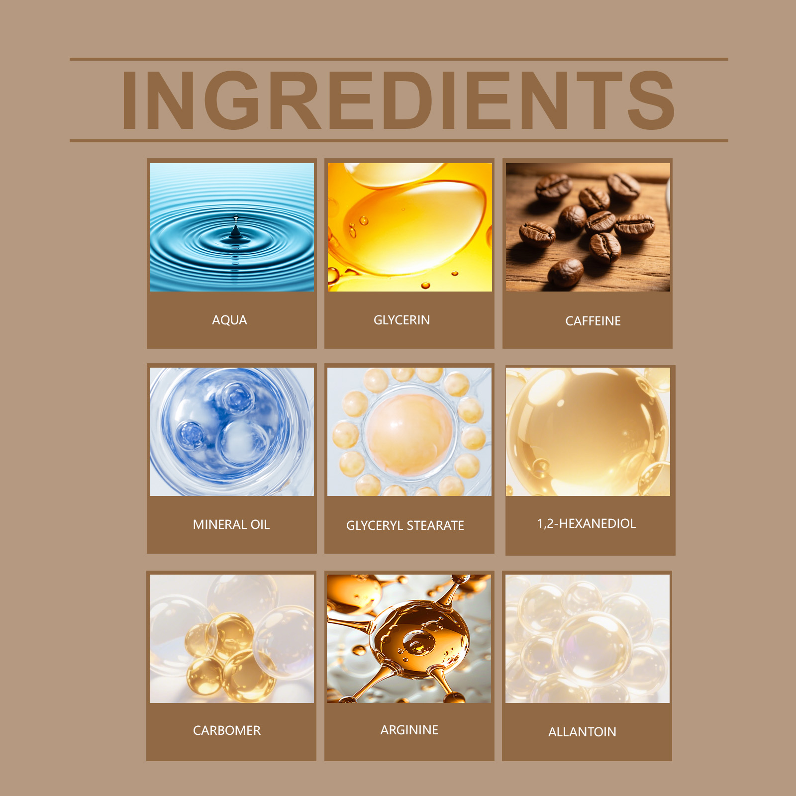 我们的眼部精华乳液,由精氨酸、尿囊素精心调配而成。专为眼周肌肤感觉舒适放松设计。使用方法极为便捷:清洁并擦干面部。将产品轻轻滚动涂抹在脸部和眼部周围的皮肤上,轻柔按摩直至吸收。并且专为眼周肌肤设计,提供深层护理并提升光泽。