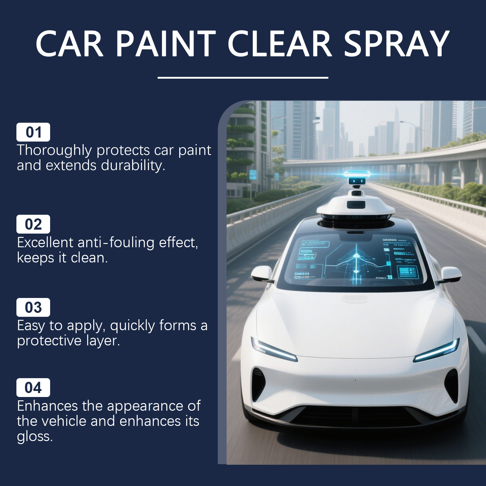 我们的汽车清漆喷雾,由改性氨基硅油高分子、乙烯共聚物精心调配而成。专为即时提升光泽度,呈现镜面般的质感,防水、防污和抗刮擦,具有持久光泽设计。使用方法极为便捷:使用前,请彻底清除待涂区域上的油渍、水迹和灰尘。摇动罐体以确保涂料分布均匀。将罐体与表面保持约15 至 30 厘米的距离,并用食指按压喷嘴,以平稳的节奏来回喷涂。喷用时,请确保气雾罐保持直立状态,且与水平面的角度至少为 45 度。在通风良好的区域进行喷施。若液滴溅入眼中,应立即用水冲洗并寻求医疗帮助。若不慎误服,应立即催吐并寻求医疗帮助。切勿靠近热源和明火。请勿将产品置于车内或在阳光直射下。请勿刺空空锐。并且它可以形成氧化保护屏障以延缓老化,疏水表面减少污渍附着,易于清洁。