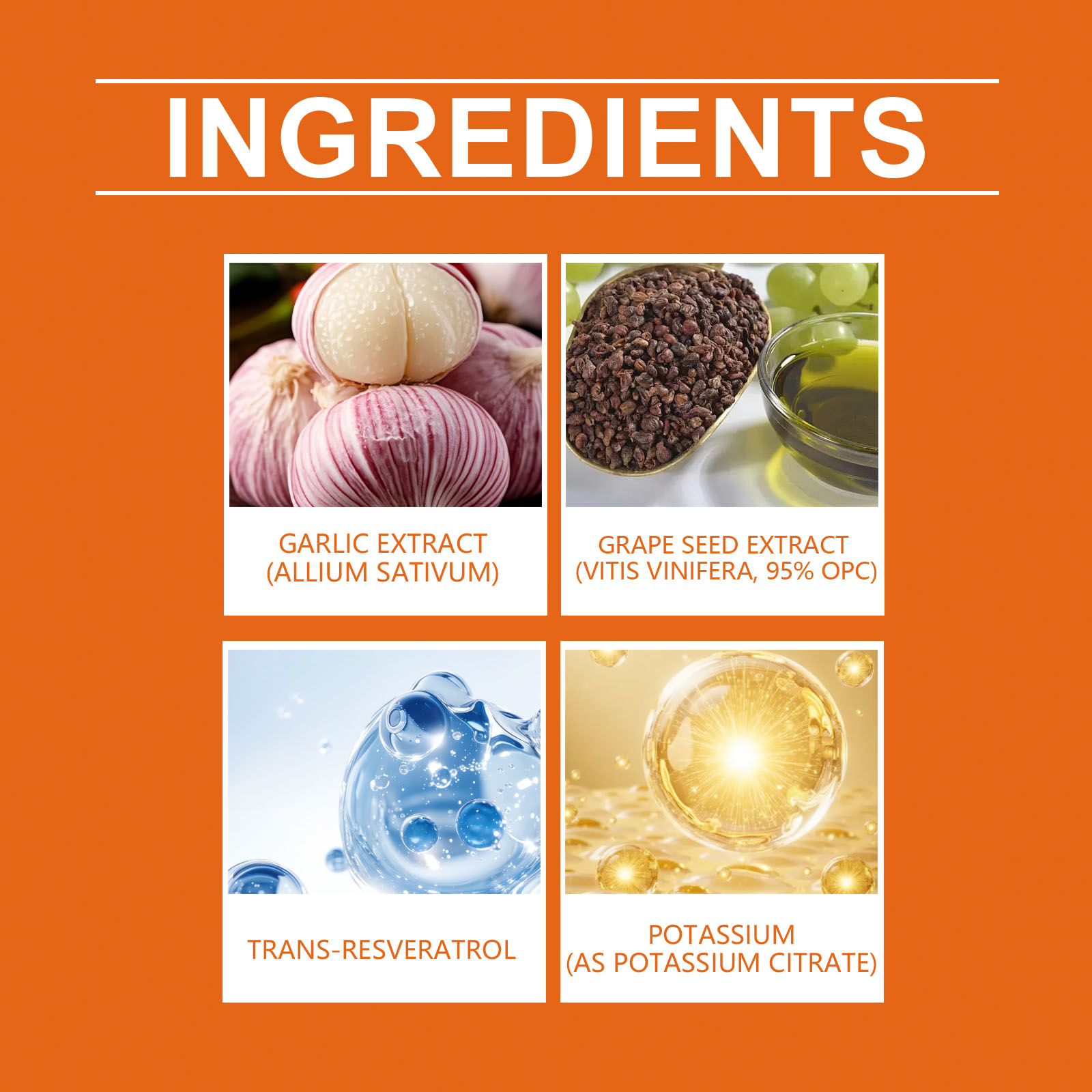 | 成分 | 大蒜提取物、葡萄籽提取物 |