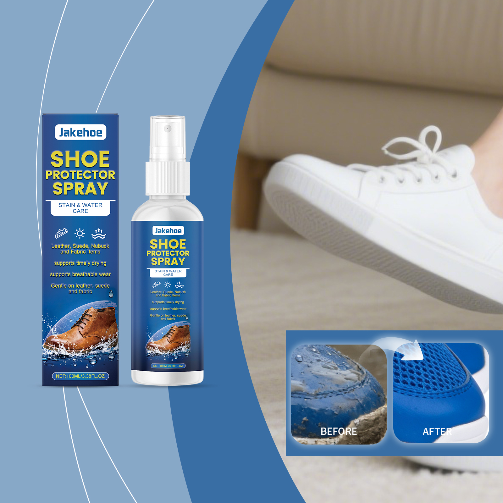 Jakehoe Shoe Care Spray Daily Gentle, Soft Shoe Material, Clean And Shine Care Spray