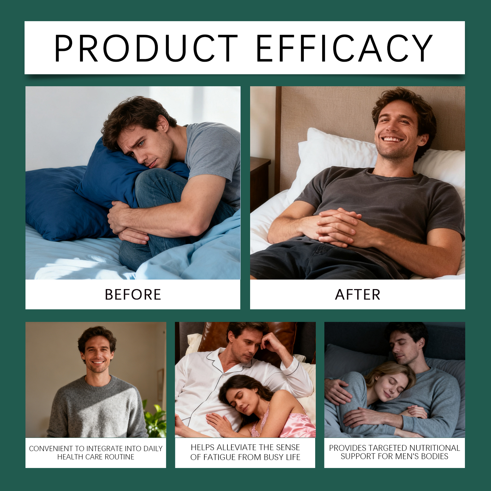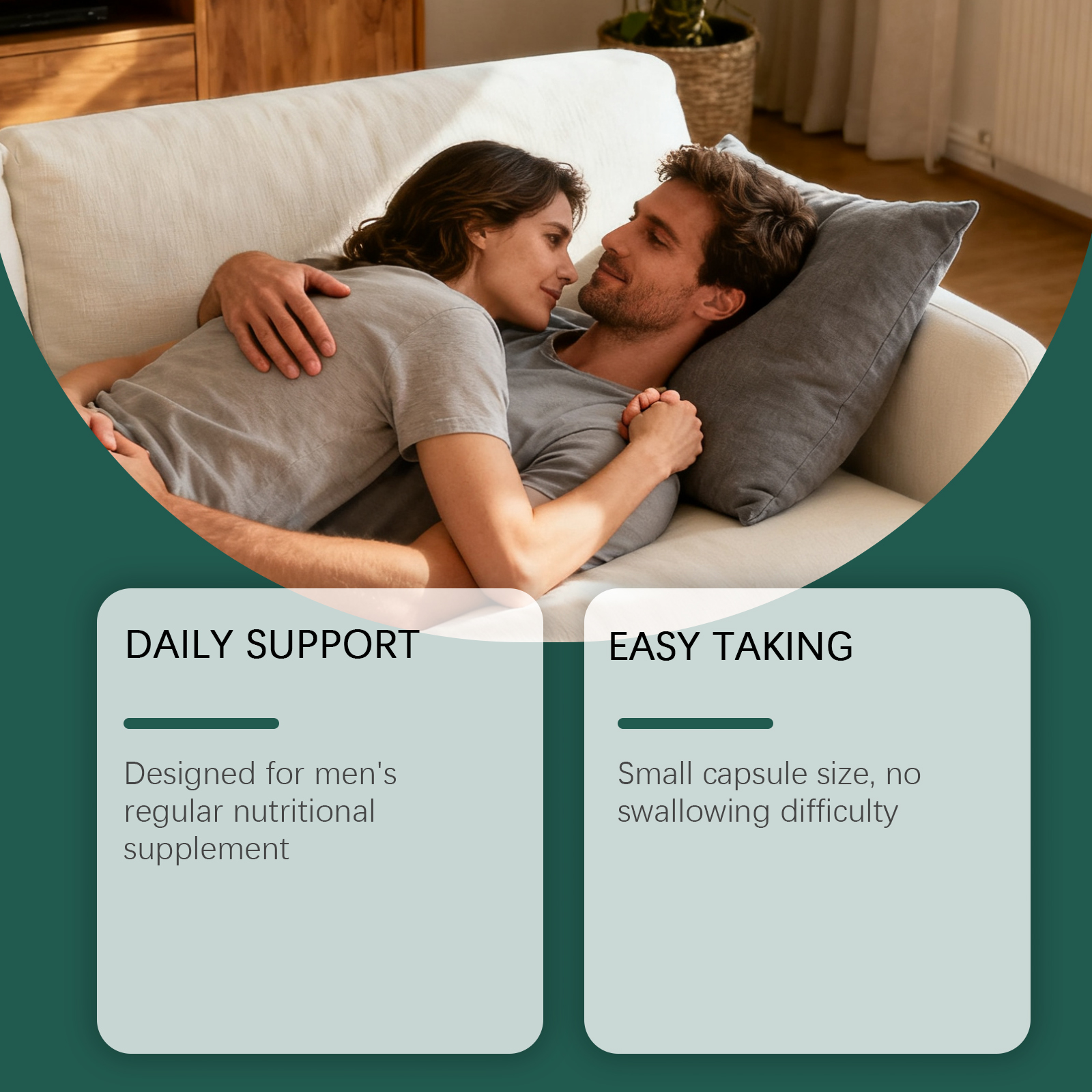 我们的男性活力支持胶囊,由锌、玛咖根提取物精心调配而成。专为男性日常营养补充设计,小胶囊尺寸,无吞咽困难。使用方法极为便捷:每天服用2粒胶囊,每天一次。并且它可以持续提供营养益处。