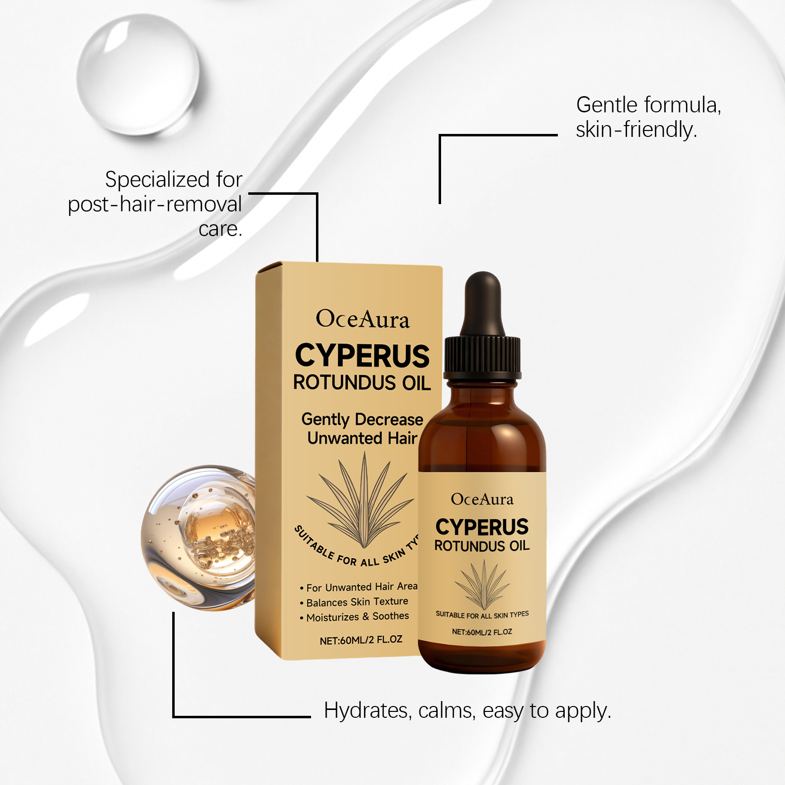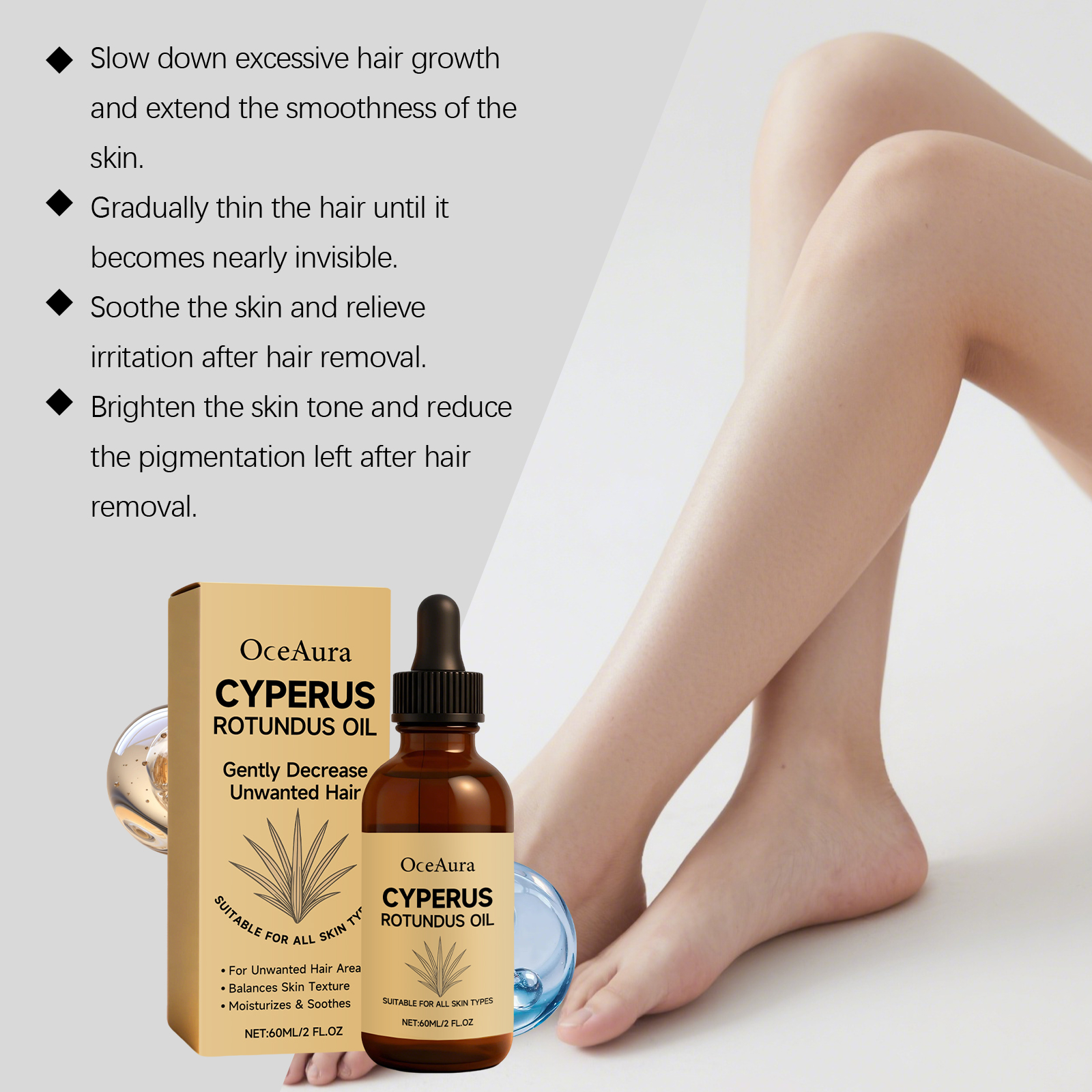 OceAura Hair Removal Care Essential Oil Gently Moisturizes And Makes The Skin Feel Refreshed And Hydrated After Hair Removal