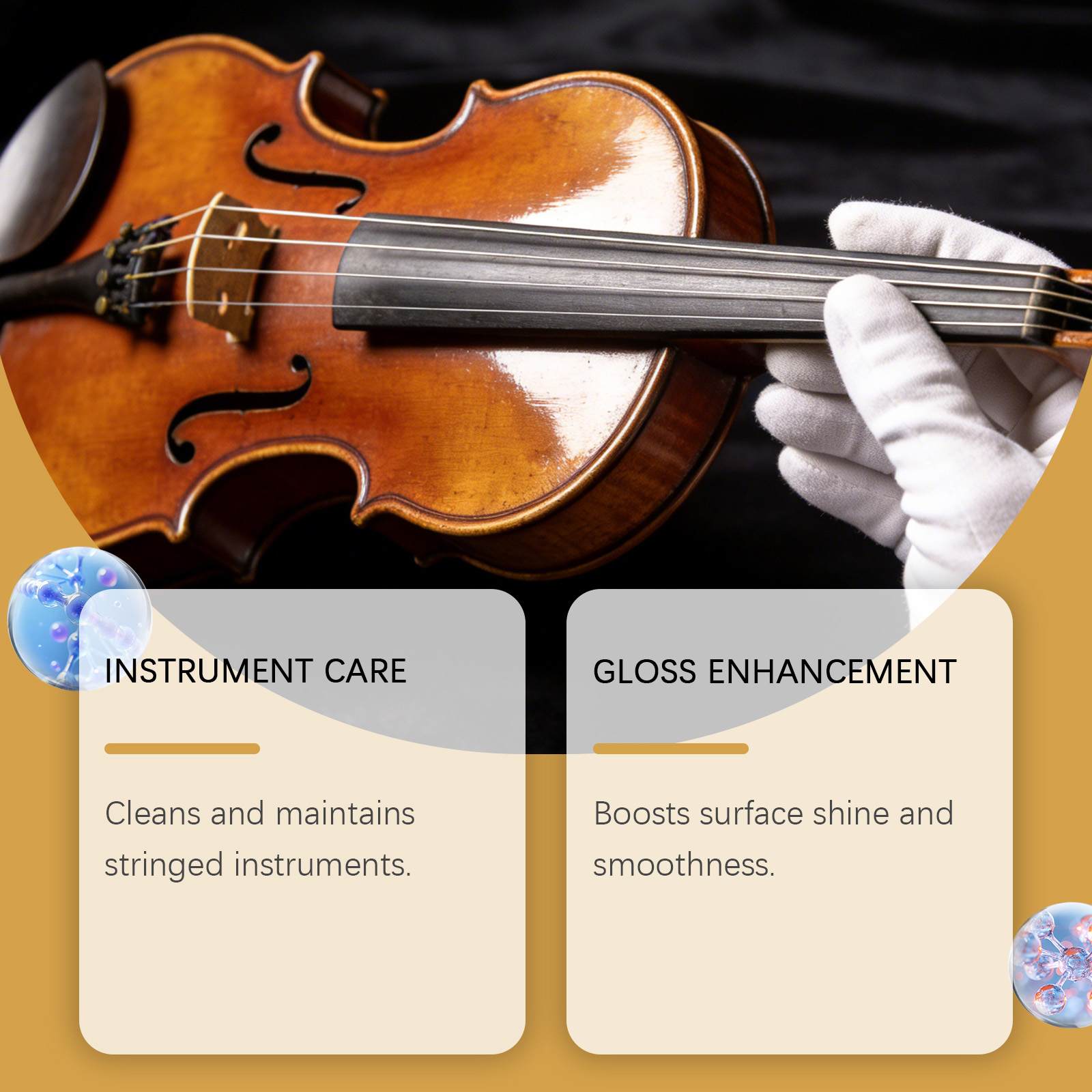 我们的弦乐器护理油,由聚乙烯蜡乳液、1,2-己二醇精心调配而成。专为清洁并维护弦乐器设计。使用方法极为便捷:1.将少量乐器抛光油涂抹在软布上,轻轻擦拭乐器本体。2.沿着木纹擦拭,避免接触琴弦和琴桥。3.擦去多余的油,并在通风良好的地方自然风干。并且可以提升表面光泽与光滑度。