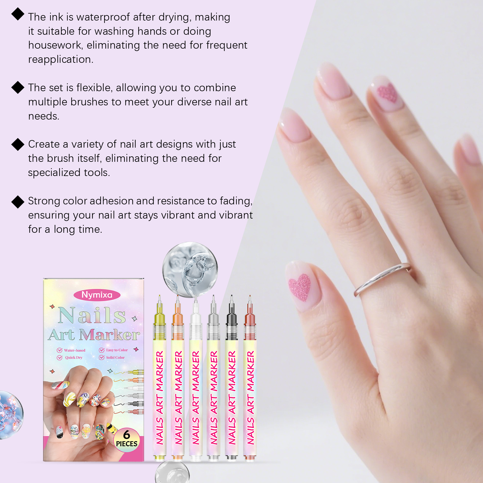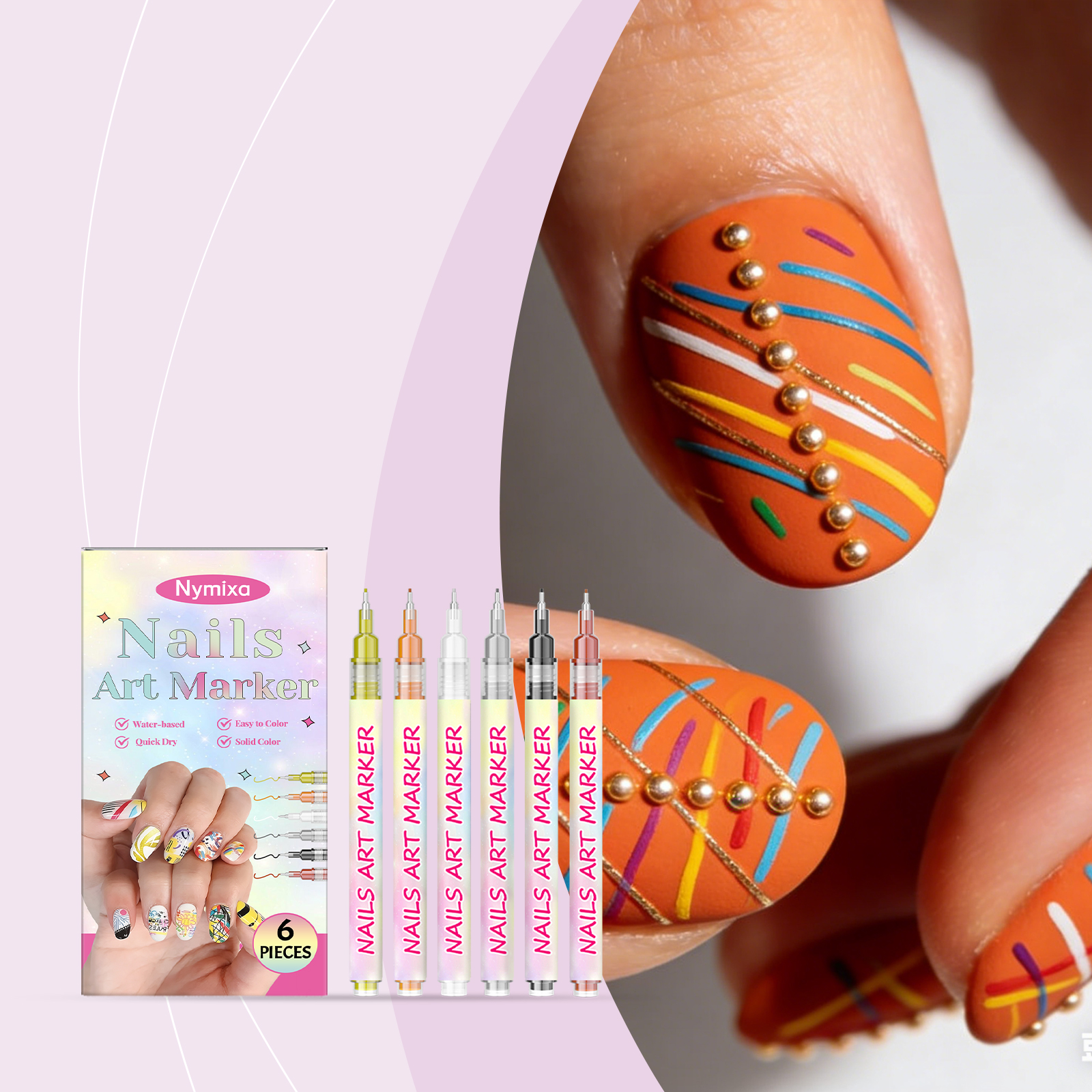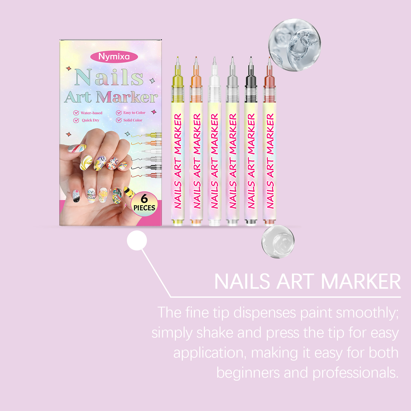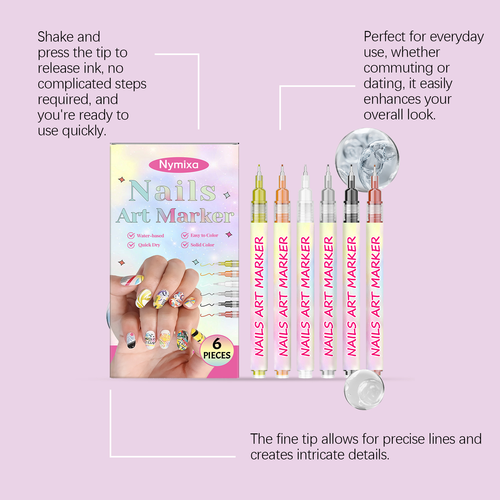 Nymixa Nail Art Graffiti Pen Diy Painting Fine Tip Graffiti Easy To Operate, No Smudging, Long-Lasting, Bright Colors