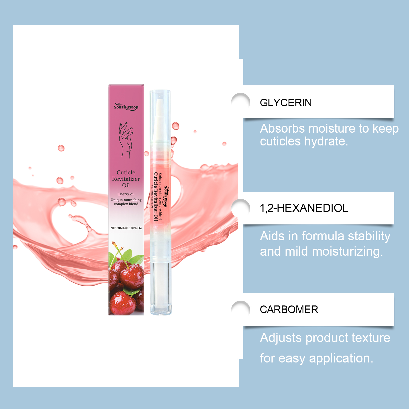 South Moon Cherry Nail Care Oil Pen Moisturizes Hand And Foot Nails, Making The Nail Surface Shiny, Smooth And Gentle Care