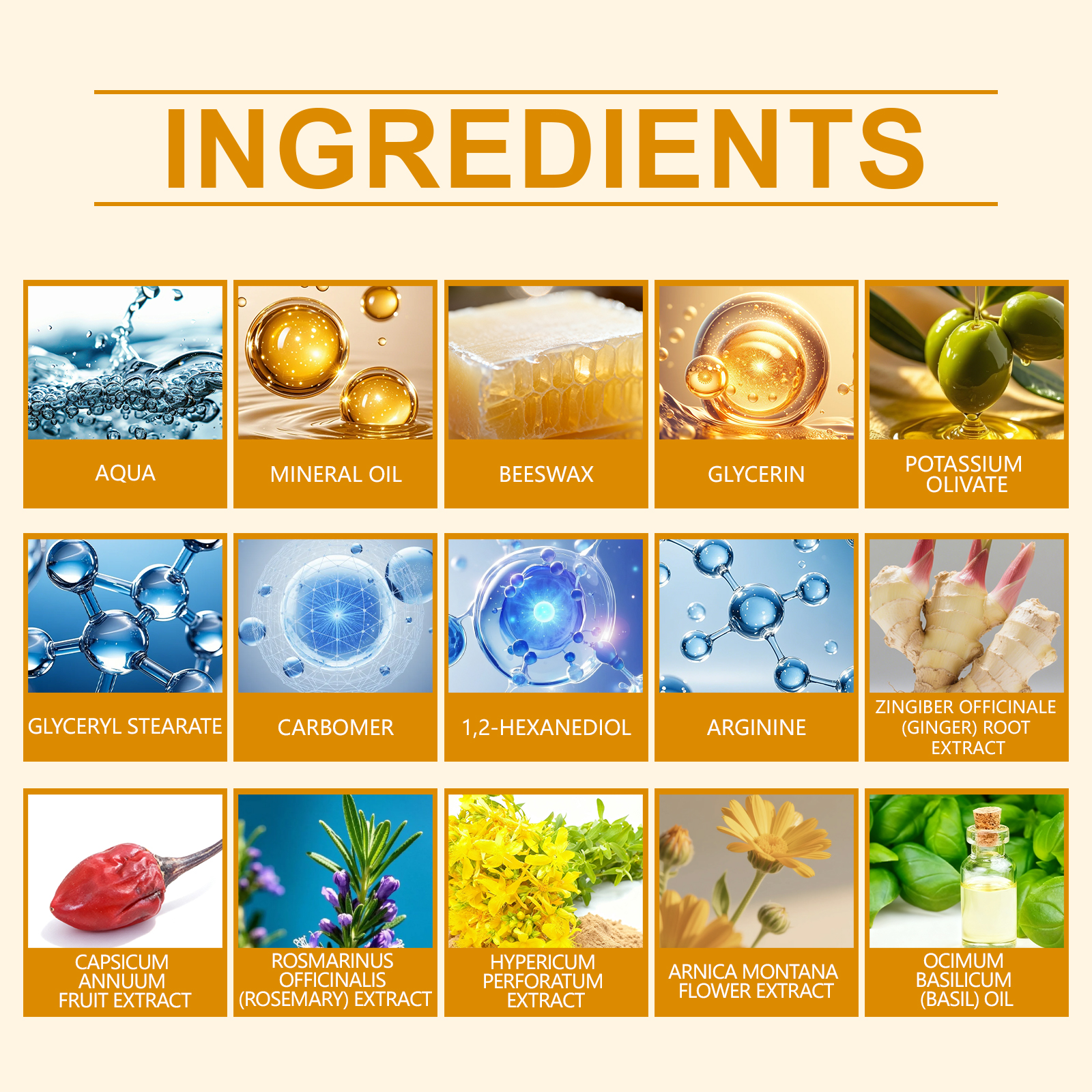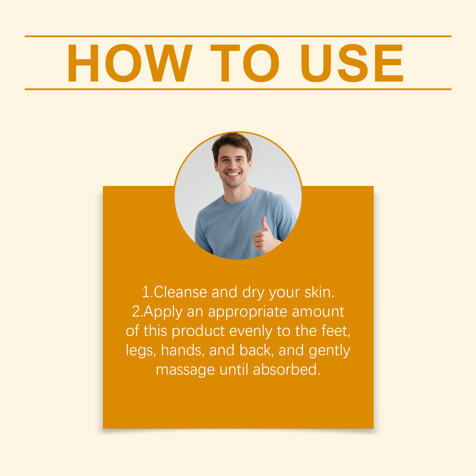 我们的草本护理膏,由橄榄油酸钾、姜根提取物精心调配而成。专为深层舒缓,快速放松,多重护理,持续效果设计。使用方法极为便捷:1.清洁肌肤并保持干燥。2.取适量本产品均匀涂抹于足部、腿部、手部和背部等部位,并轻轻按摩至吸收。并且它可以带来持久舒适感。适合长期护理使用,改善肢体活动能力。触感凉爽,快速缓解不适。
