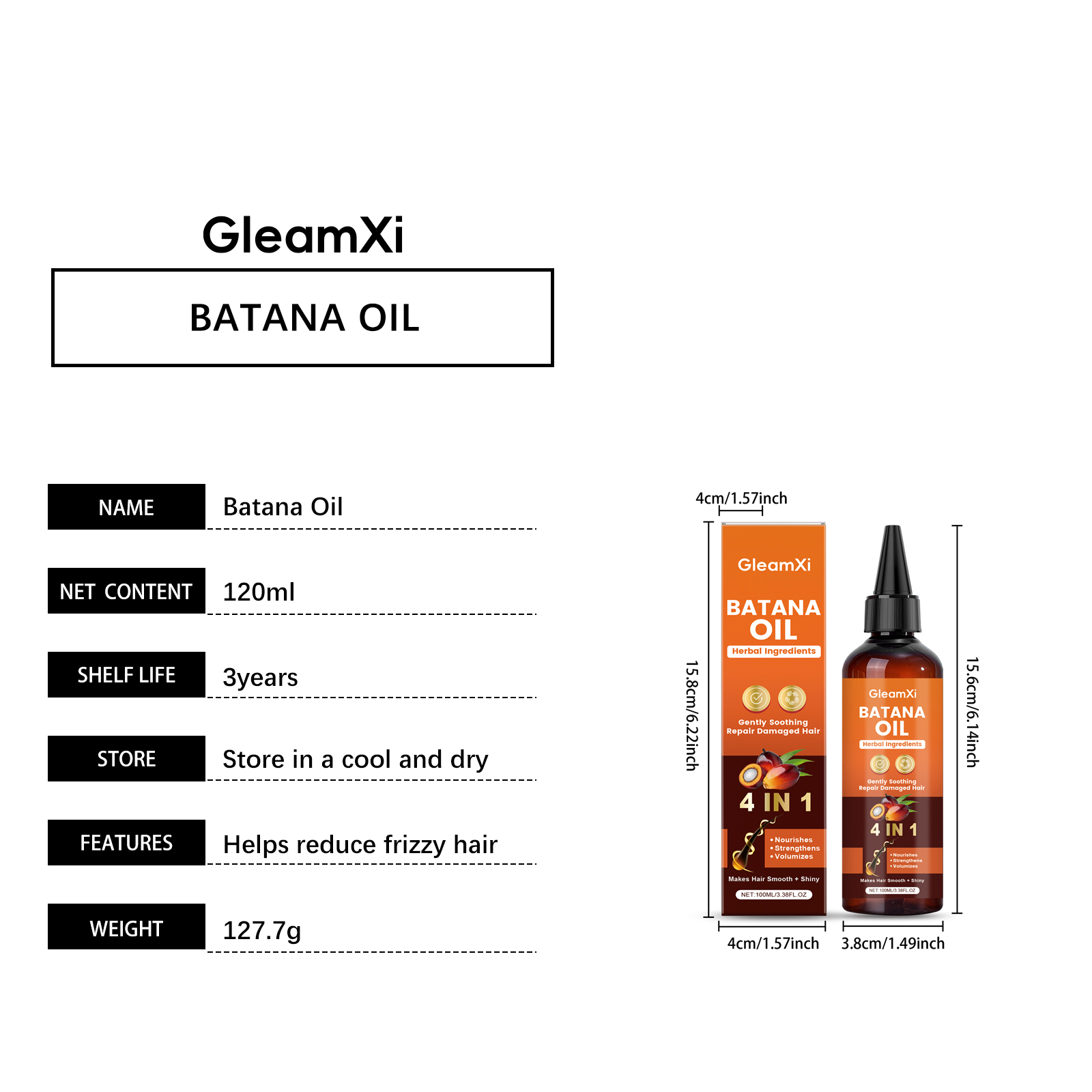 GleamXi Batana Hair Oil Provides Daily Care To Moisturize The Scalp, Keep It Light, Smooth And Plump, And Nourish The Hair