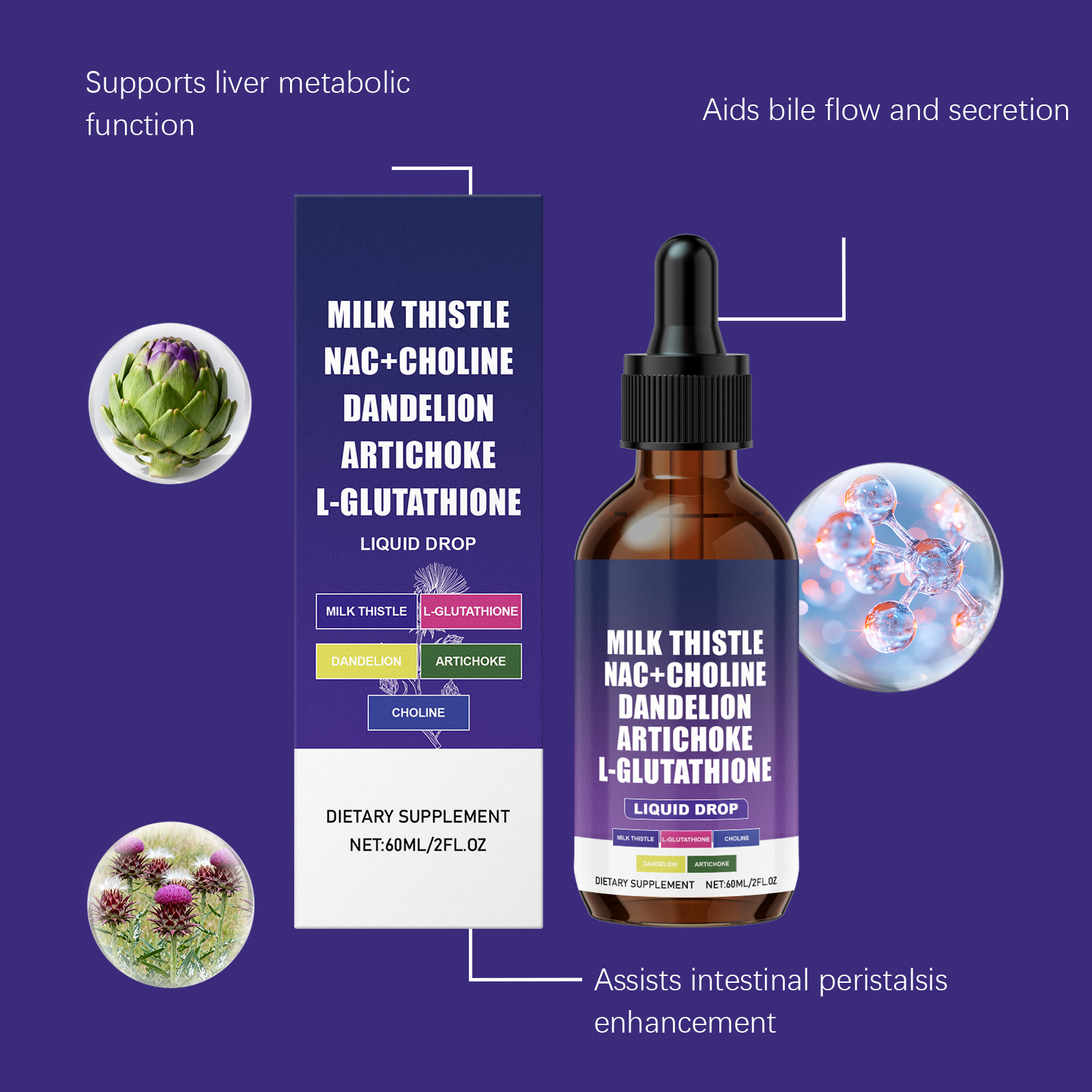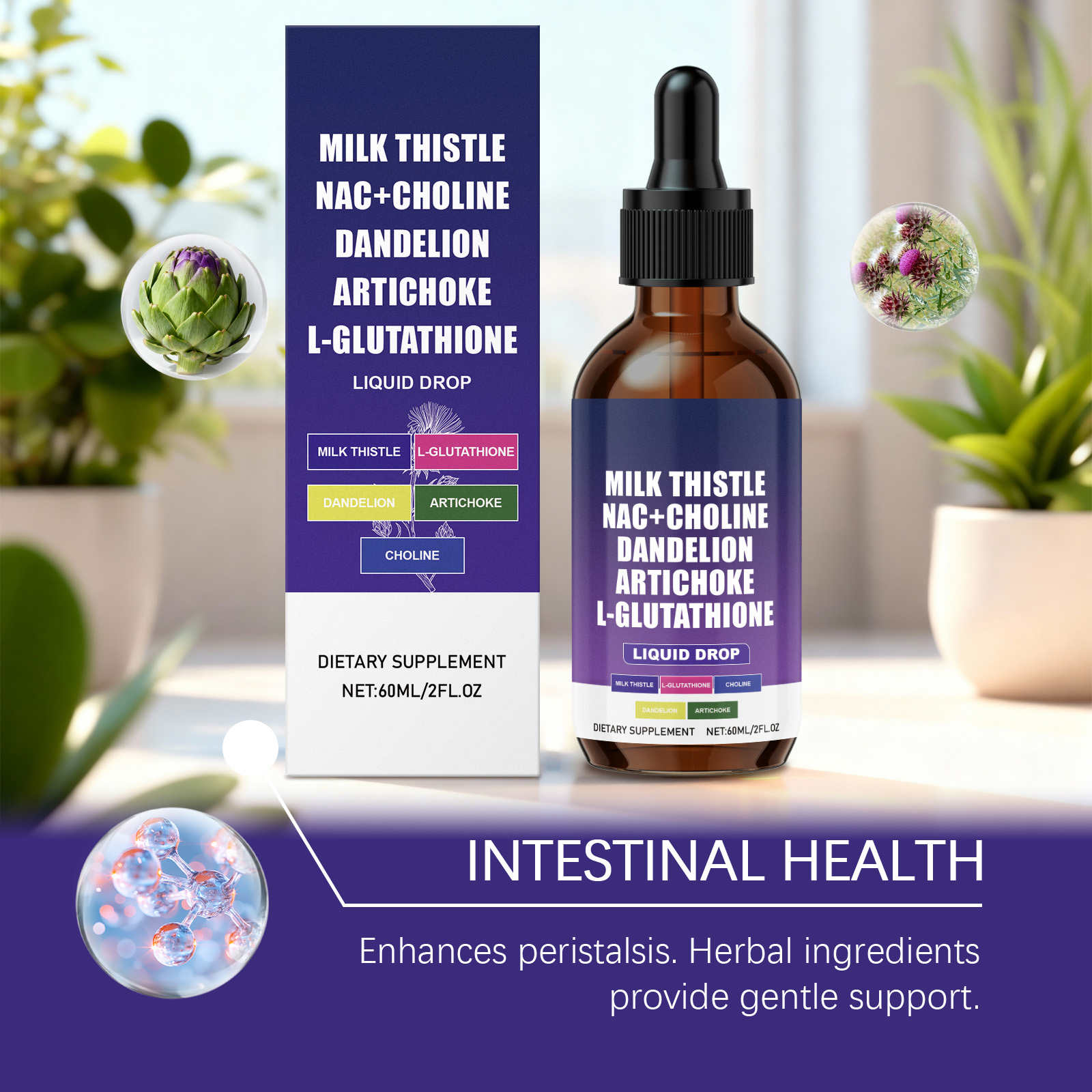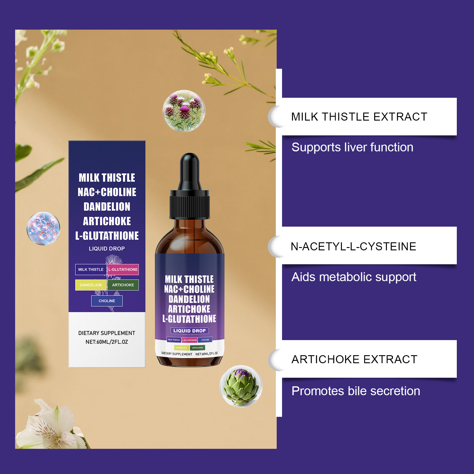 我们的身体护理滴剂,由N-乙酰半胱氨酸、洋蓟提取物精心调配而成。专为辅助代谢功能设计。使用方法极为便捷:每天服用1毫升,可直接服用或与其他食物混合。并且可以促进分泌和流动。