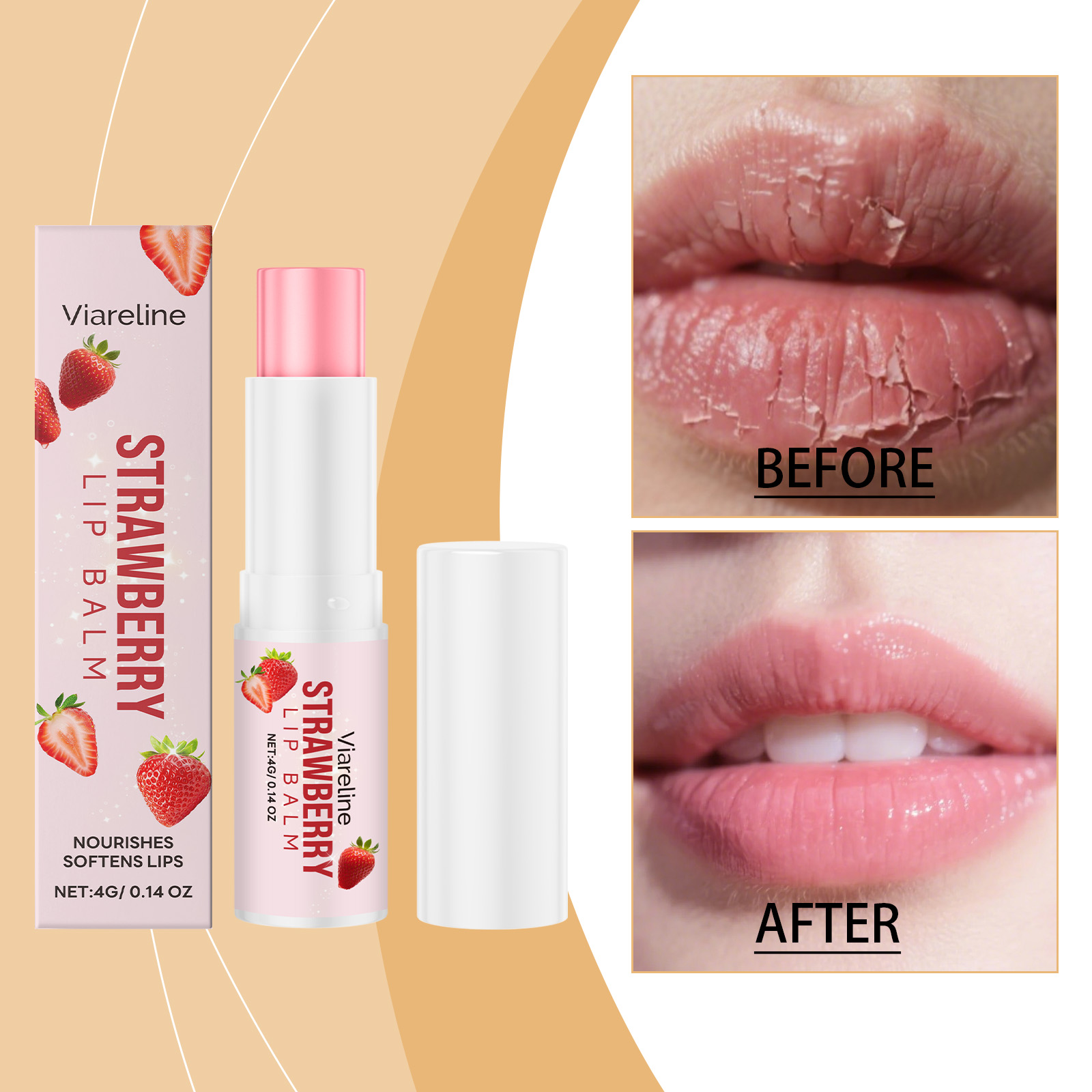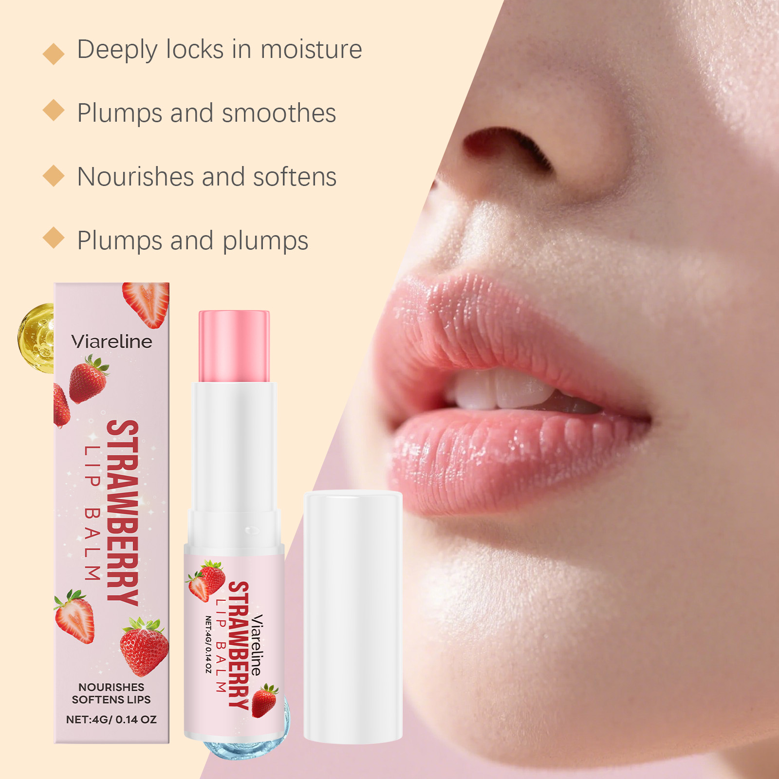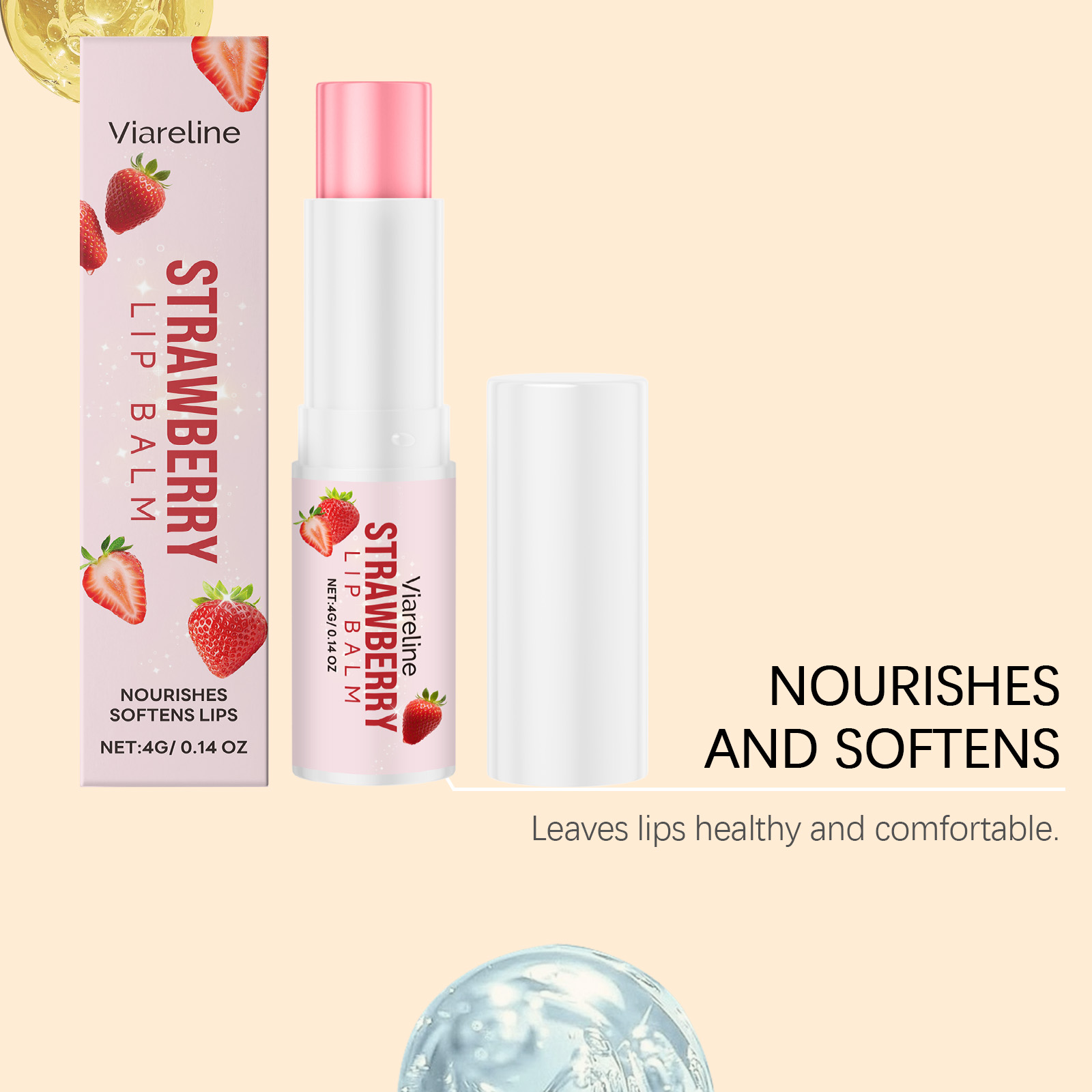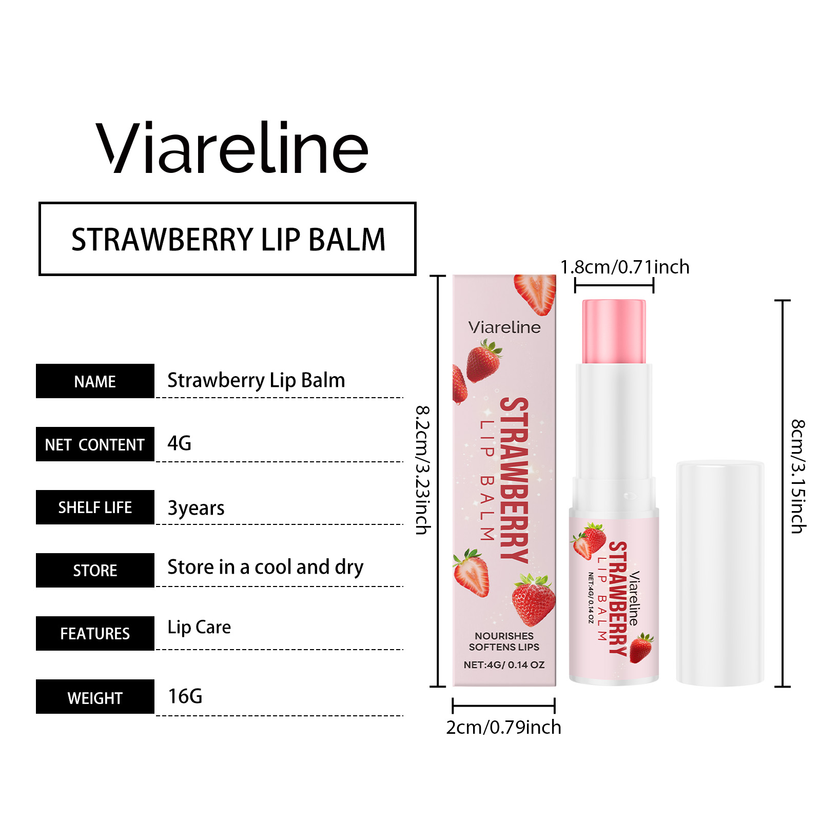 Viareline The Strawberry Lip Balm Has A Mild Formula And A Light Texture, Providing Care For The Lips And Moisturizing The Lip Skin