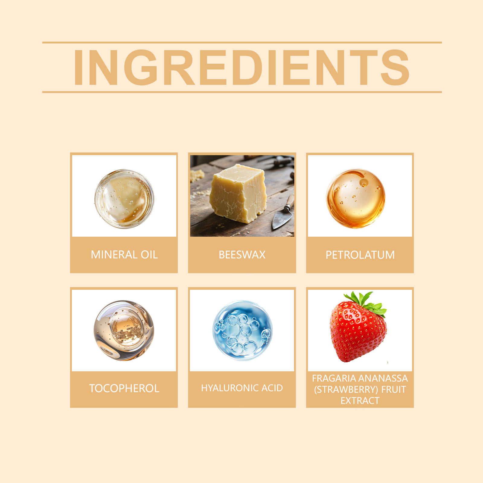 我们的草莓润唇膏,由透明质酸、草莓提取物精心调配而成。专为保持嘴唇水润,实现持久保湿设计。使用方法极为便捷:1.清洁并擦干你的嘴唇。2.旋转取适量产品,轻柔涂抹于双唇。轻轻按压双唇,等待其吸收。并且可以增强唇部质感。