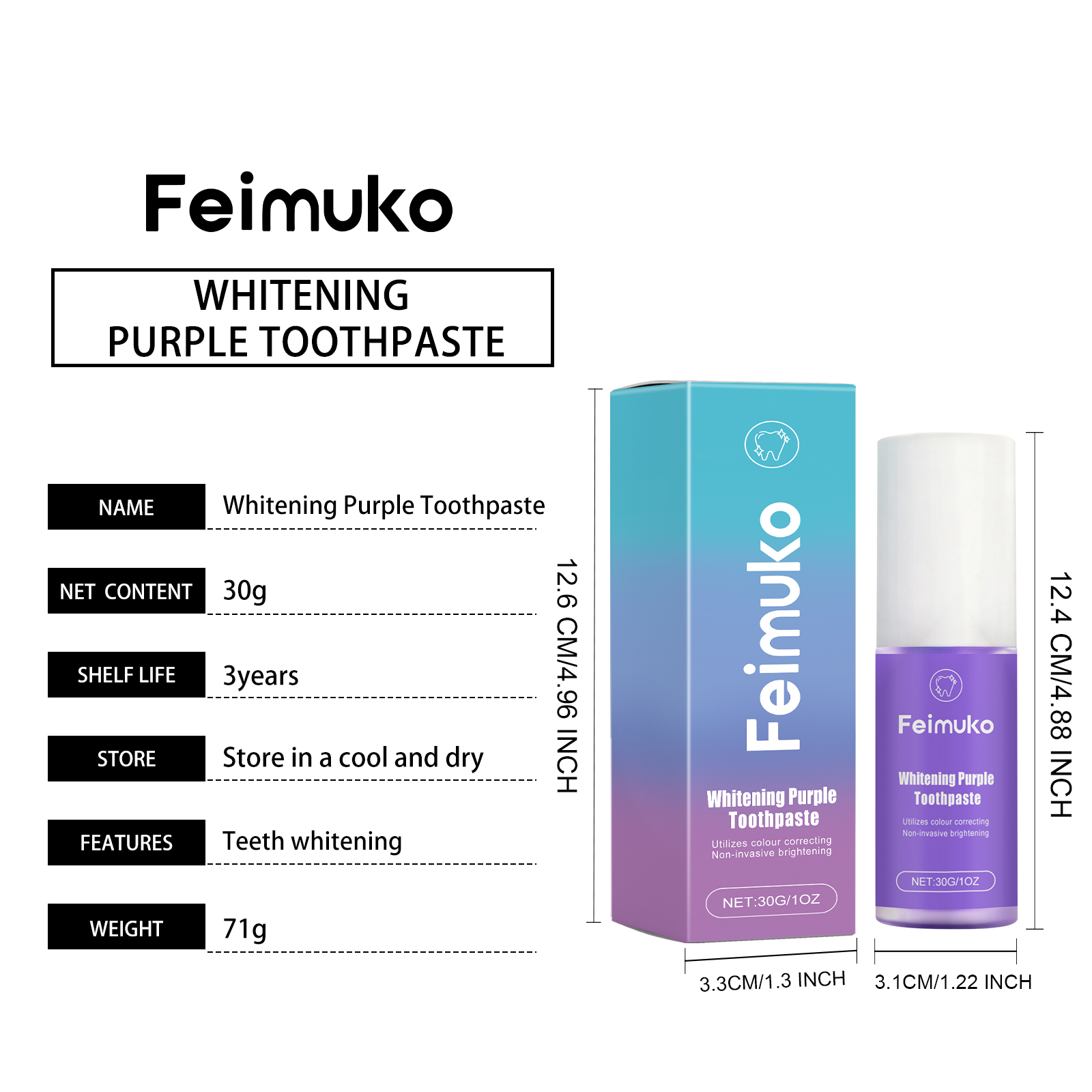 Feimuko Purple Toothpaste Has A Refreshing Mint Flavor, Is Delicate And Gentle, Cleans And Protects Teeth, And Enhances The Luster Of The Tooth Surface
