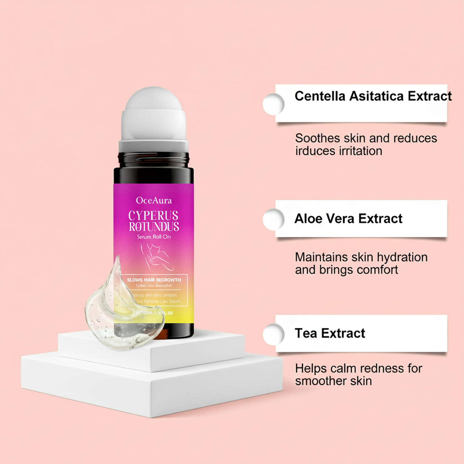 我们的腋下剃须后护理滚珠,由甘油、1,2-己二醇精心调配而成。专为舒缓腋下剃须或脱毛后的肌肤不适,维持肌肤水润,减轻泛红与刺激感设计。使用方法极为便捷:1.剃须后,将精华液直接涂抹于清洁干燥的腋下肌肤上。2.等待 10-15 秒,让精华液充分吸收(无需冲洗)。并且它的配方温和,适配敏感肌无不适,助力日常脱毛后肌肤顺滑护理。