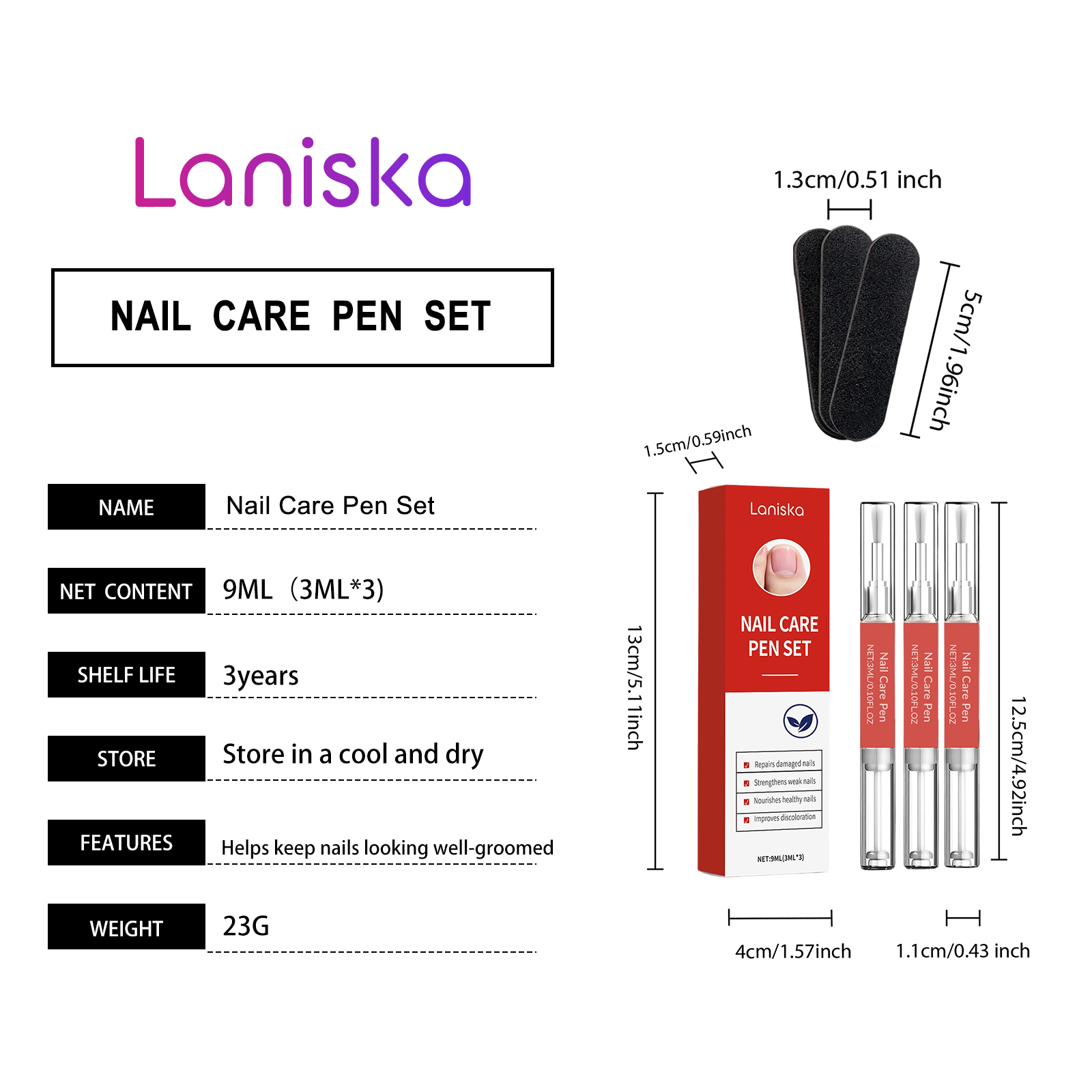 Laniska Nail Care Pen Set Gentle, Lustrous Nail Surface, Daily Care, Moisturizing Nails, Easy To Apply