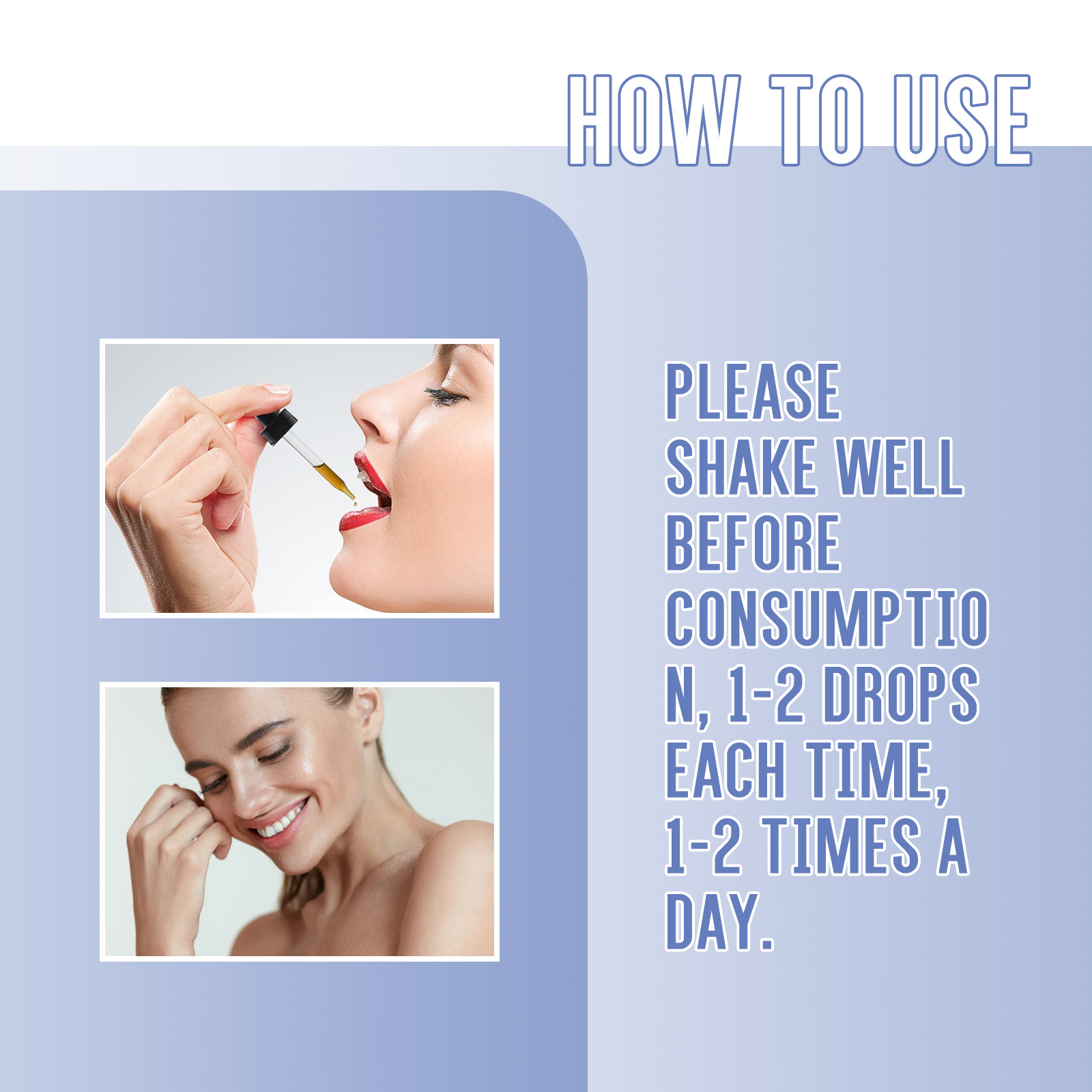 我们的膳食补充滴剂(入口)含有白藜芦醇,烟酰胺单核苷酸,三甲基甘氨酸。它可以帮助增强身体代谢,为身体提供能量,使您每天精力充沛。它的使用方法很简单:食用前先摇匀,每次1-2滴,每天1-2次即可。可以帮助增强皮肤弹性,使您的皮肤更丰满和有光泽。