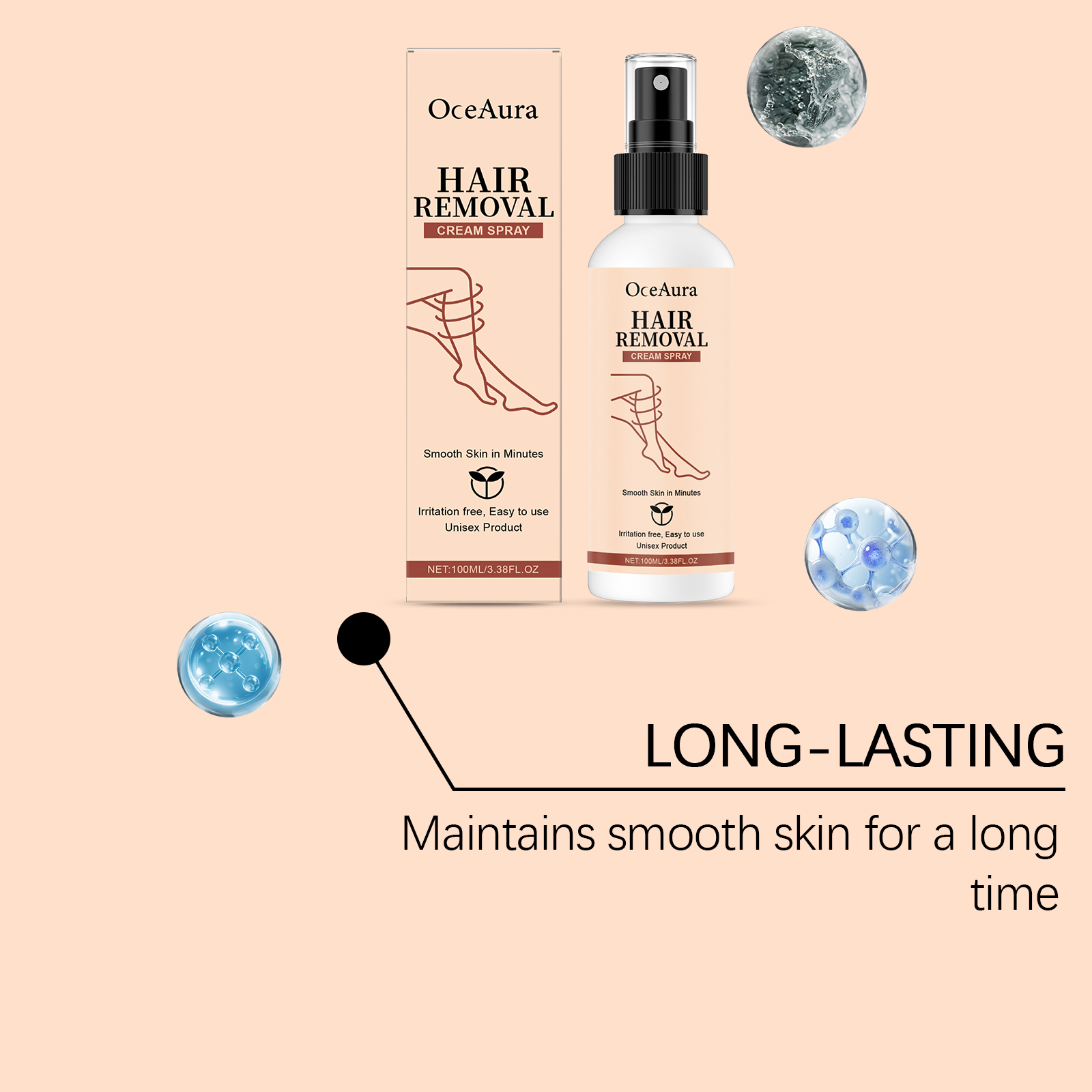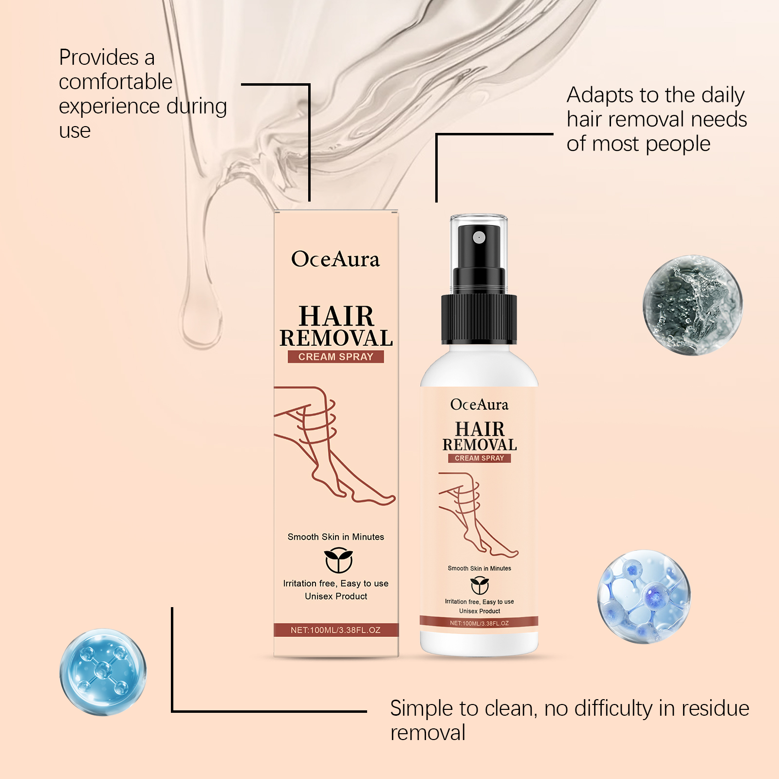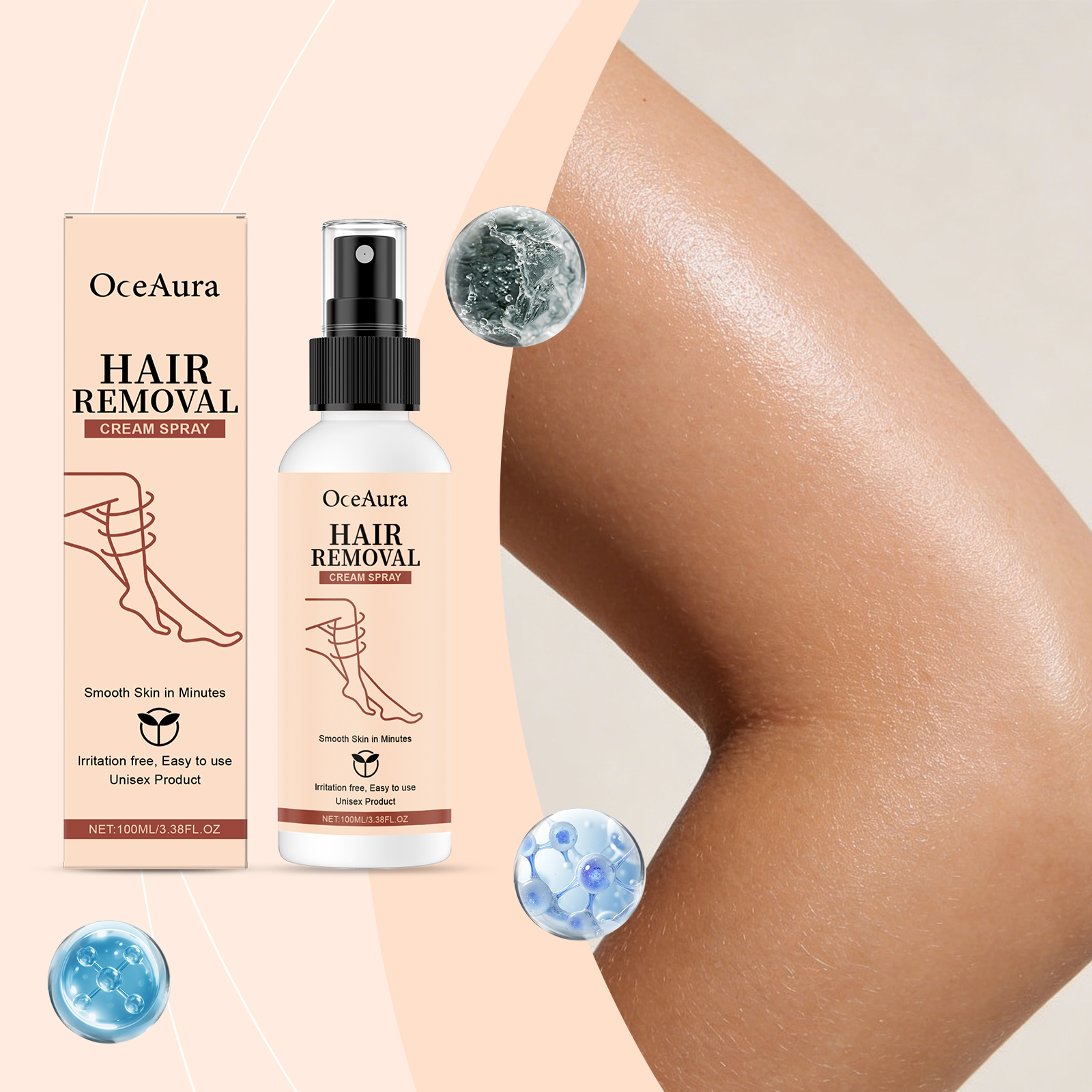 OceAura Hair Removal Spray Moisturizes And Cleanses The Skin, Making It Light, Smooth, Refreshing And Delicate. It Is A Daily Body Care Spray