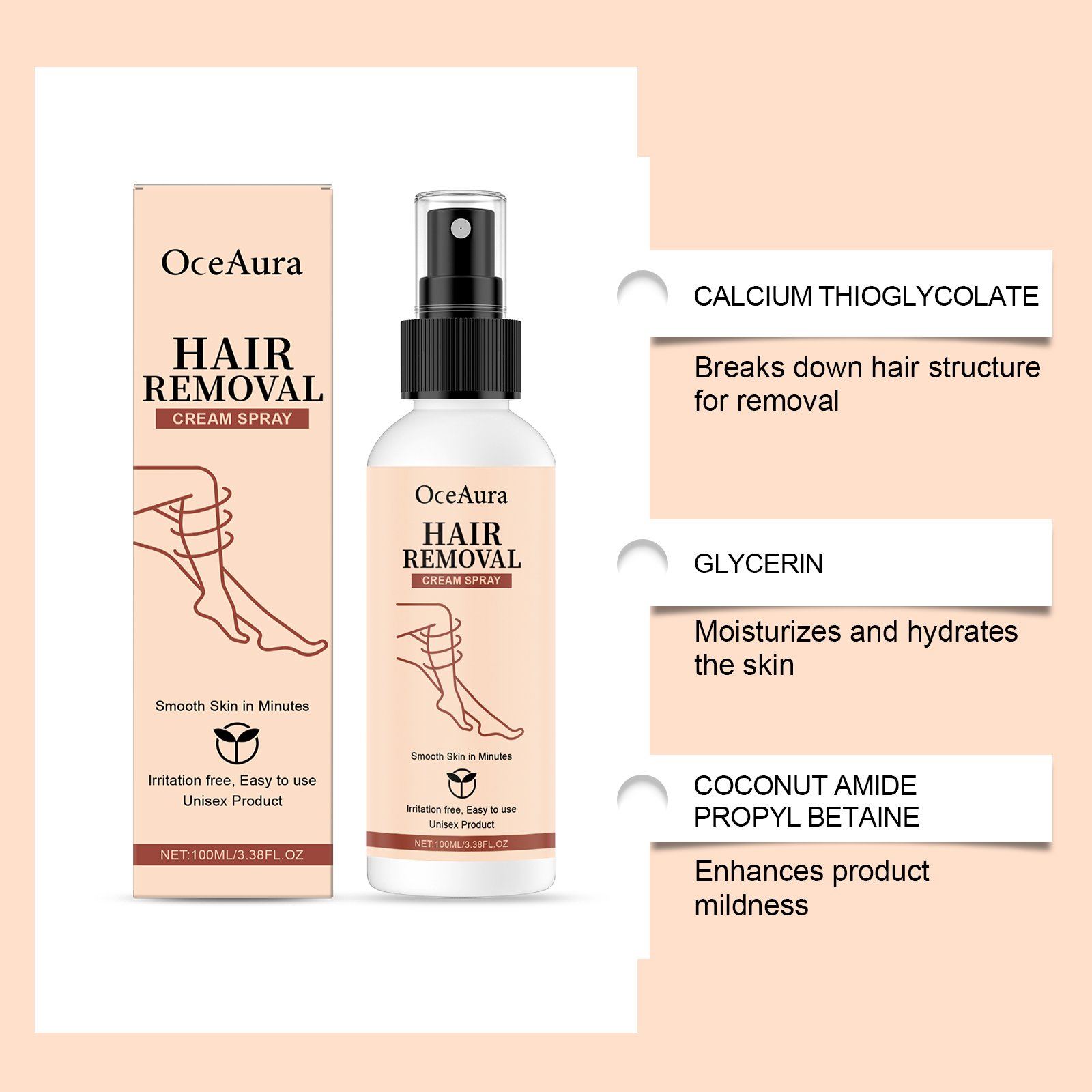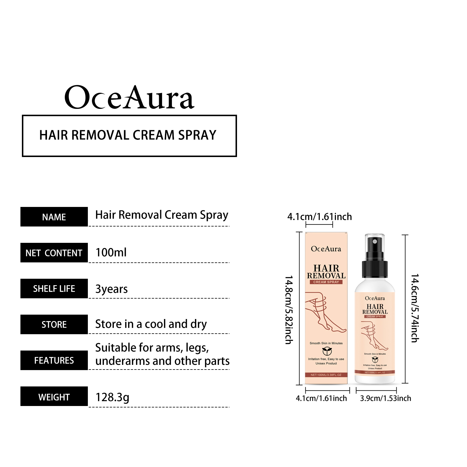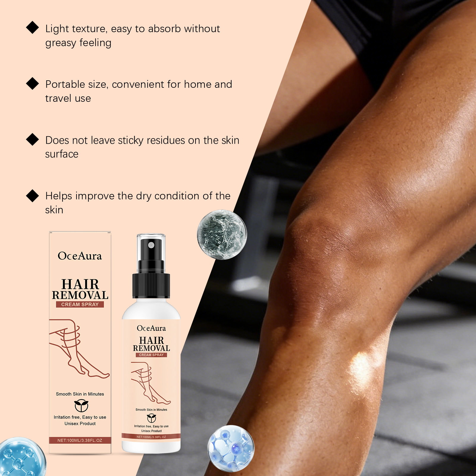 OceAura Hair Removal Spray Moisturizes And Cleanses The Skin, Making It Light, Smooth, Refreshing And Delicate. It Is A Daily Body Care Spray