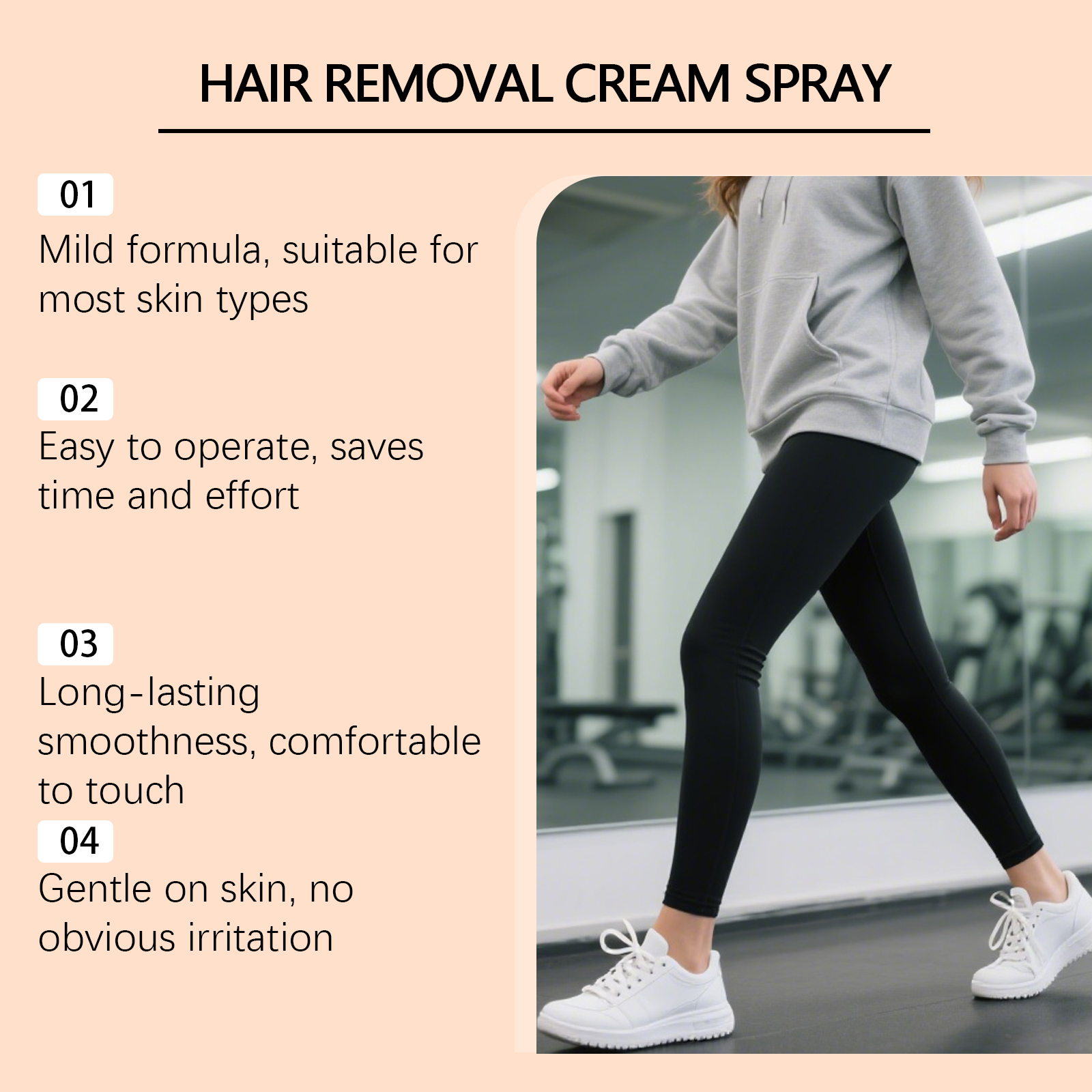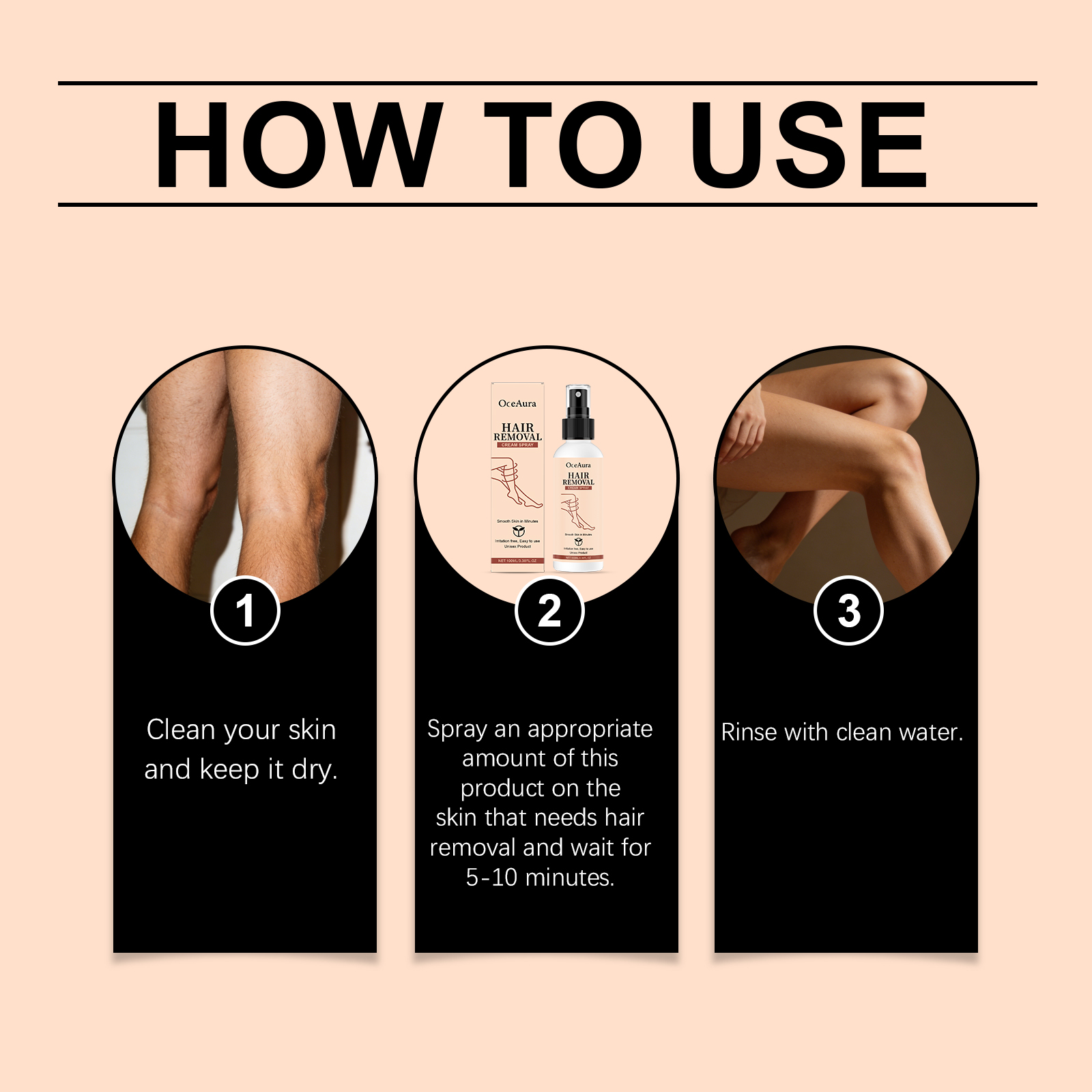 我们的脱毛喷雾,由巯基乙酸钙、甘油精心调配而成。专为温和成分呵护娇嫩肌肤设计。使用方法极为便捷:1.清洁你的皮肤并保持其干燥。2.取适量本产品涂抹于需要脱毛的皮肤上,静置 5 至 10 分钟。3.用清水冲洗。并且它只需几分钟即可去除毛发。