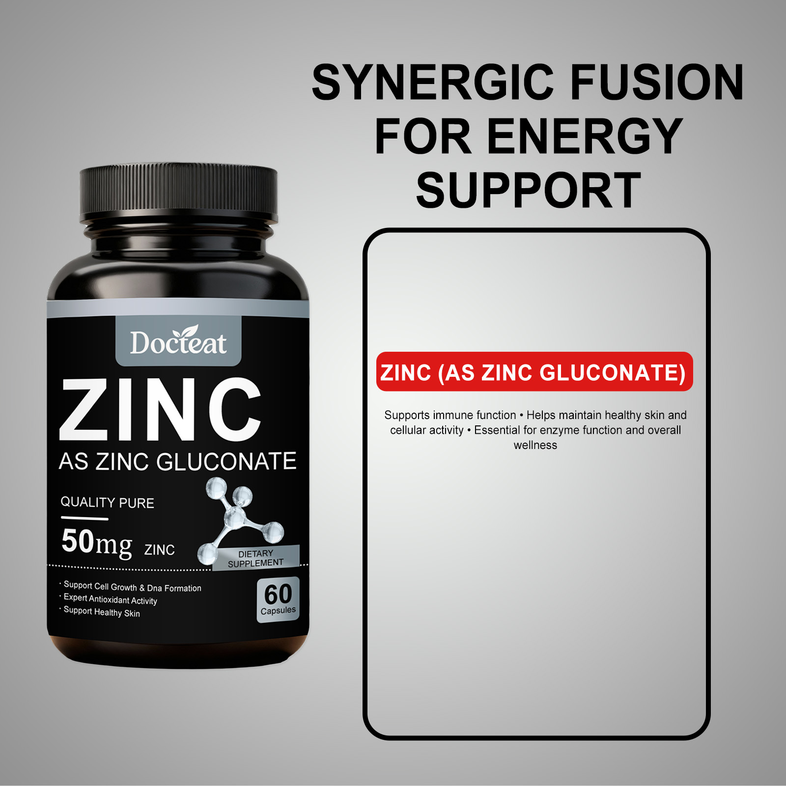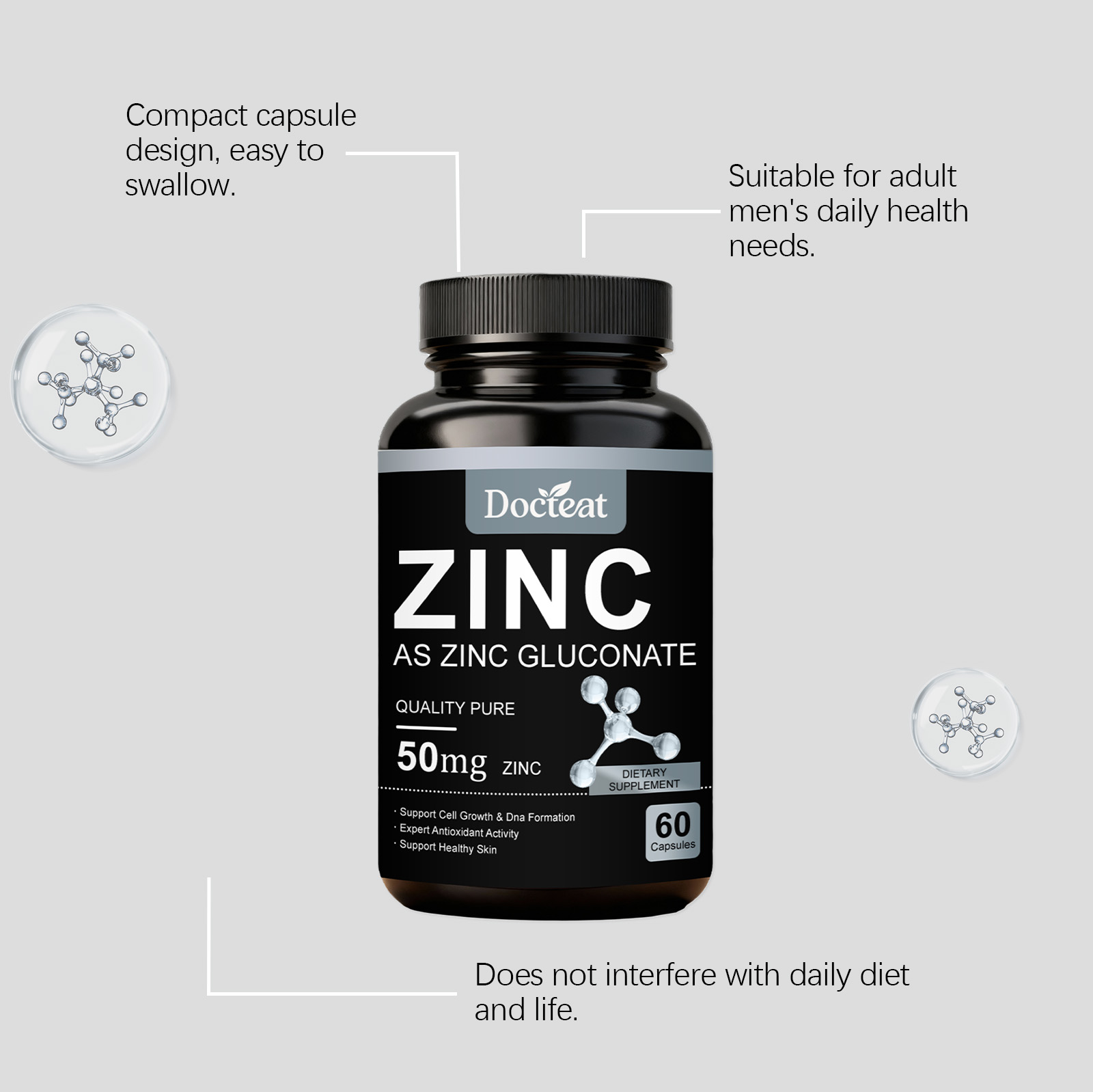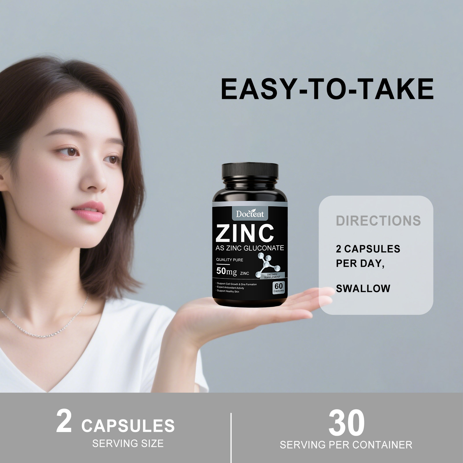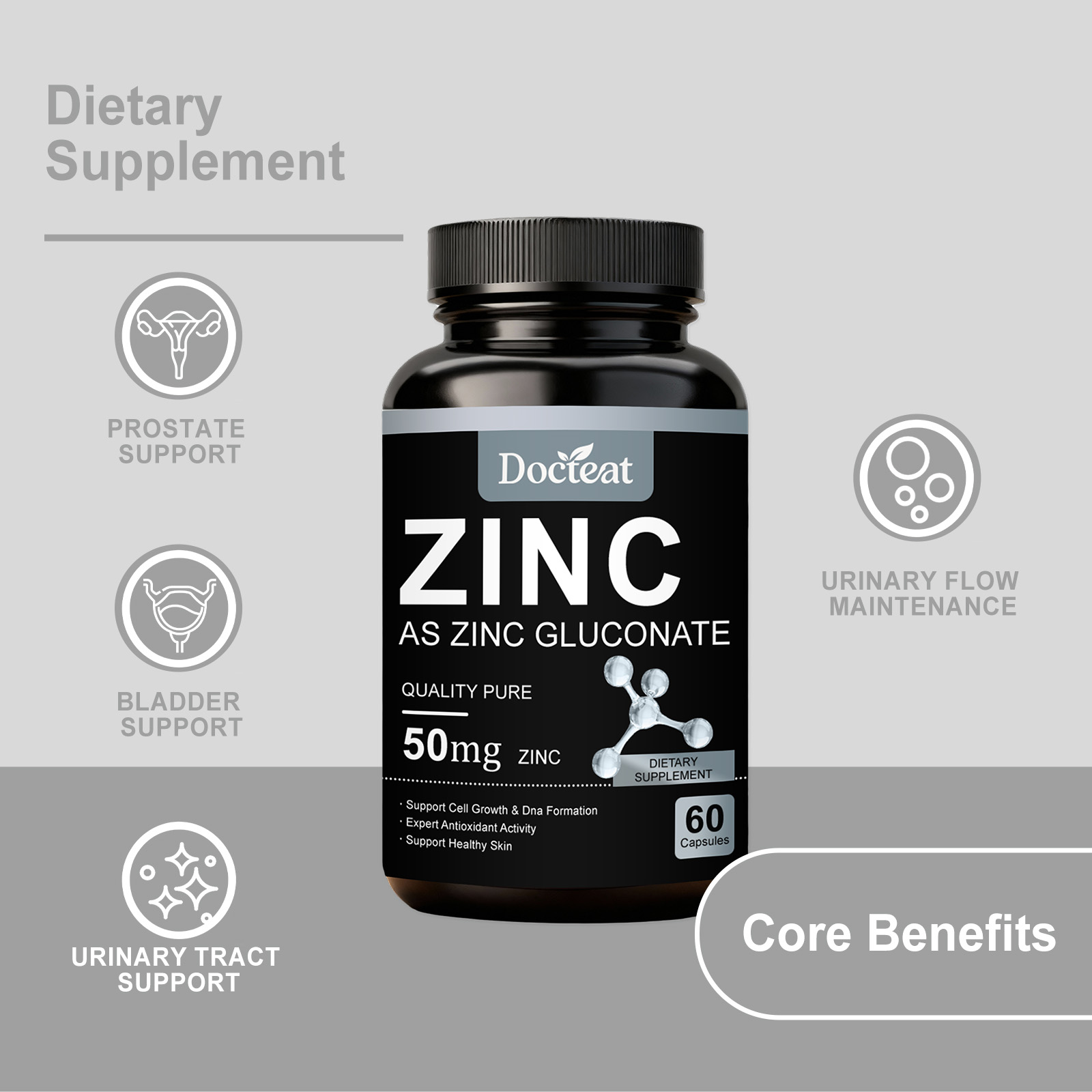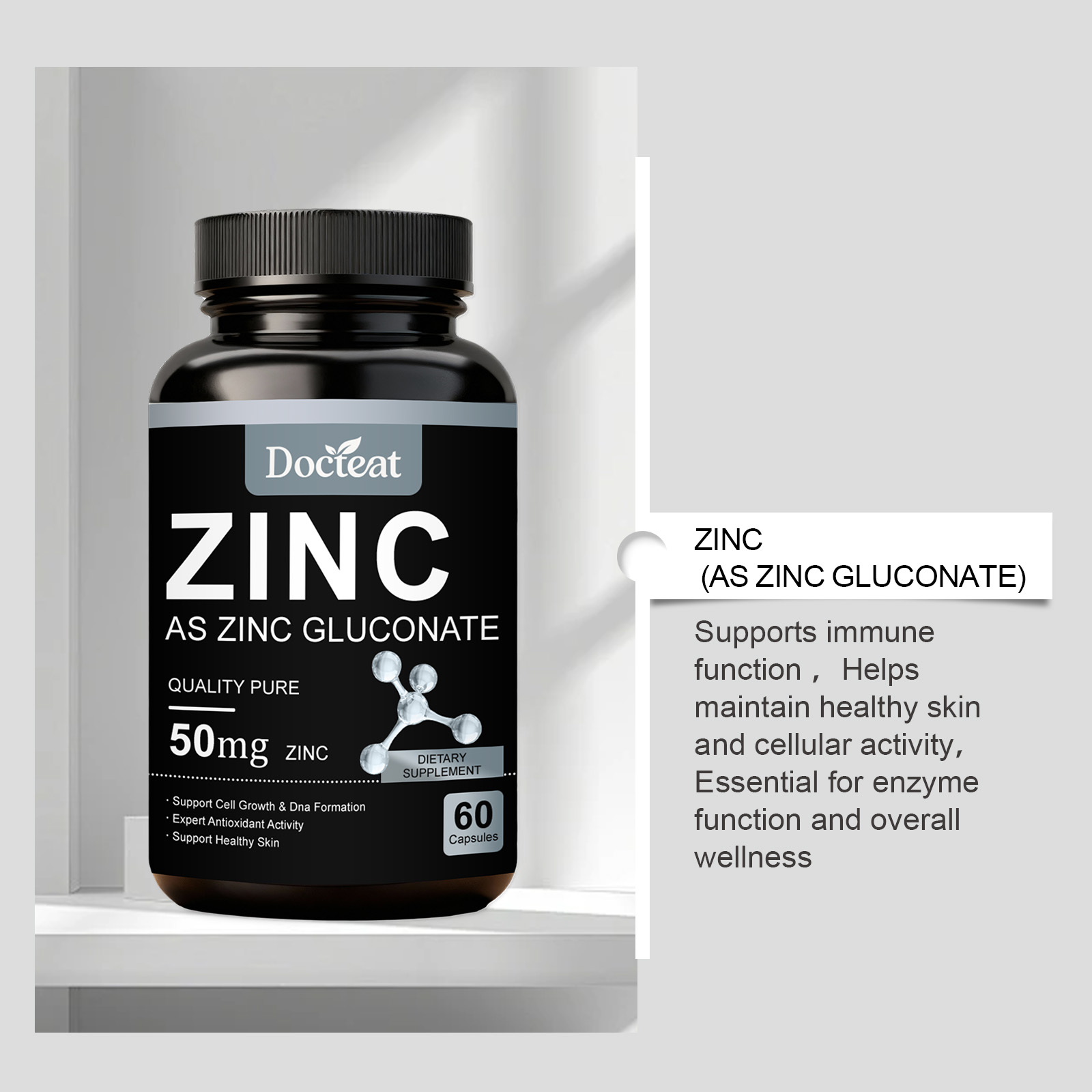Docteat Zinc Supplement Capsules, With A Mild Formula, Are Dietary Supplements For Daily Care And Body Maintenance