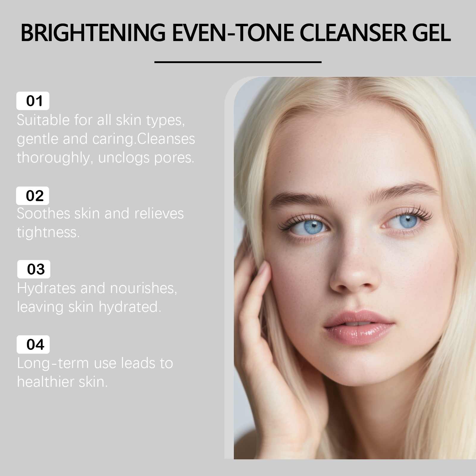 我们的洁面啫喱,由癸基葡糖苷、甘油精心调配而成。专为改善肌肤纹理,使肌肤更柔软光滑细腻设计。使用方法极为便捷:1.用清水湿润面部肌肤。2.取适量本品于手掌,轻轻搓出泡沫,将泡沫均匀涂抹在面部肌肤,轻柔按摩清洁面部肌肤1-2分钟。3.最后用清水洗净即可。并且它可以温和清洁,舒缓并保护肌肤屏障,改善肤色不均,提亮肤色,焕发光彩。