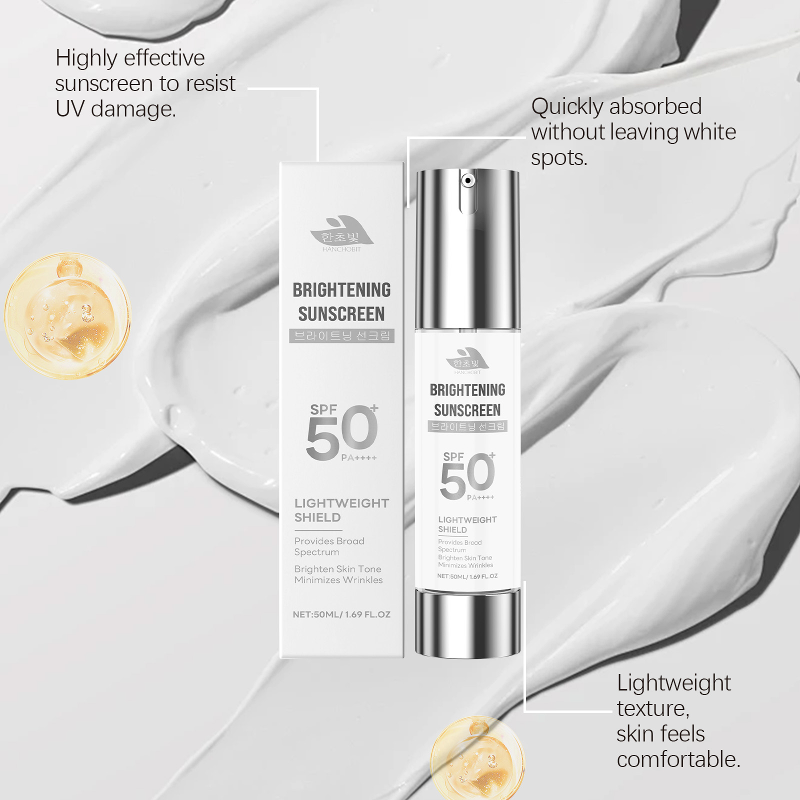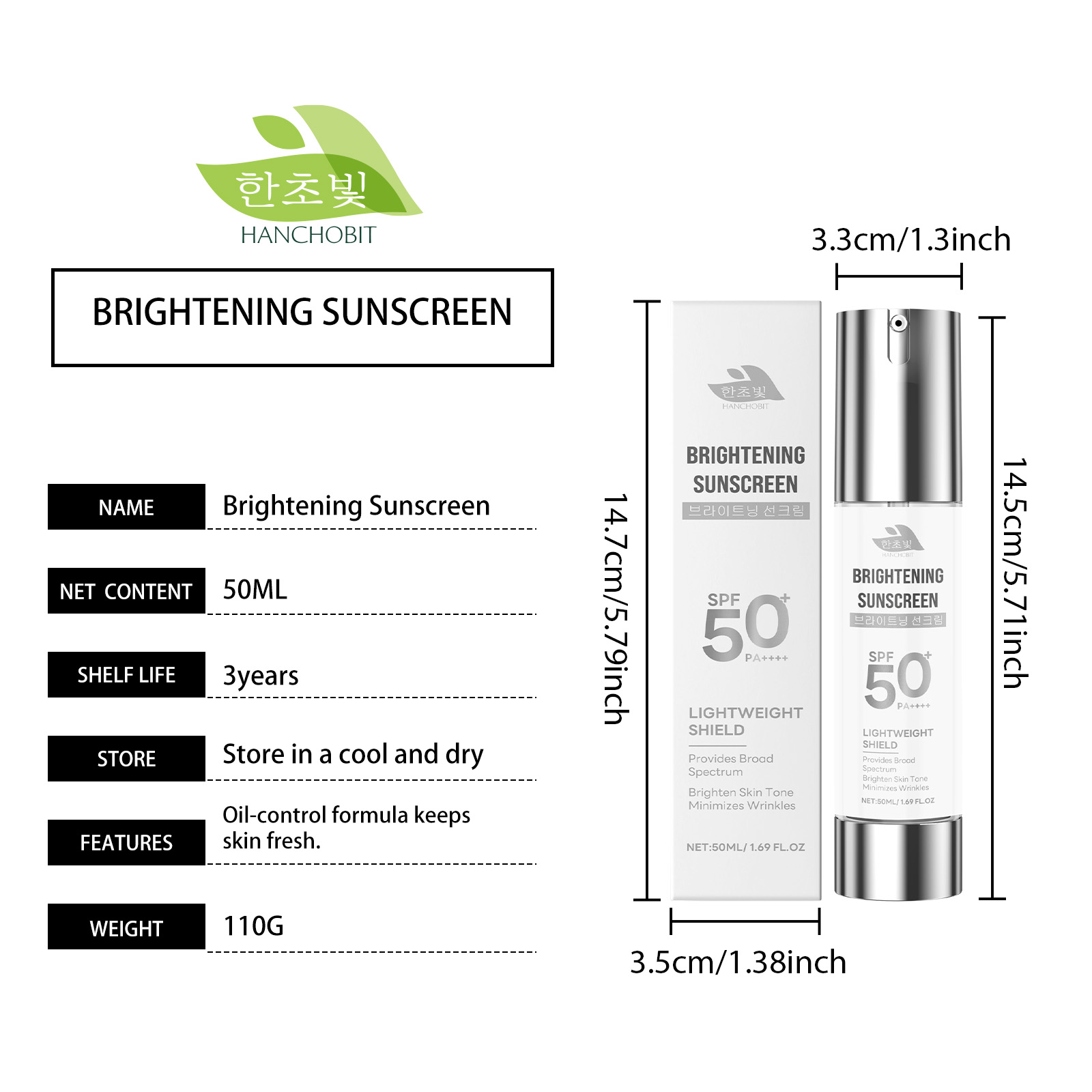 한초빛 HANCHOBIT Brightening Protective Cream Moisturizes, Hydrates, Isolates Daily Outdoor Protection Light Texture Natural Cream