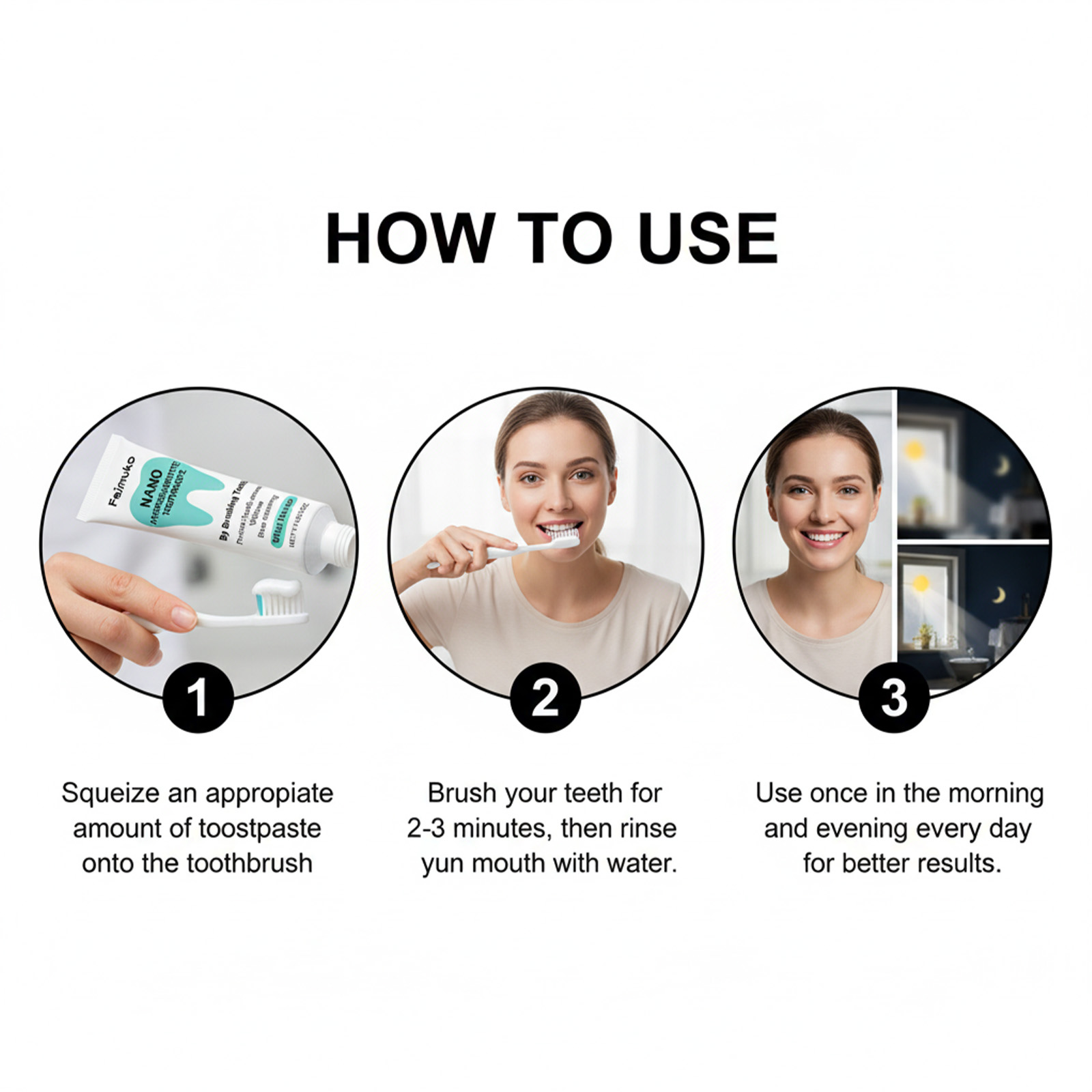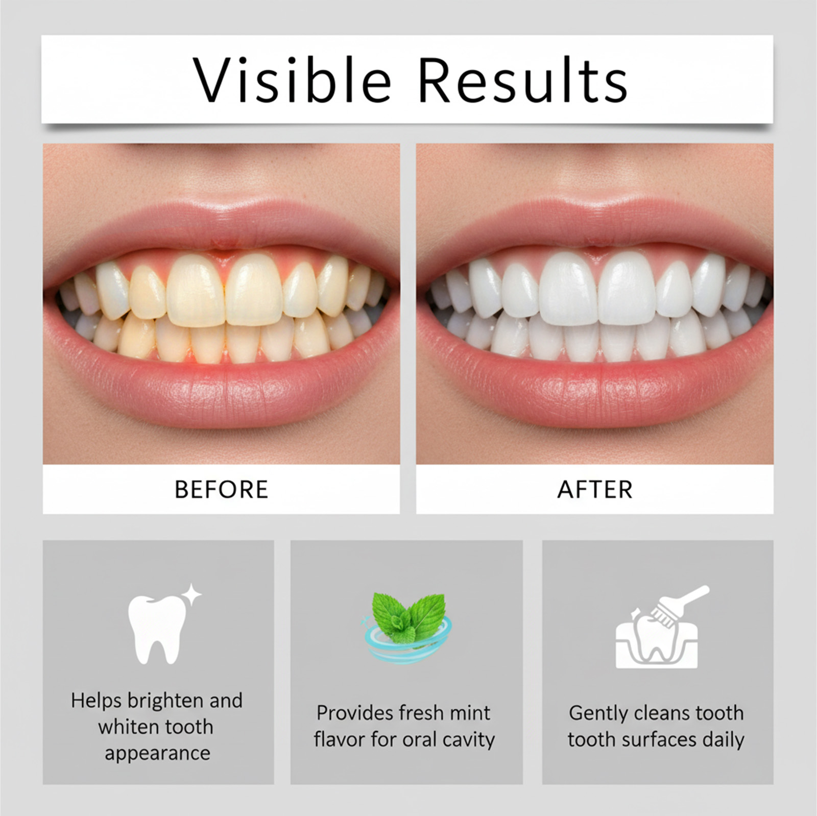 我们的薄荷牙膏,由癸基葡糖苷、薄荷醇精心调配而成。专为提升牙齿整体外观设计。使用方法极为便捷:将适量牙膏挤到牙刷子。刷牙2-3分钟,然后用水漱口。每天早晚各使用一次,以获得更好的效果。并且可以提供持久清新口气。