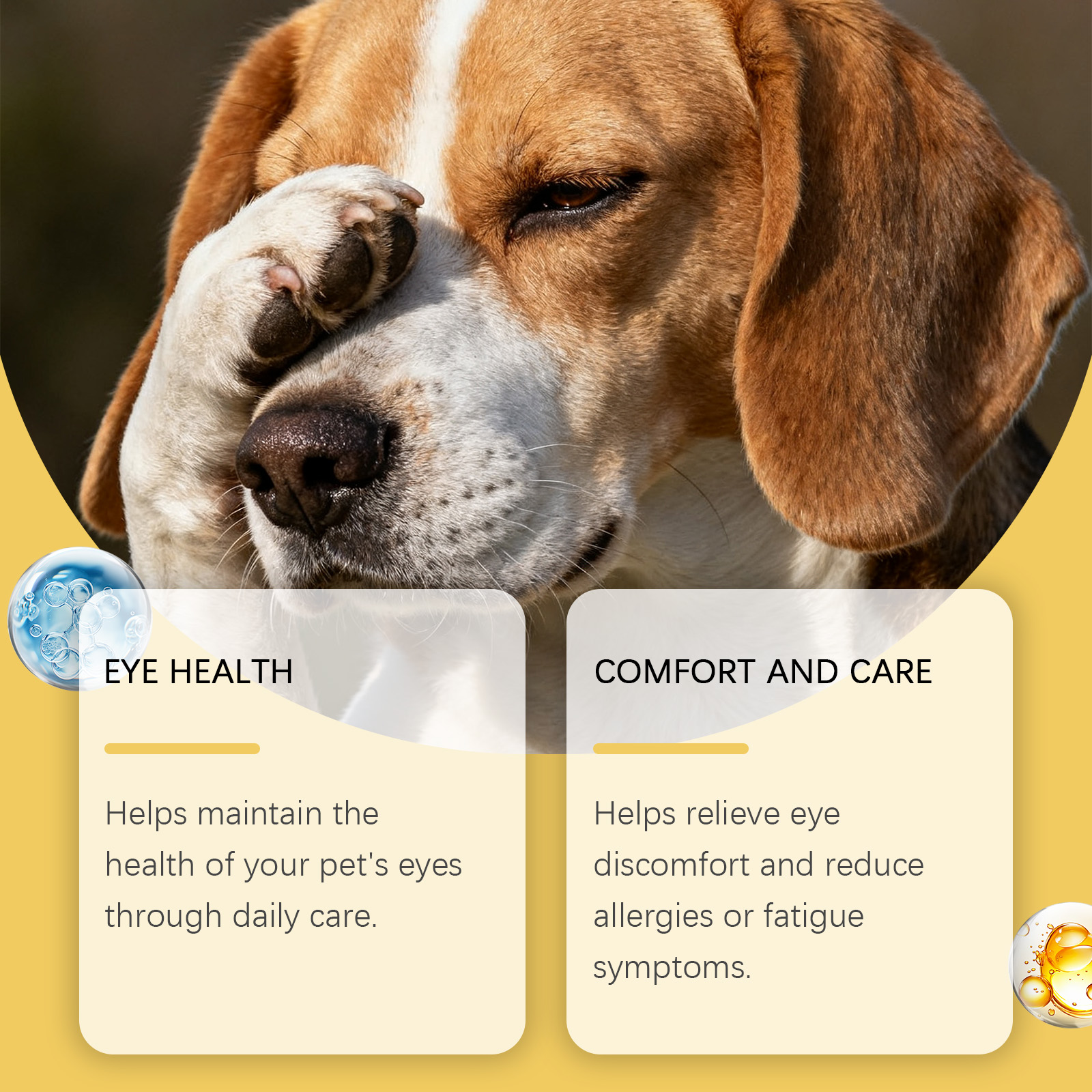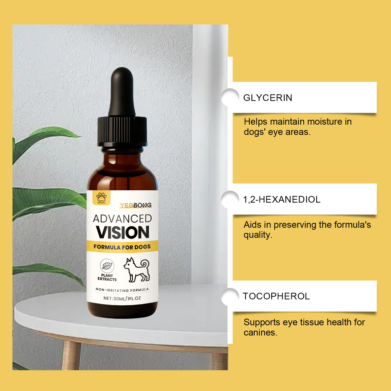 我们的狗狗护理滴眼液,由甘油、1,2-己二醇精心调配而成。专为帮助维持宠物眼睛的健康设计。使用方法极为便捷:保持宠物的头部静止不动,使它的眼睛朝上,分开上、下眼睑,然后轻轻挤压瓶身,将药物滴入宠物的眼中。1至2分钟后,用宠物专用的擦拭巾轻轻擦去多余的药物。并且有助于缓解眼部不适并减少过敏或疲劳症状。
