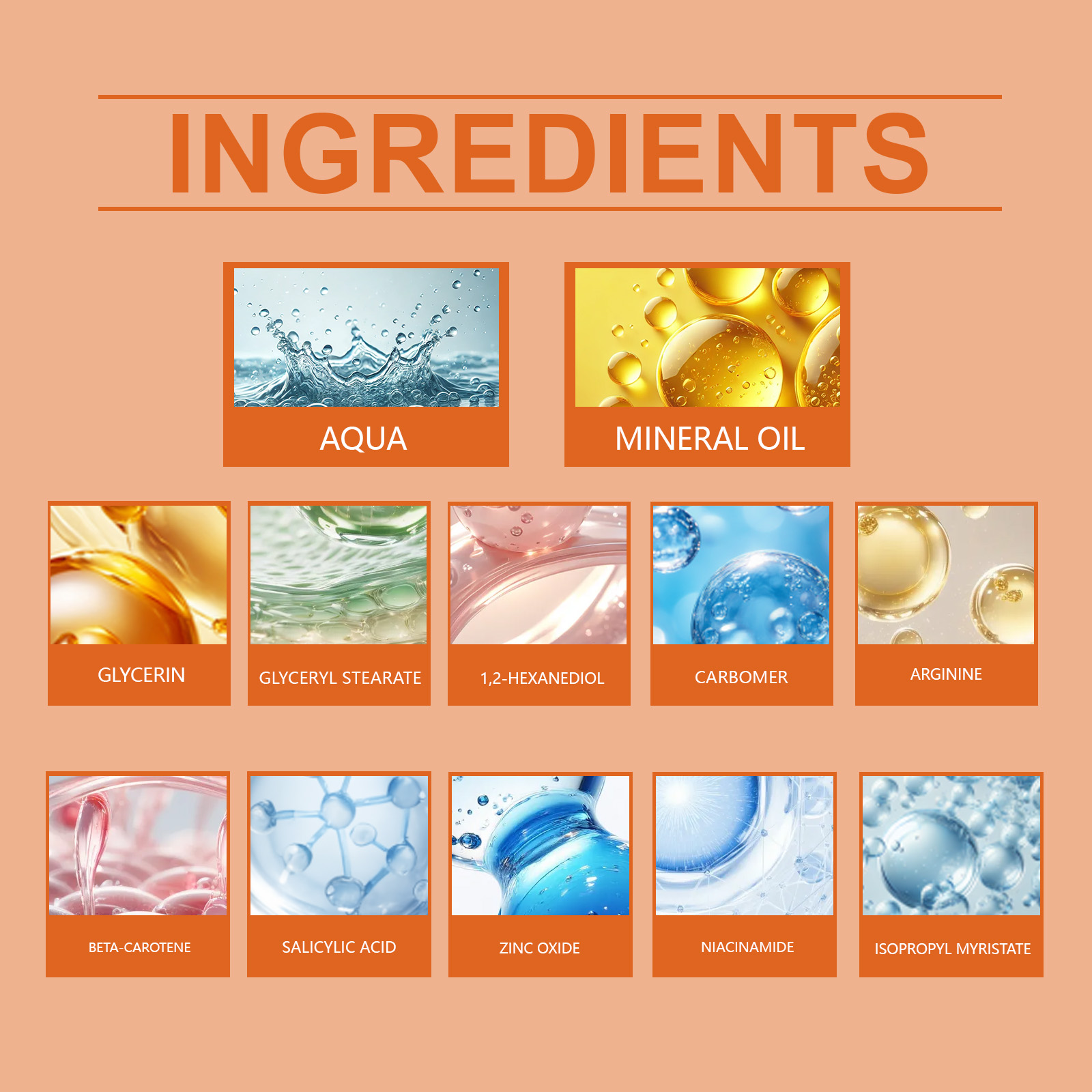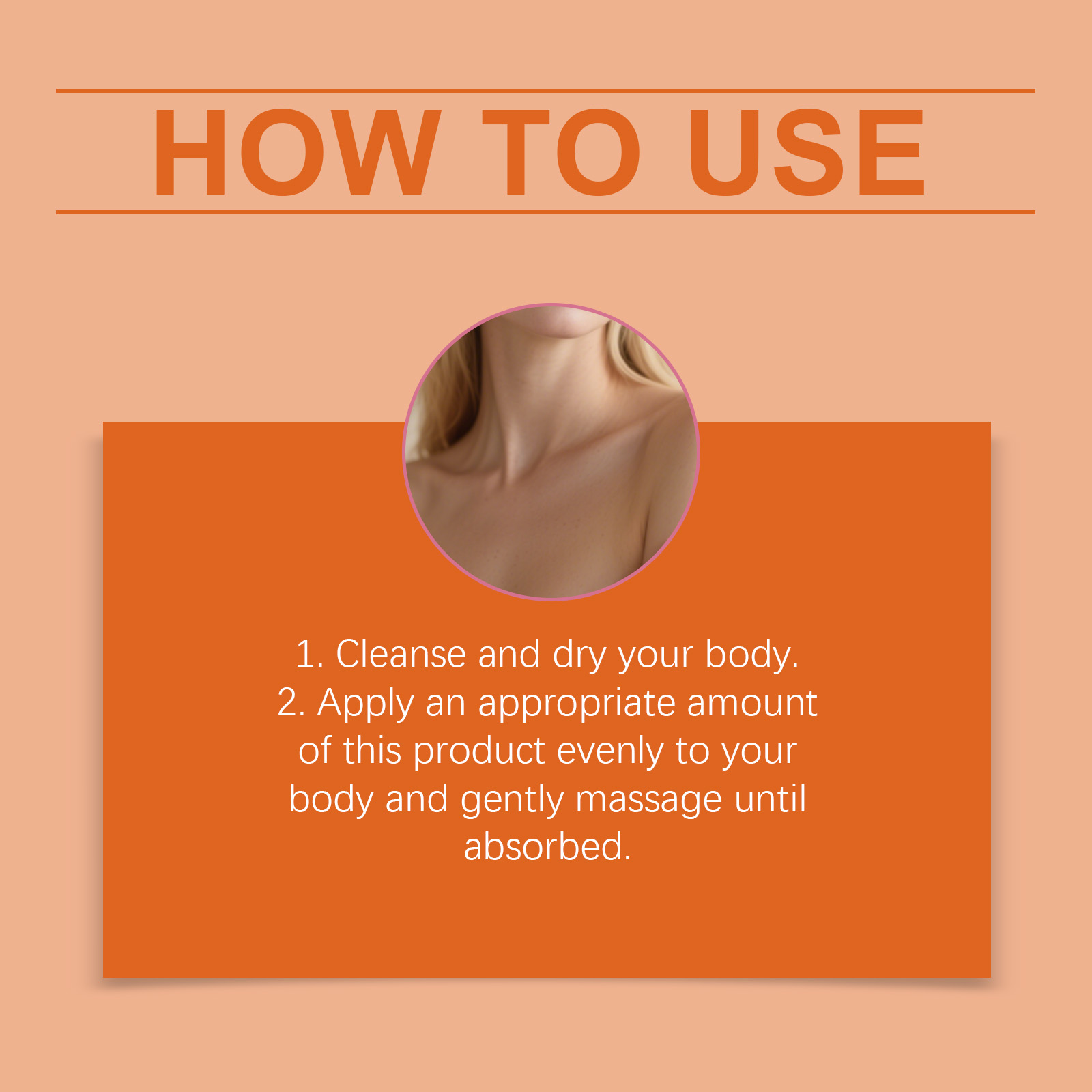 我们的胡萝卜素精华乳,由烟酰胺、肉豆蔻酸异丙酯精心调配而成。专为皮肤提供持久的保湿效果设计。使用方法极为便捷:1.清洁并擦干身体。2.取适量本品均匀涂抹于身体,并轻轻按摩至吸收。并且可以为皮肤提供丰富的滋养并减少干燥。