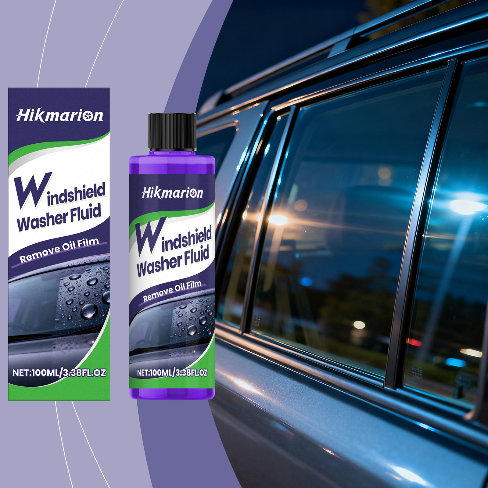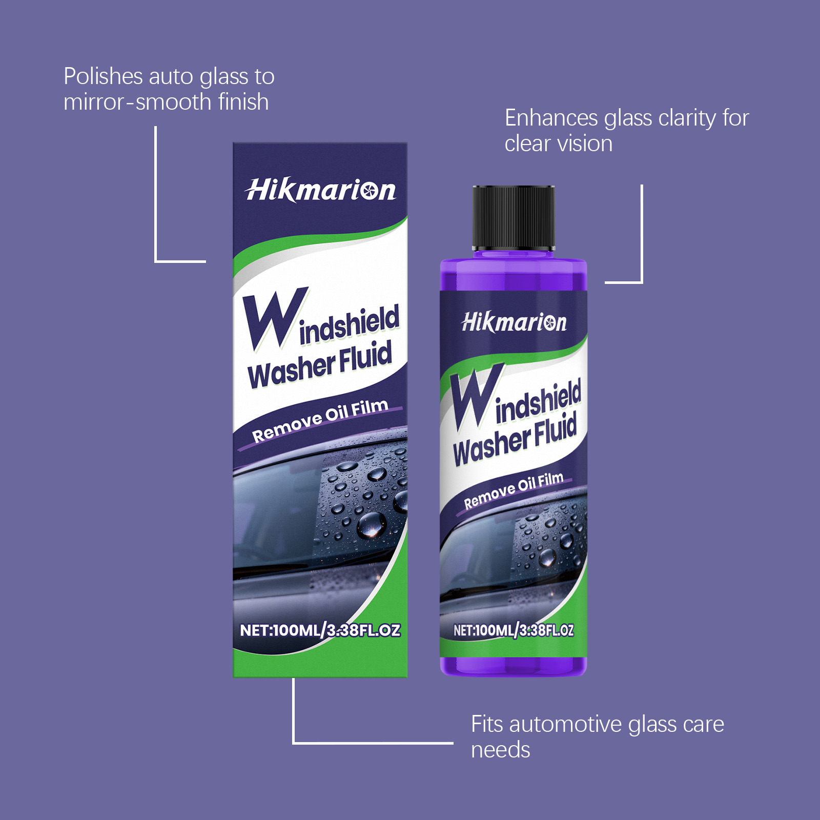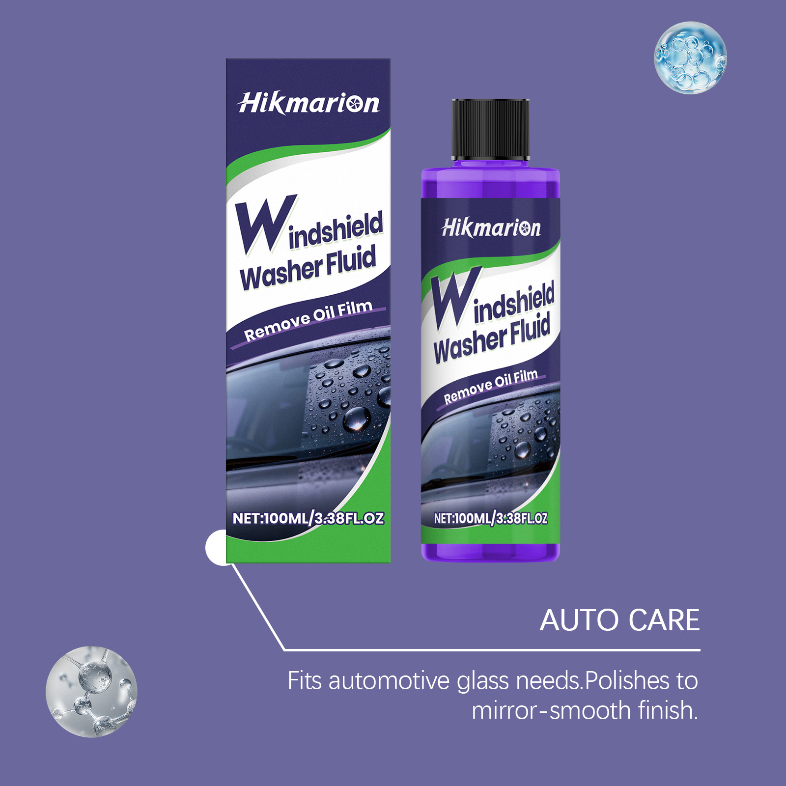 Hikmarion Windshield Washer Fluid, Car Glass Oil Film Stain Refurbishment, Clear Vision Cleaner