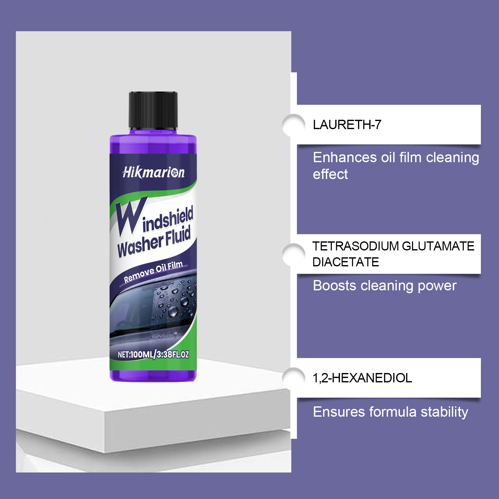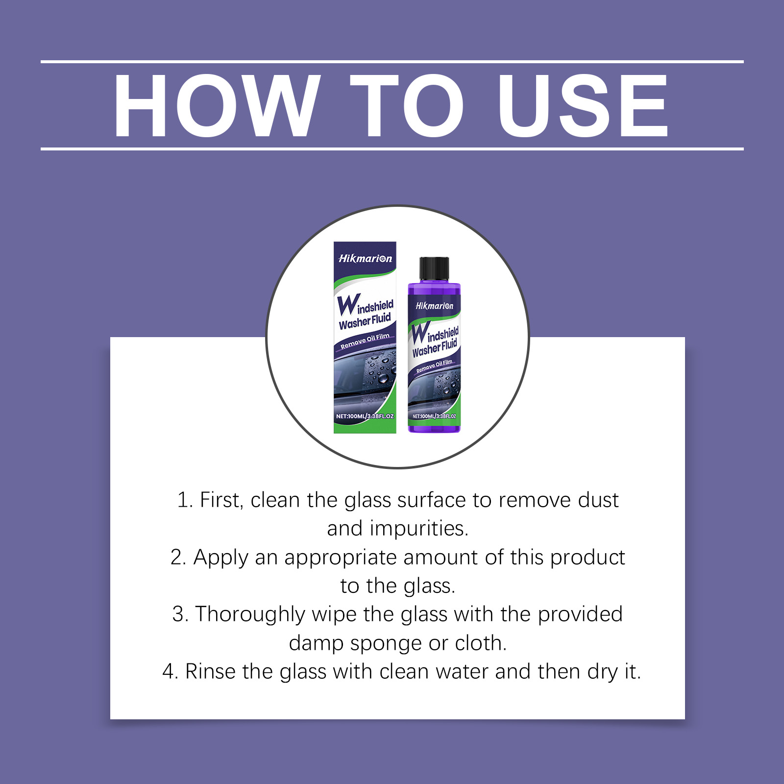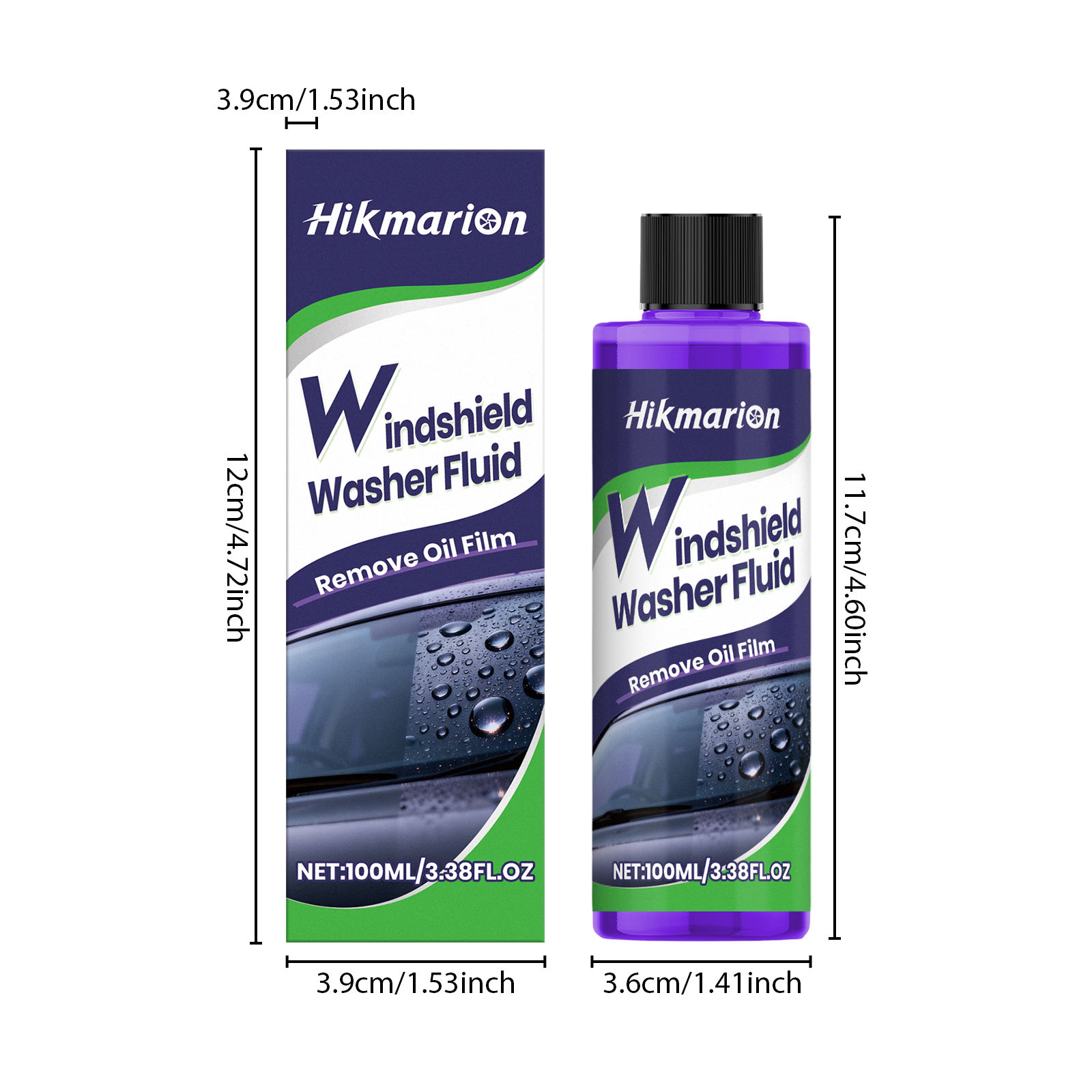 Hikmarion Windshield Washer Fluid, Car Glass Oil Film Stain Refurbishment, Clear Vision Cleaner