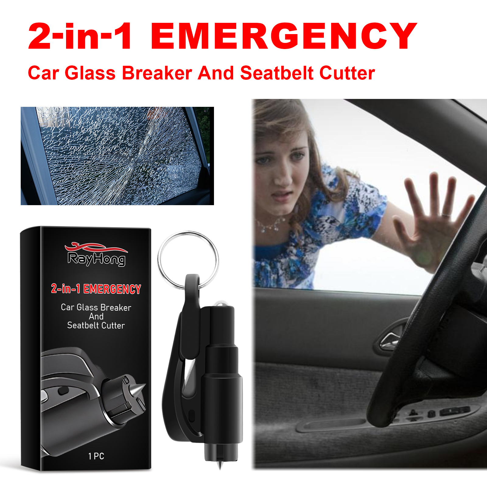 Rayhong 2-In-1 Emergency Car Glass Breaker And Seatbelt Cutter, Multifunctional Portable Glass Breaker Seat Belt Cutter