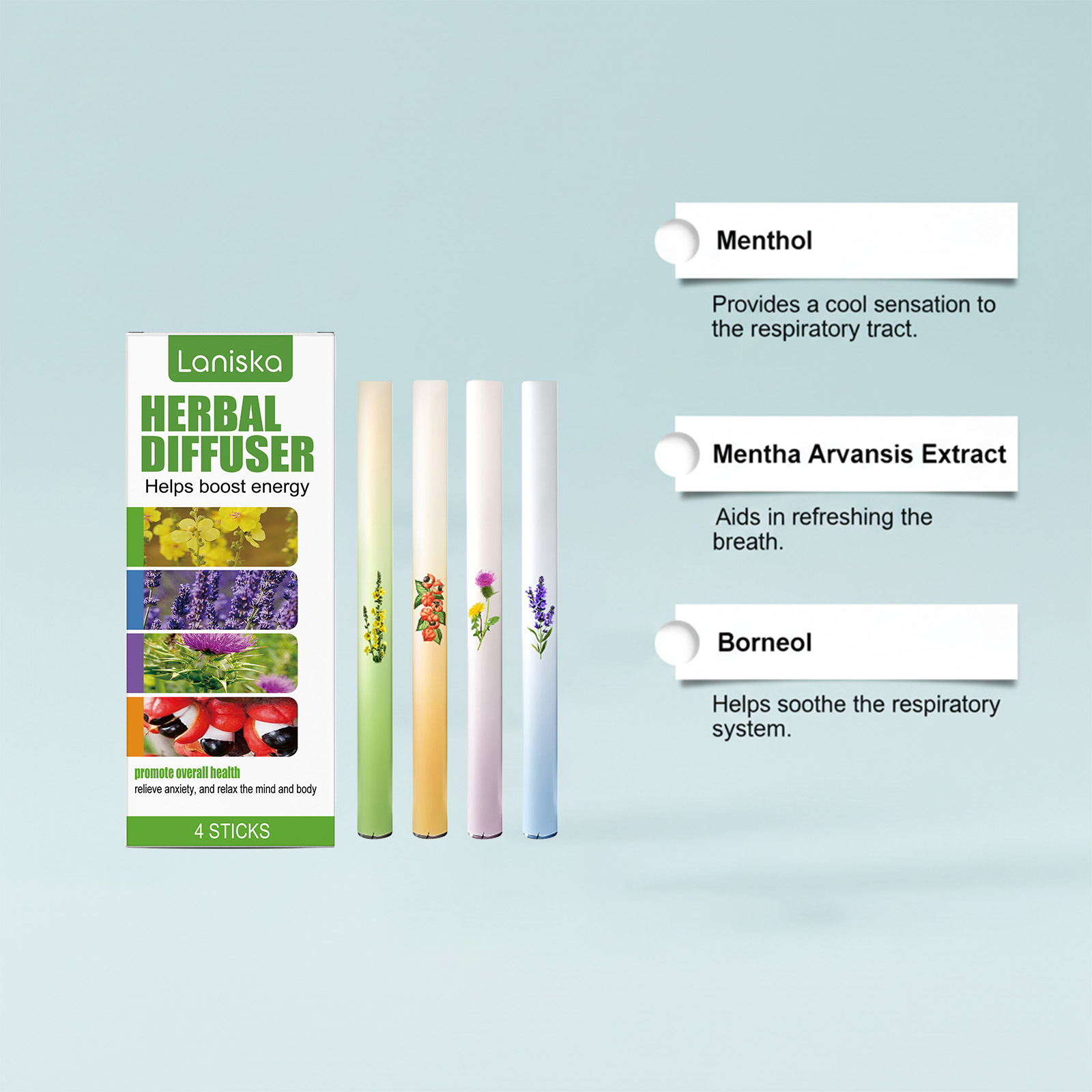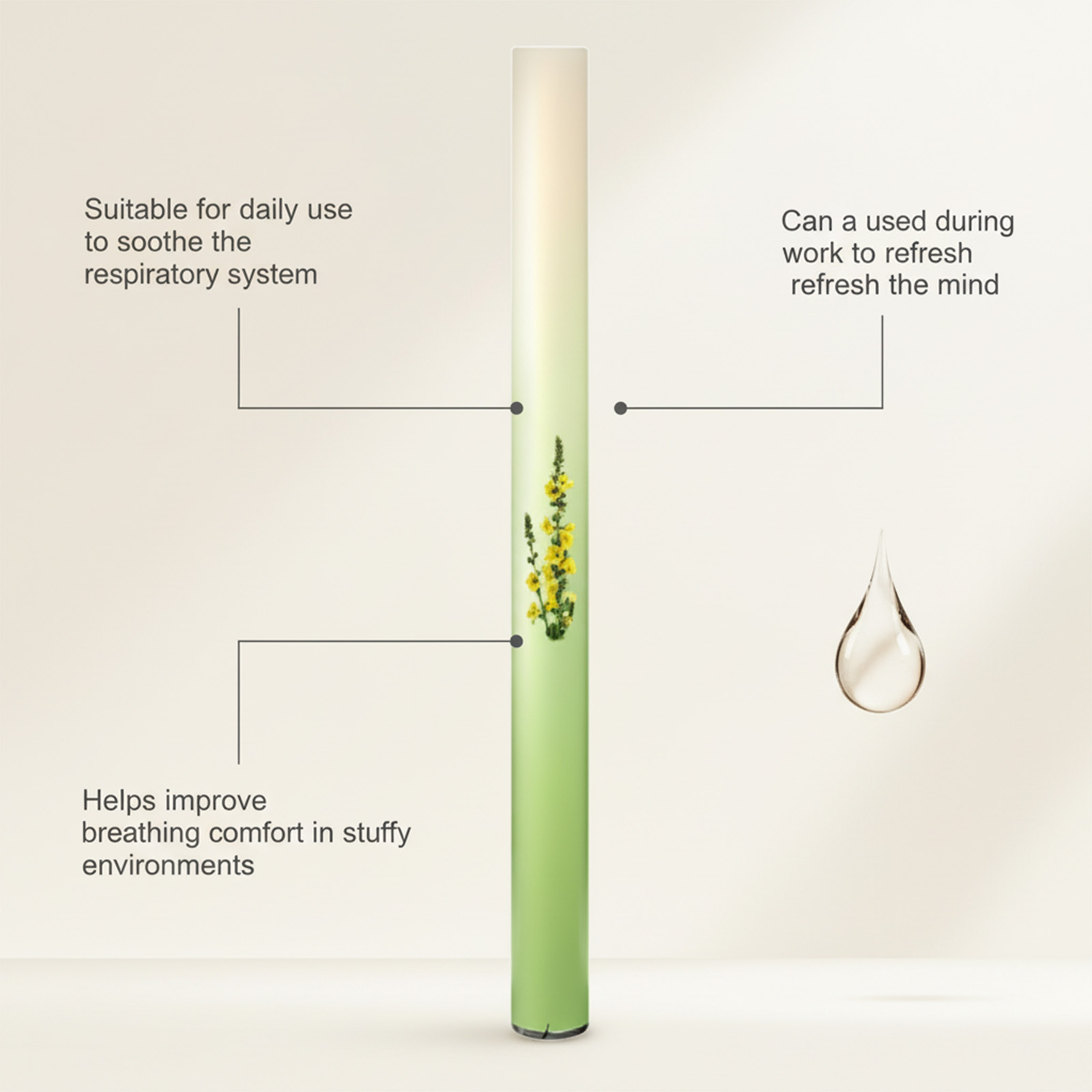 我们的草本护理组合棒,由薄荷醇、冰片精心调配而成。专为有助于随时保持呼吸清新,有助于缓解鼻塞设计。使用方法极为便捷:打开盖子,放入口中轻轻吸气 2-3 秒。并且它可以有助于舒缓呼吸系统。