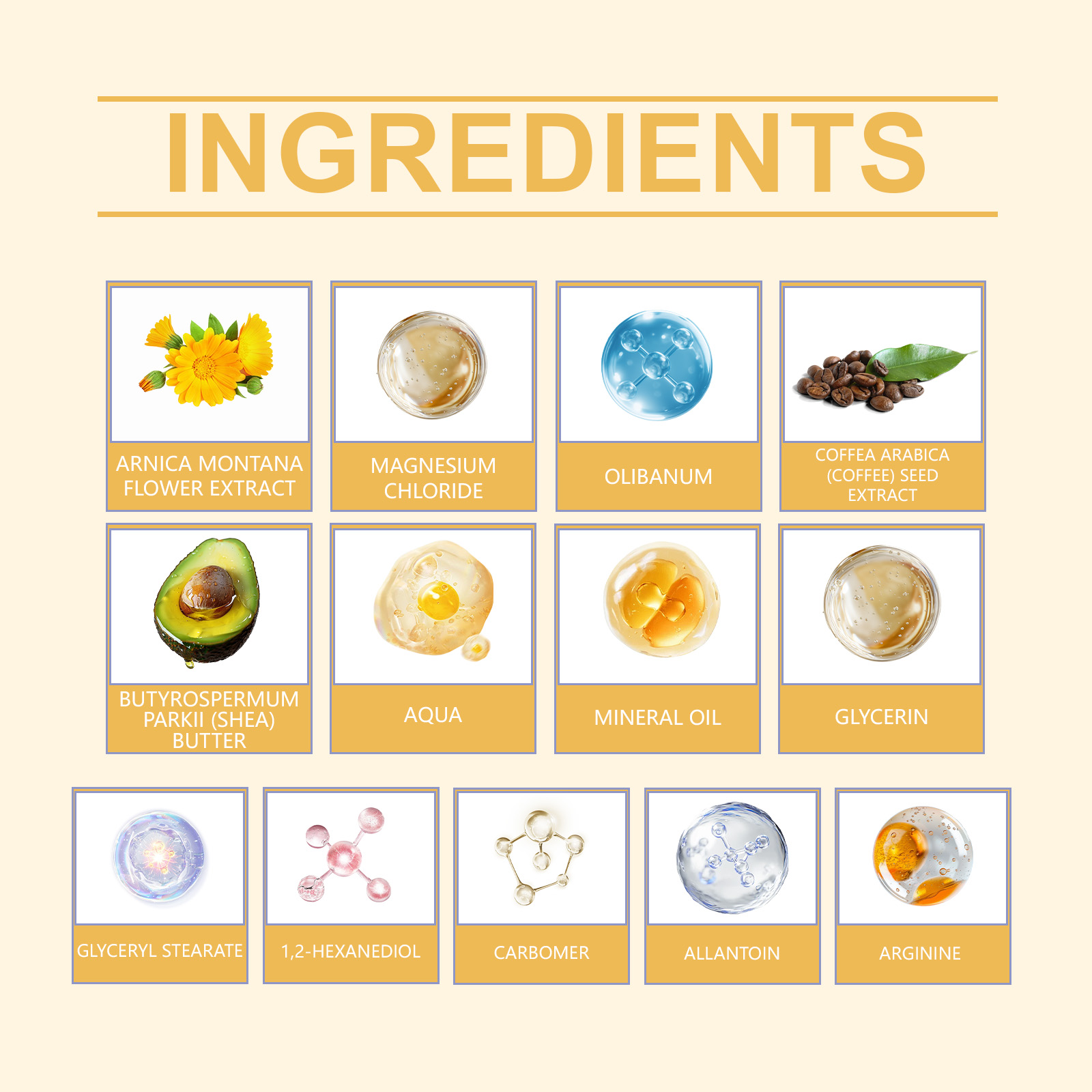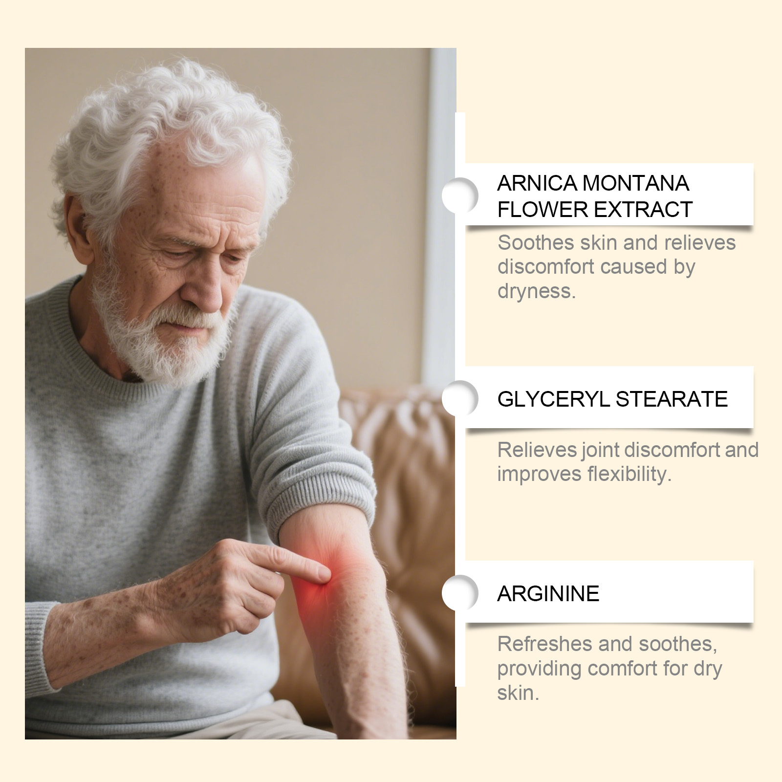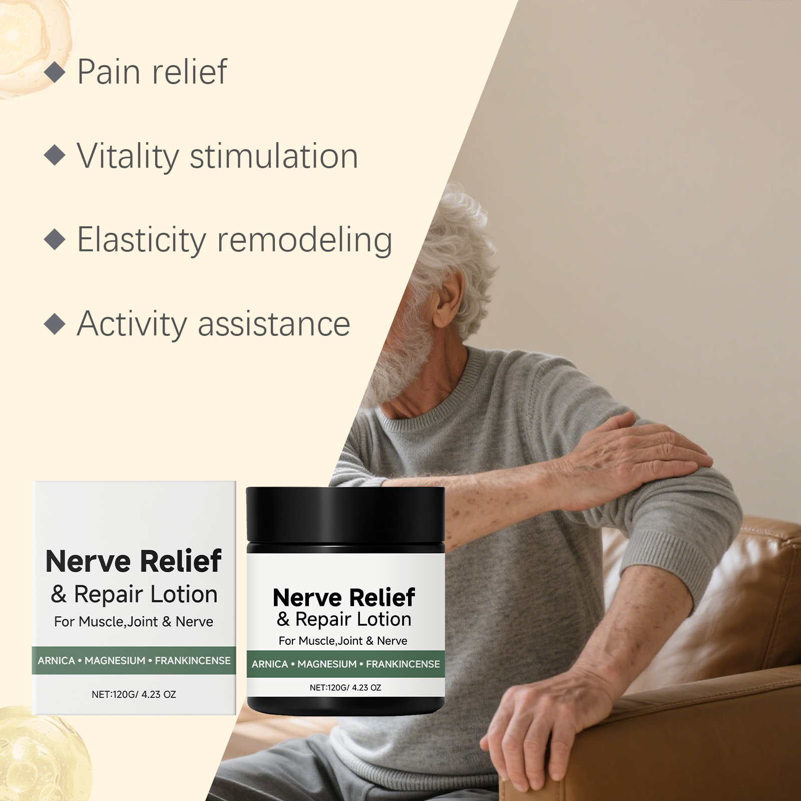 我们的关节护理霜,由小果咖啡籽提取物、牛油果树果脂精心调配而成。专为温和缓解关节不适设计。使用方法极为便捷:1.清洁并擦干关节周围的皮肤。2.将适量本产品均匀涂抹于受影响的关节和肌肉。3.轻柔按摩至完全吸收。并且可以帮助关节恢复灵活性。