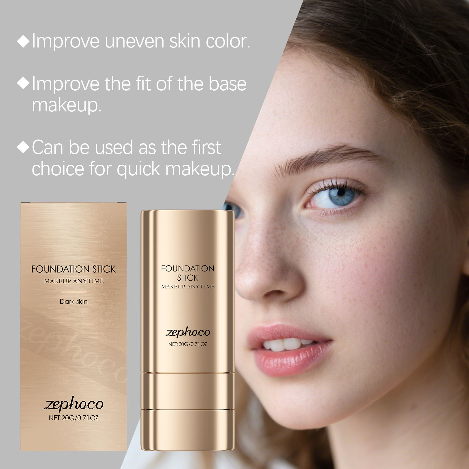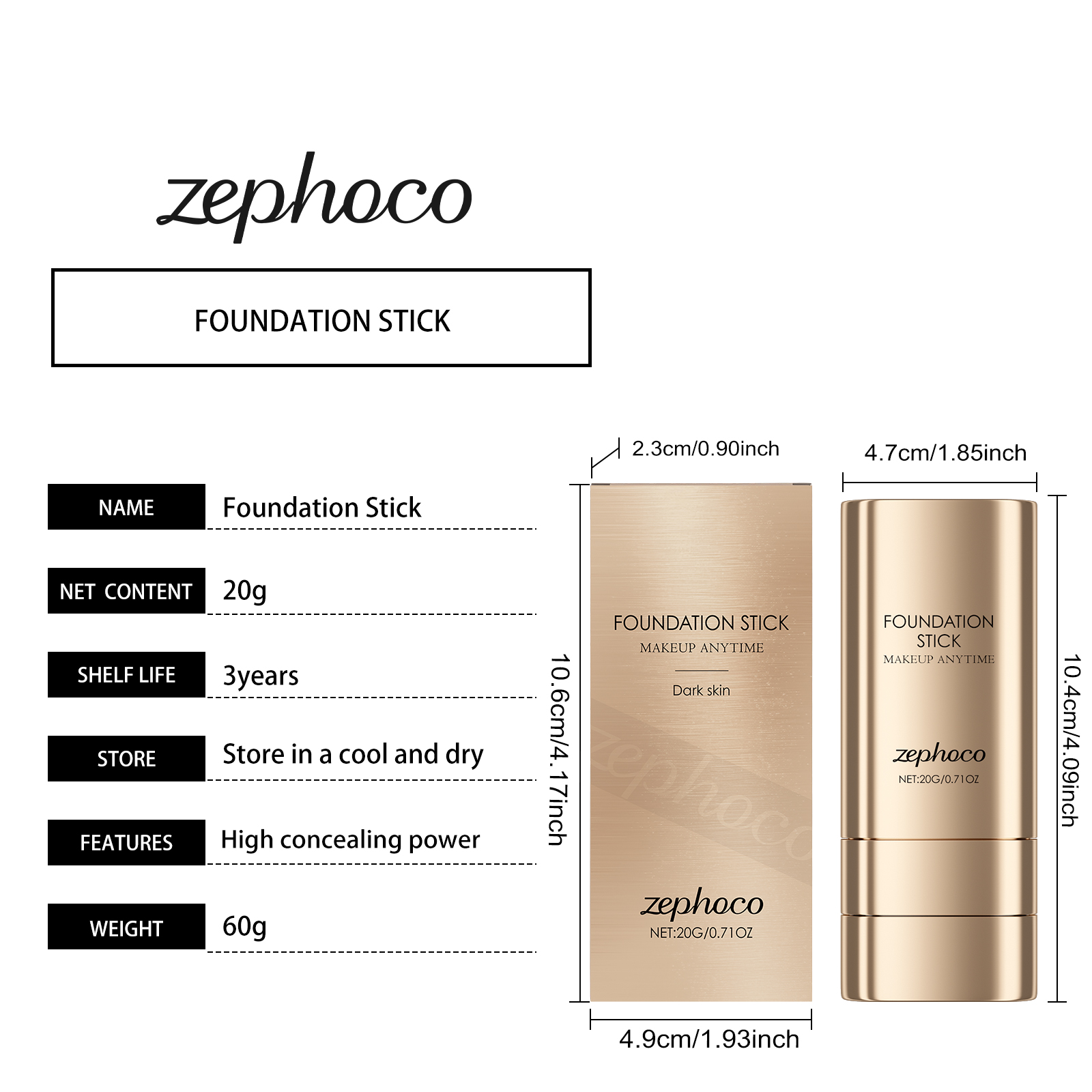 zephoco Dark Skin Two-In-One Foundation Stick Is Light, Smooth, Hydrating, Natural, Concealing, Clear And Matte Foundation