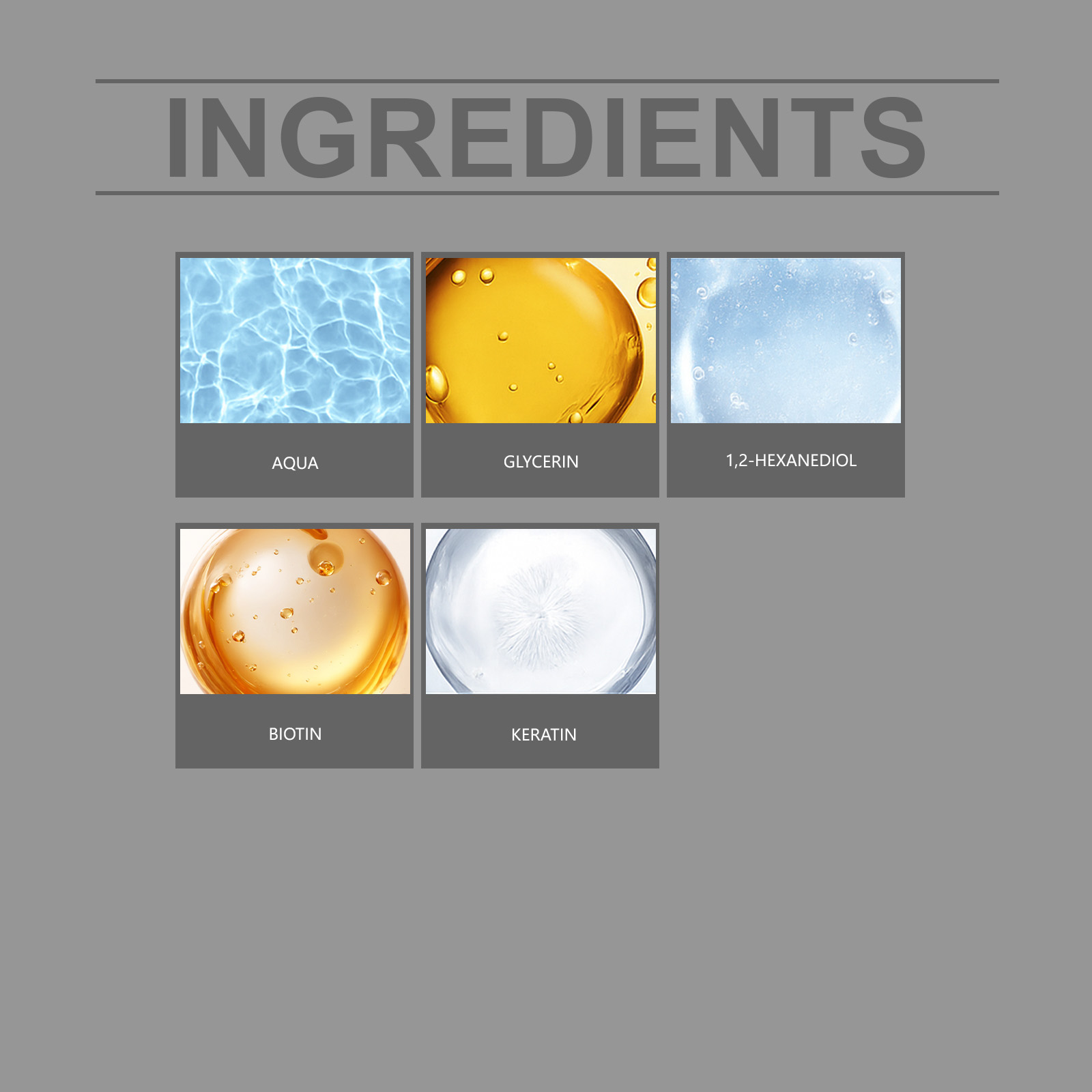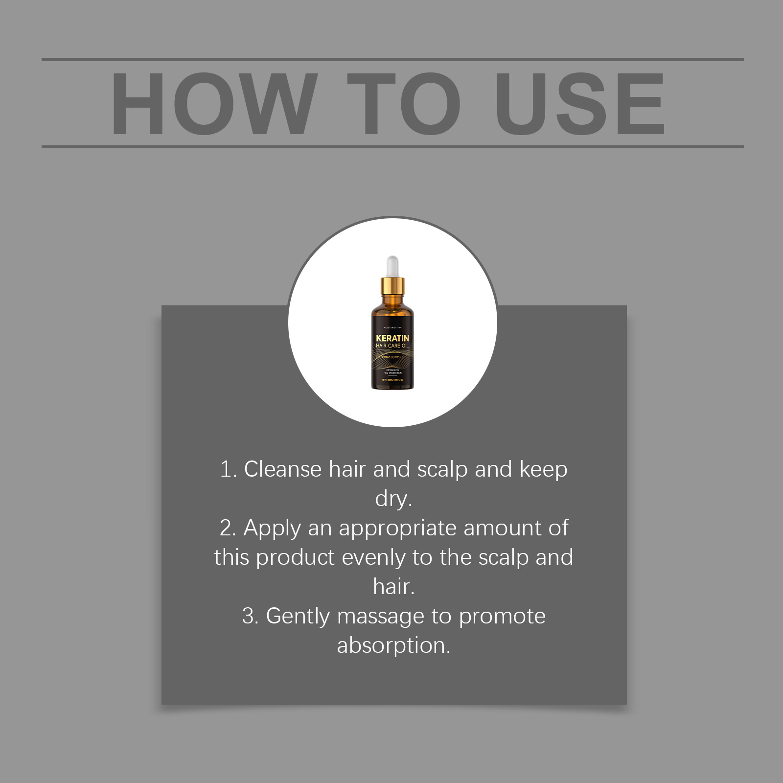 我们的角蛋白护发精油,由生物素、角蛋白精心调配而成。专为发丝补充并锁住水分,改善发丝干燥、枯涩问题设计。使用方法极为便捷:1.清洁头皮和头发,并保持干爽。2.取适量本产品均匀涂抹于头皮和头发上。3.轻轻按摩至产品完全吸收。并且可抚平发丝杂乱飞翘,让发丝更服帖易打理,提升整体发质观感。