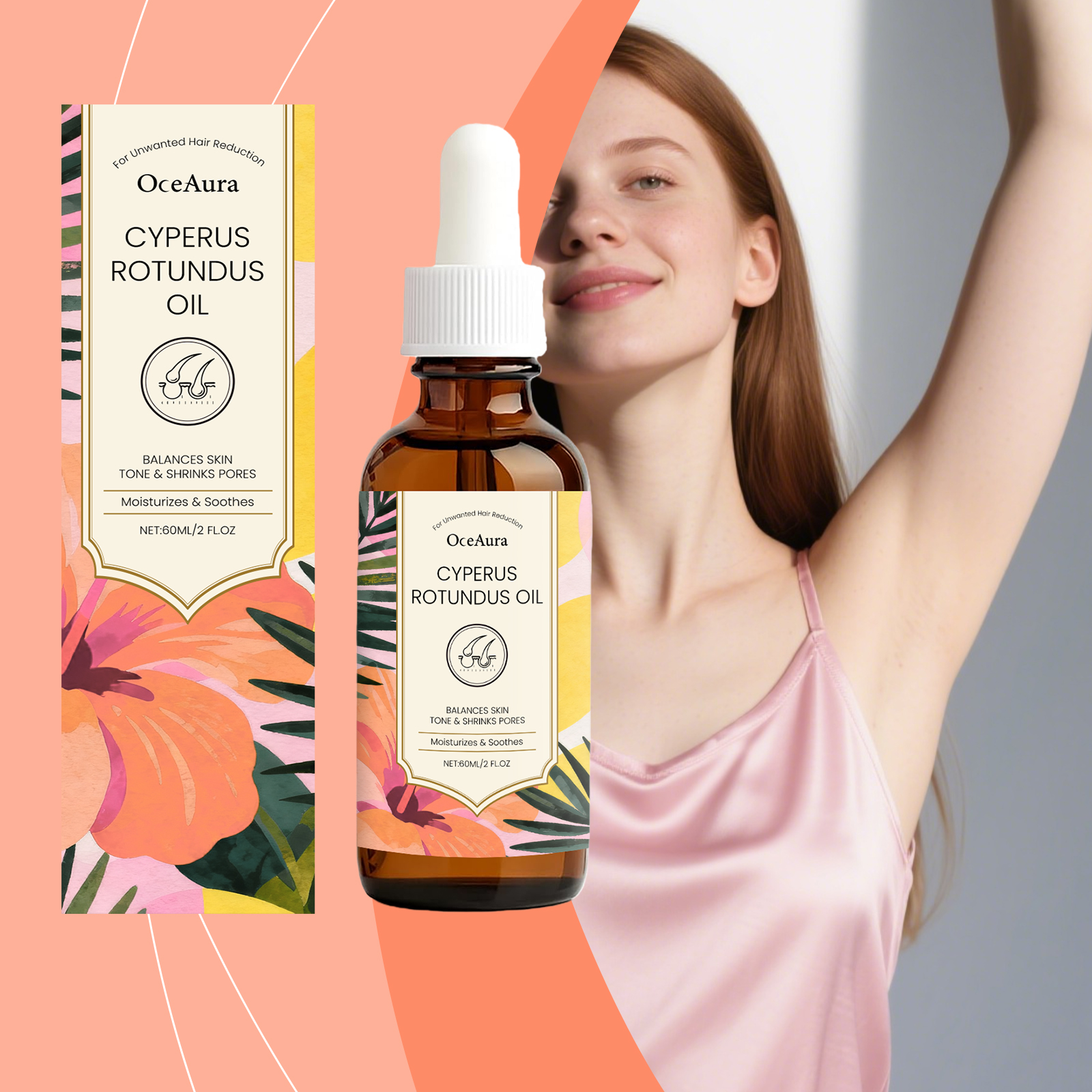 我们的身体护理油,由精氨酸、香附子根提取物精心调配而成。专为减少多余毛发设计。使用方法极为便捷:清洁并擦干脱毛区域的皮肤。脱毛后,将适量本产品均匀涂抹于皮肤上。用指尖以打圈方式轻柔按摩,促进吸收。并且它保湿不油腻。