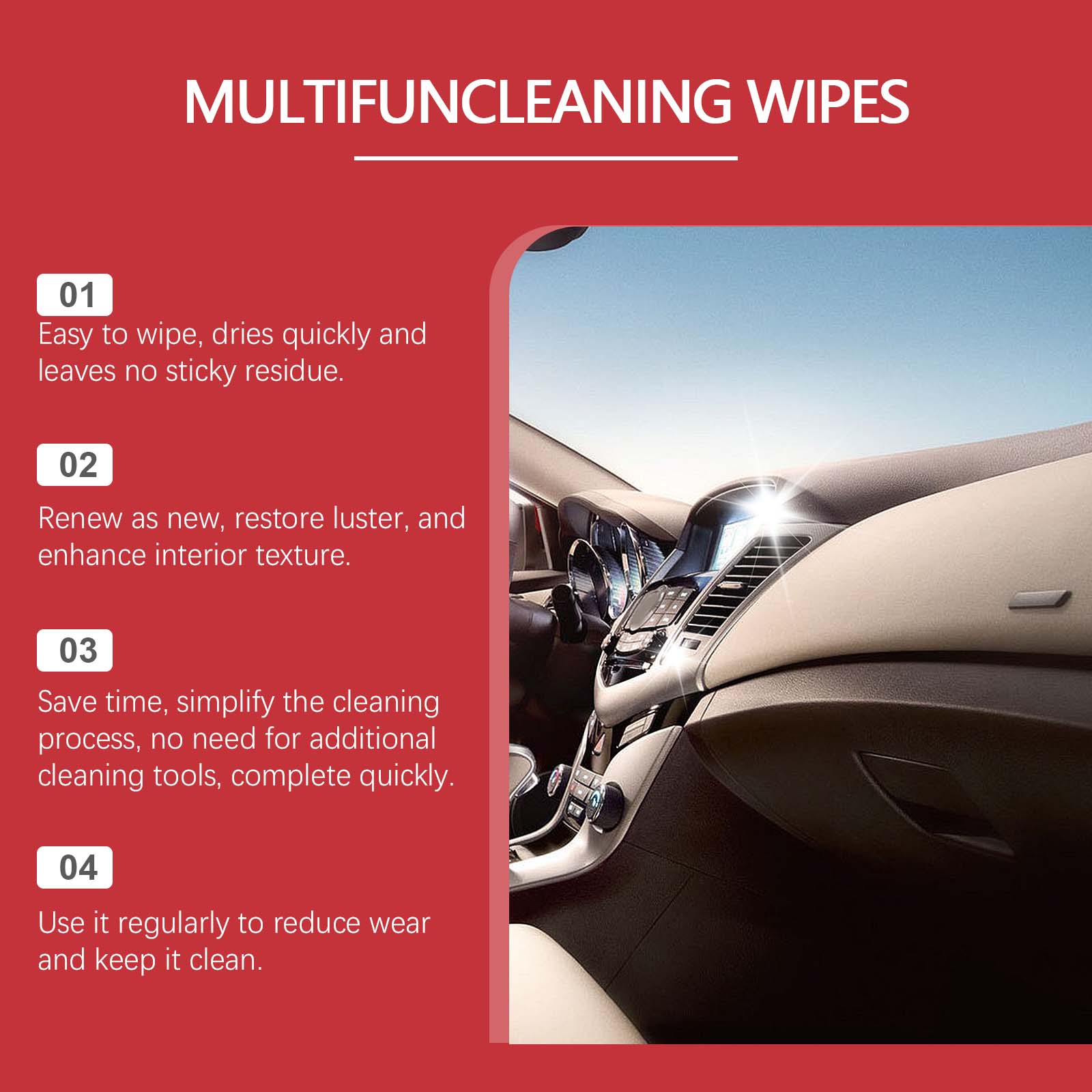 我们的汽车多用途清洁湿巾,由谷氨酸二乙酸四钠 、1,2-己二醇精心调配而成。专为有效去除污渍并深层清洁内部设计。使用方法极为便捷:打开包装,取出产品,并来回擦拭受影响区域,让其恢复清洁。并且它温和不伤材质,适用于各种表面。