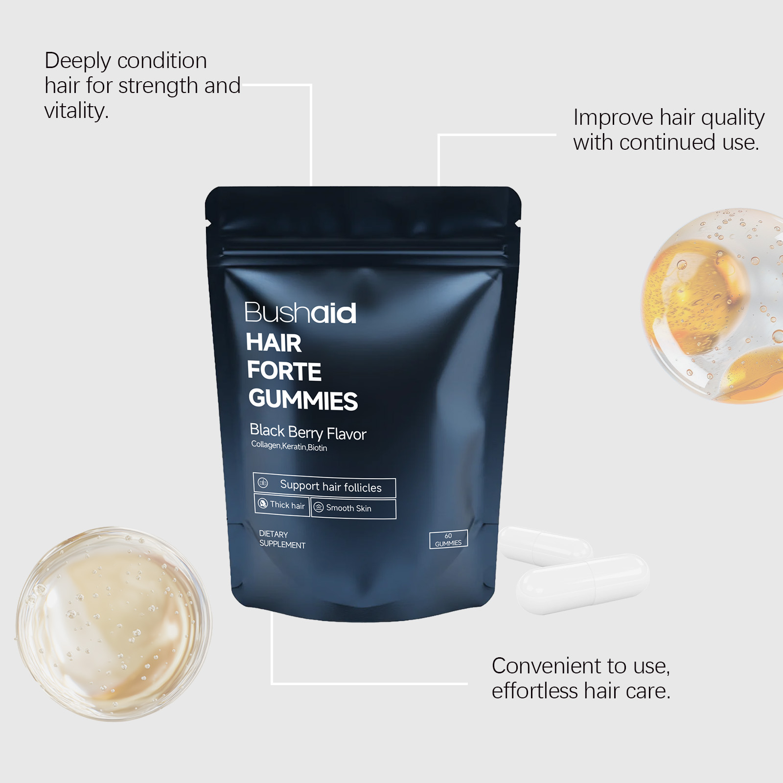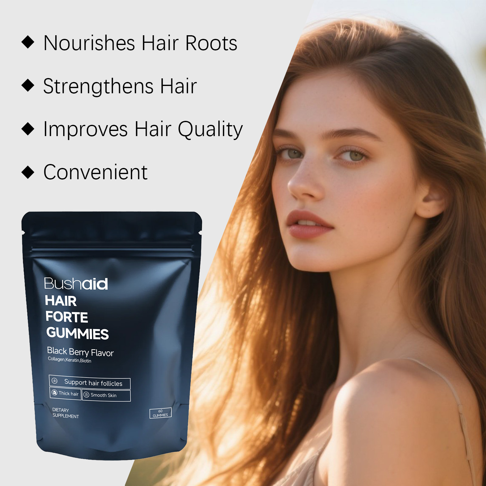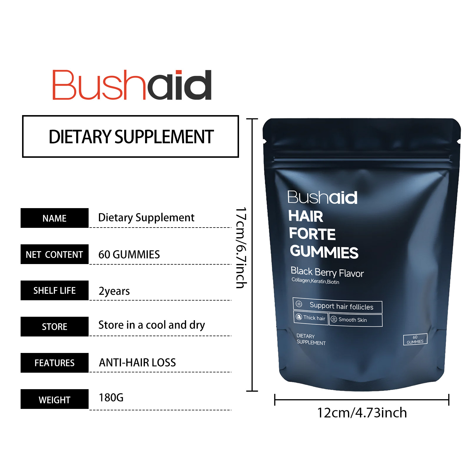BushAid Dietary Supplement Gummy Candies Hair Care