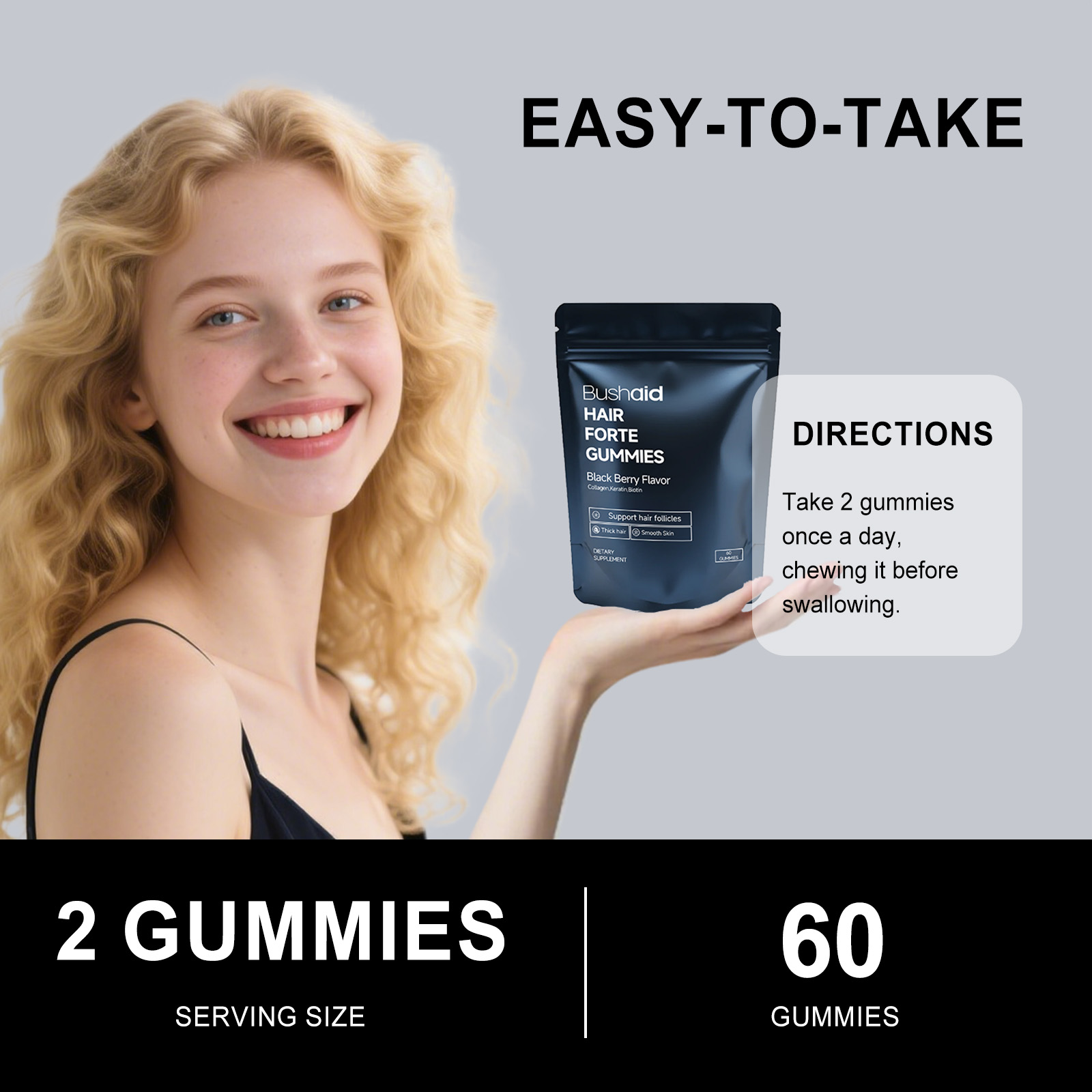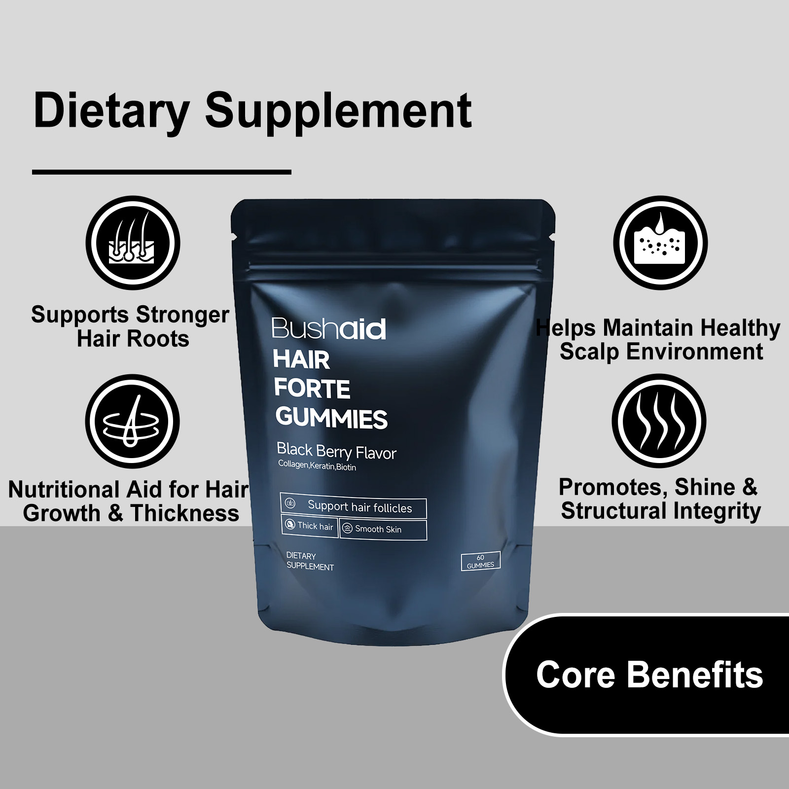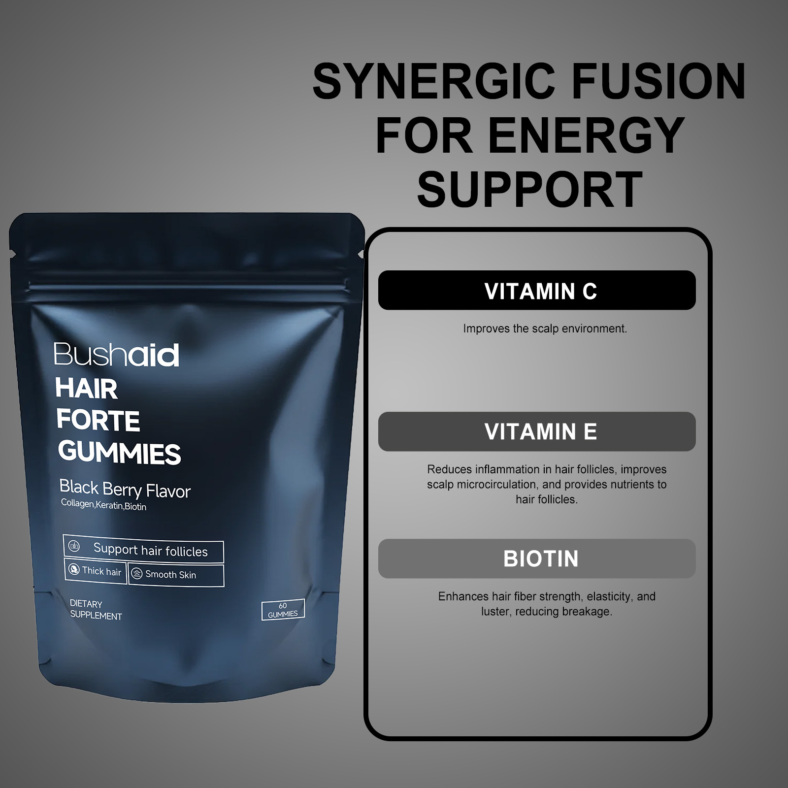 BushAid Dietary Supplement Gummy Candies Hair Care