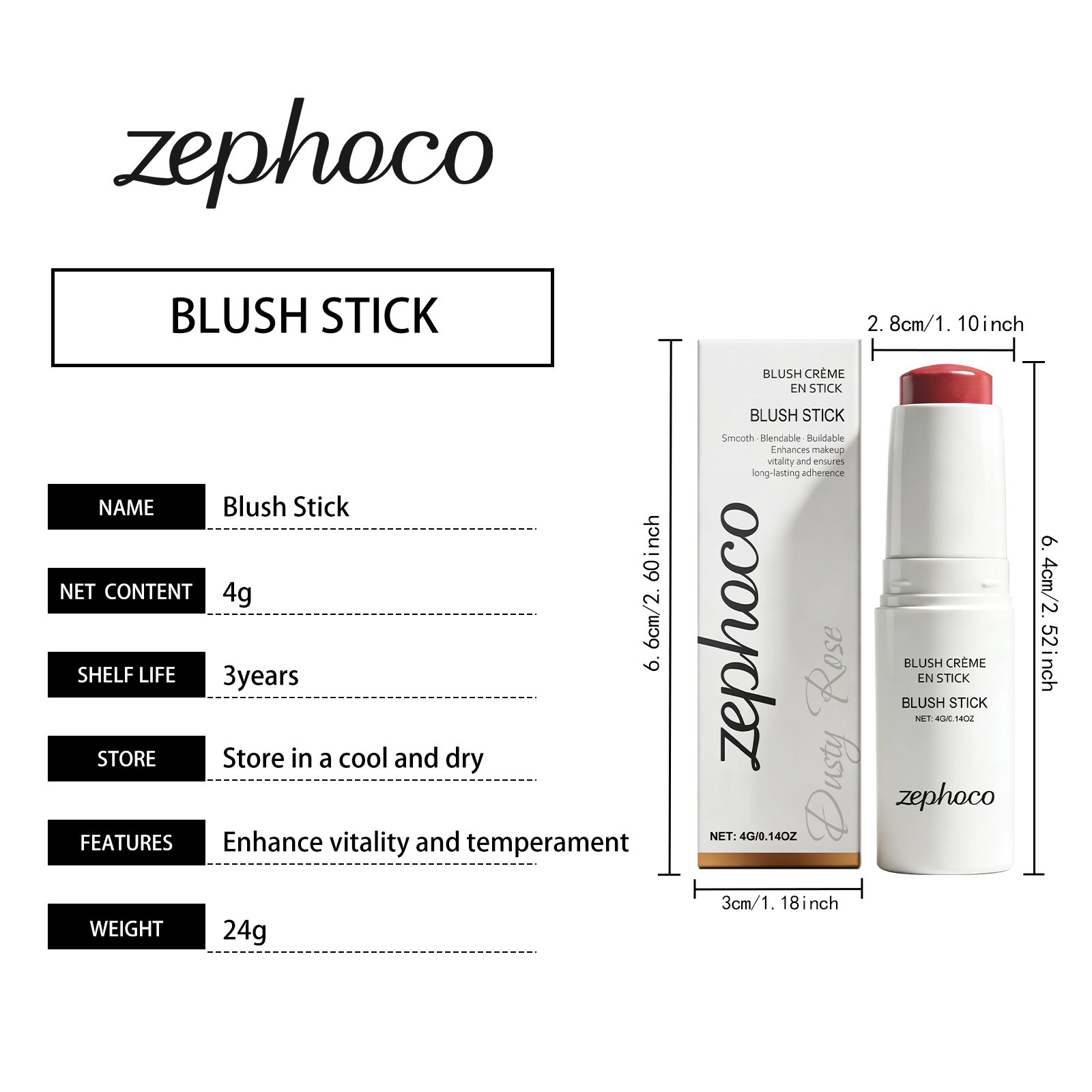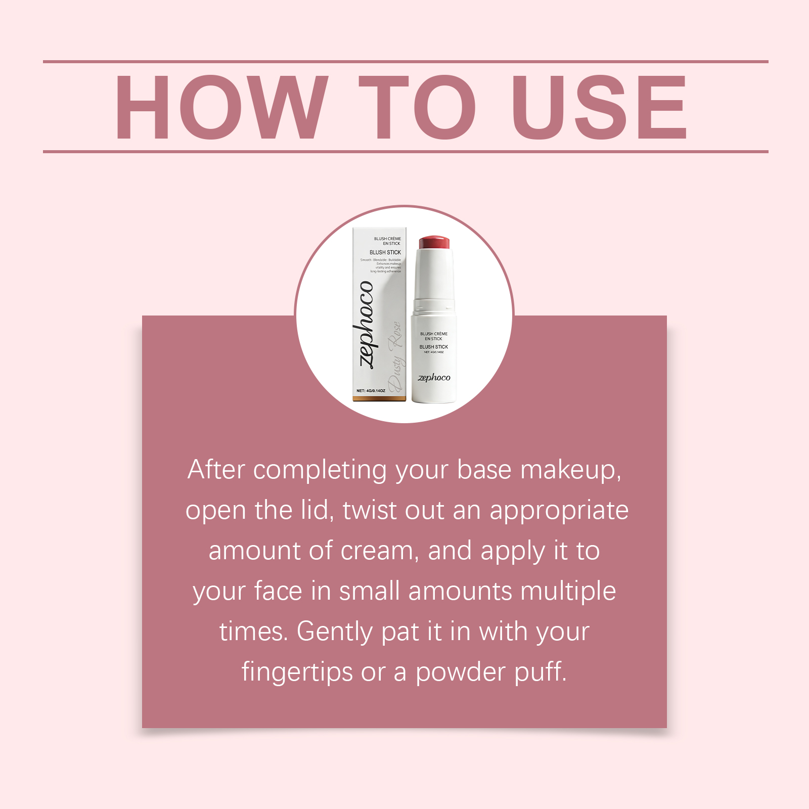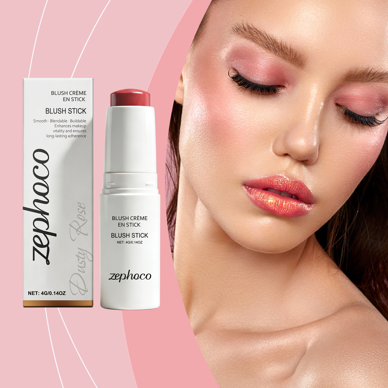 zephoco Soft Mist Long-Lasting Blush Stick (Dushy Rose) Has A Gentle Moisturizing Texture That Is Light And Adheres To The Skin