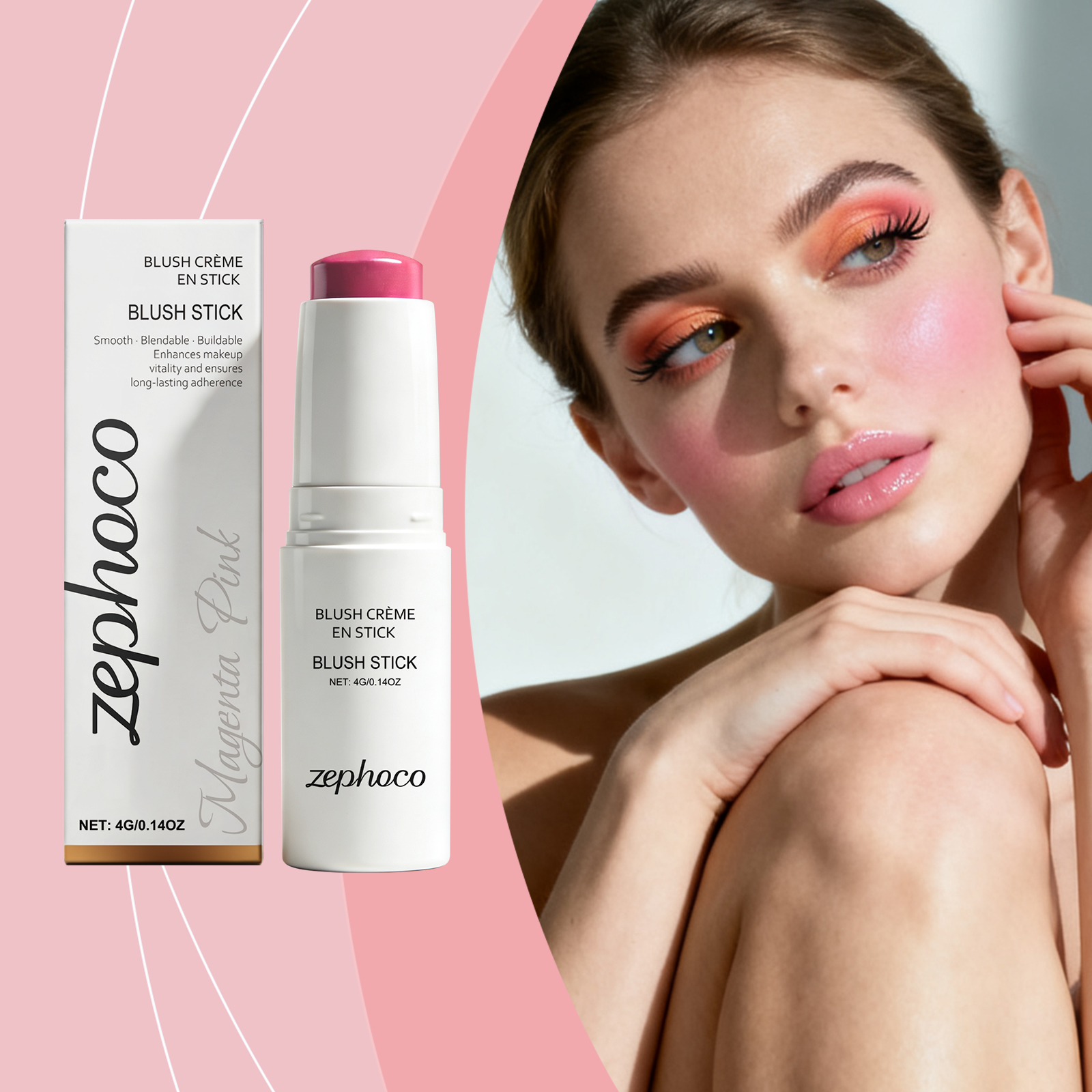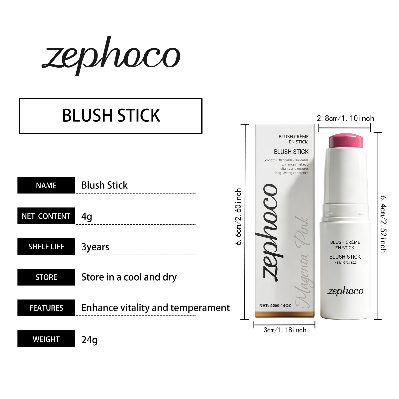 zephoco Magenta Pink Soft Mist Long-Lasting Blush Stick Gentle Moisturizing, Long-Lasting Makeup Effect, Light And Portable