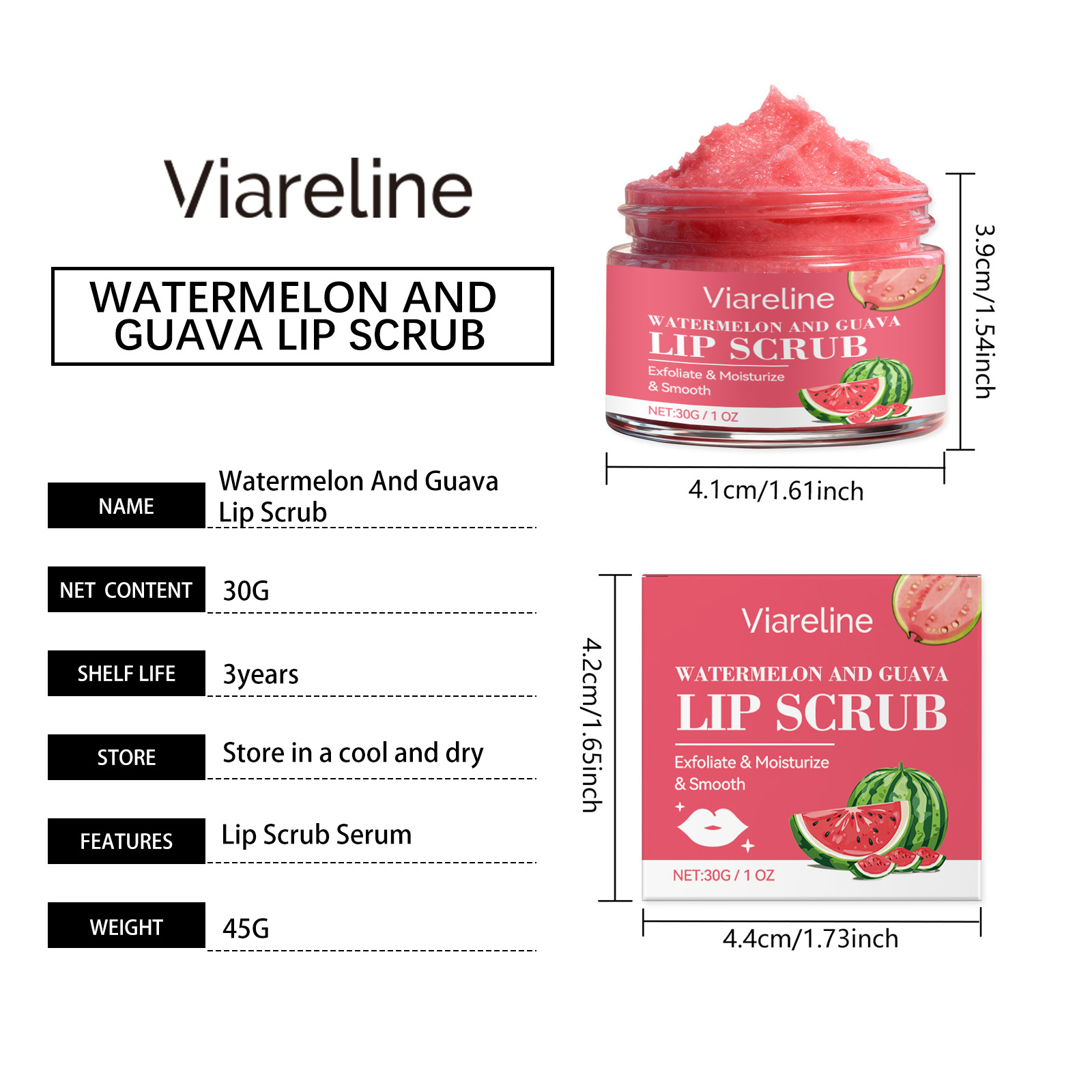 Viareline Watermelon Guava Lip Scrubbing Cream Gently Exfoliates And Makes The Lips Smooth And Tender